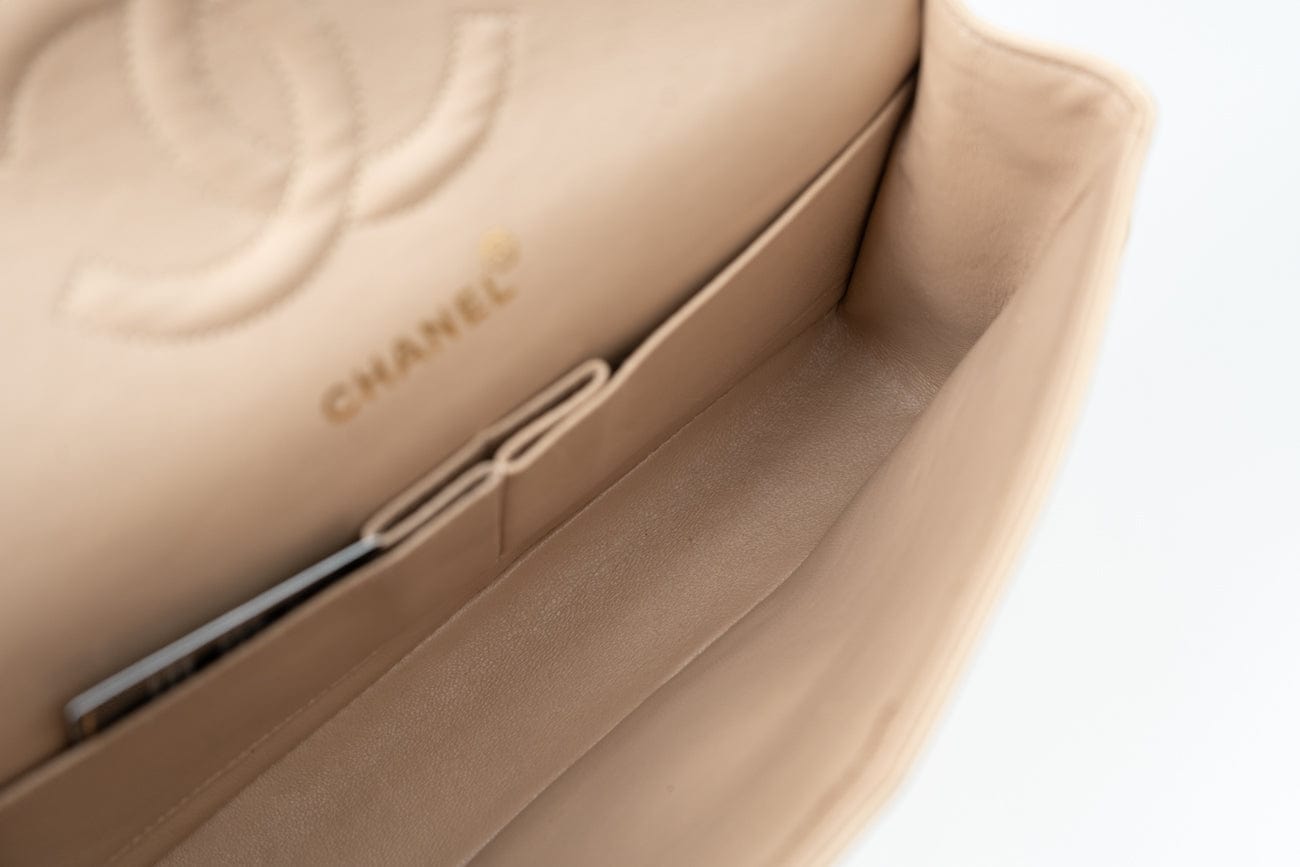 Vintage Beige Lambskin Chevron Classic Flap Medium GHW