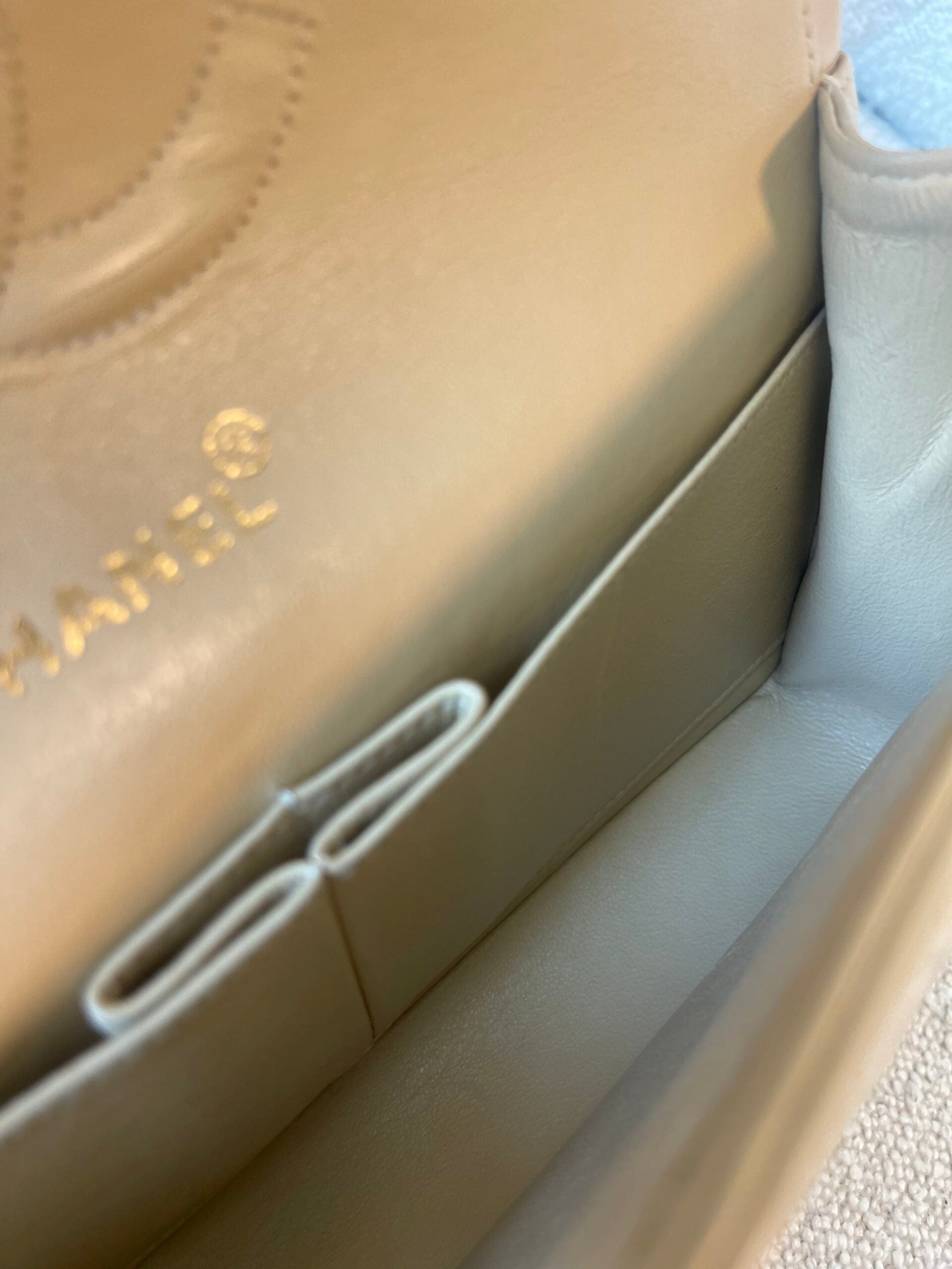 Vintage Beige Lambskin Quilted Classic Flap Medium Gold Hardware