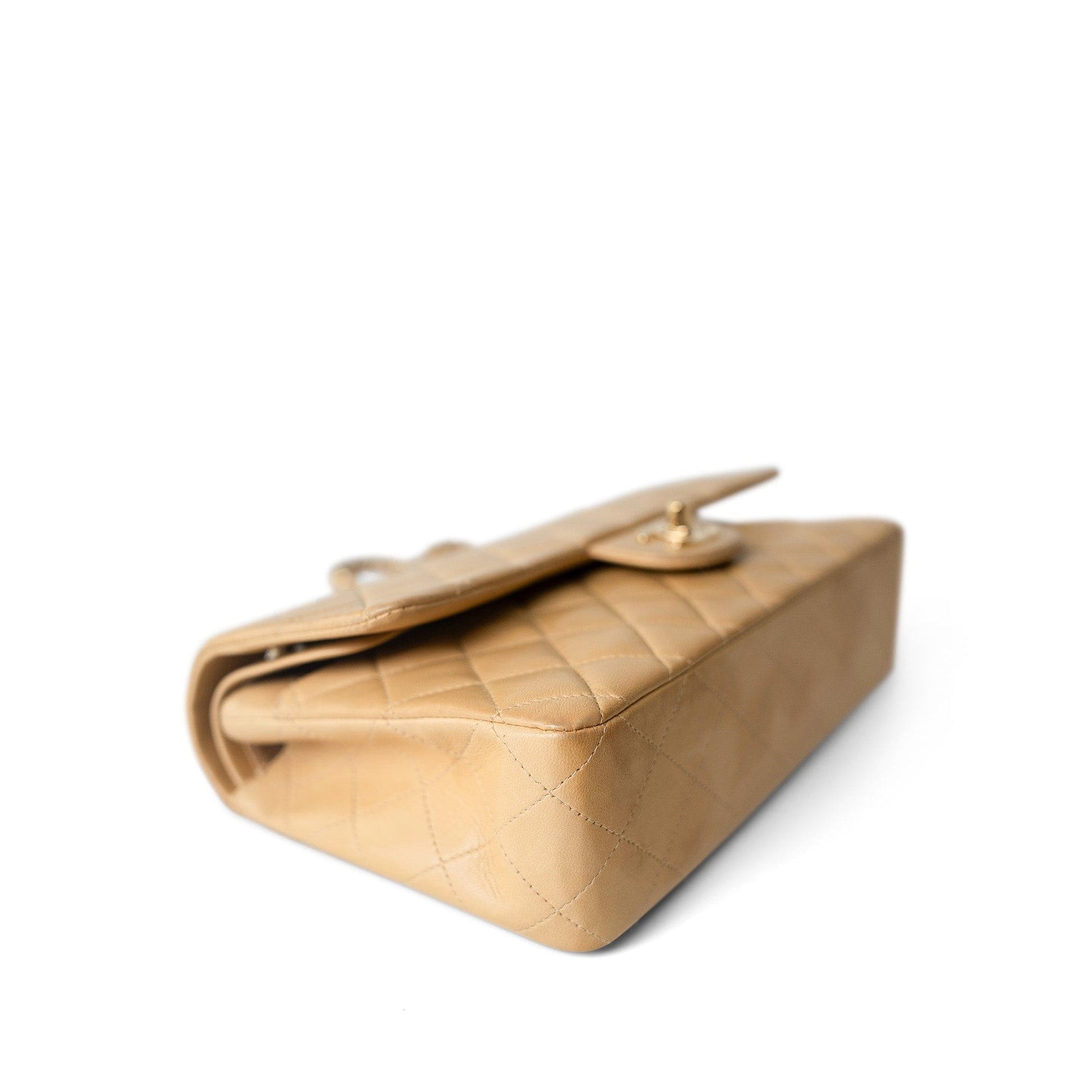 Vintage Beige Lambskin Quilted Classic flap Medium Gold Hardware