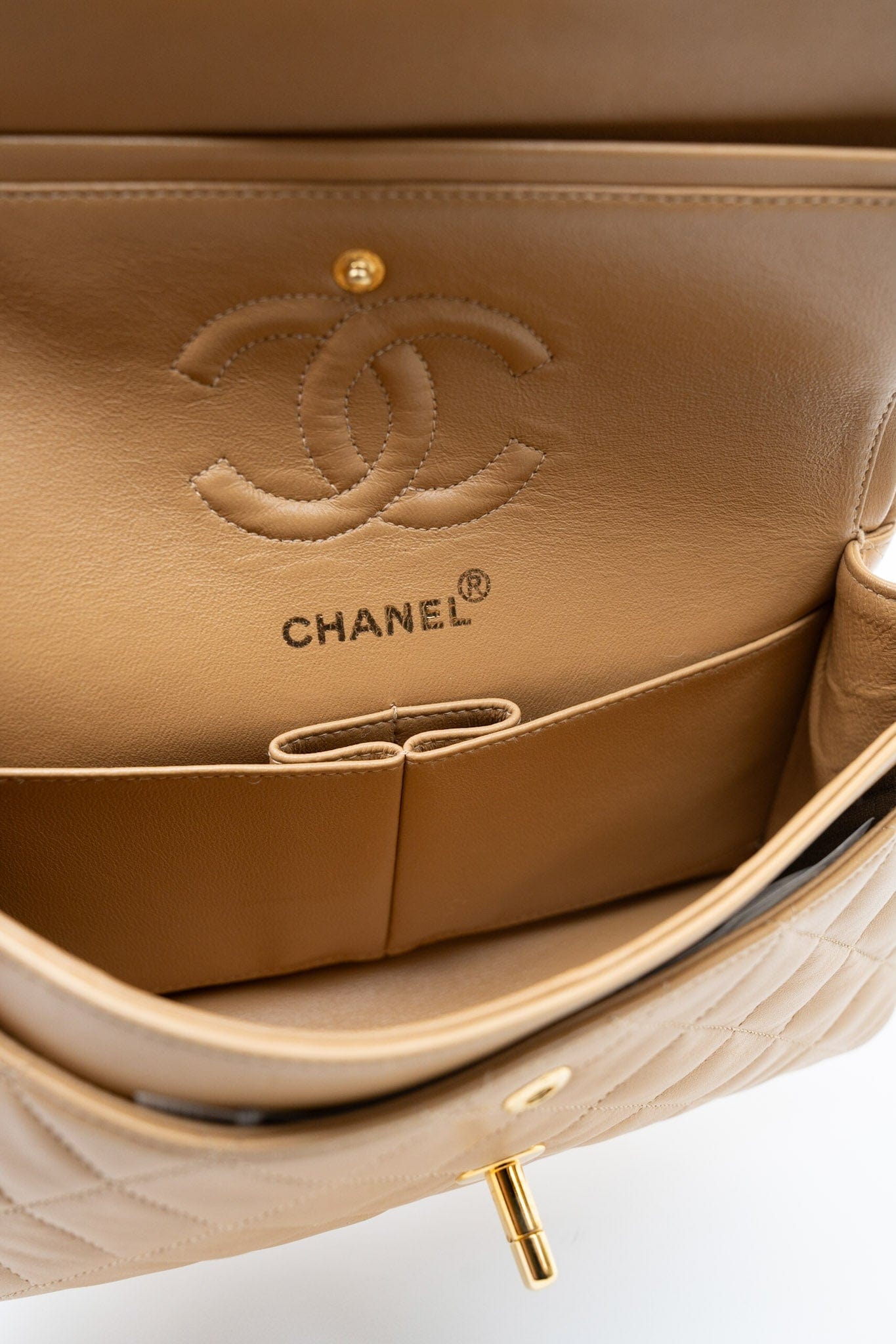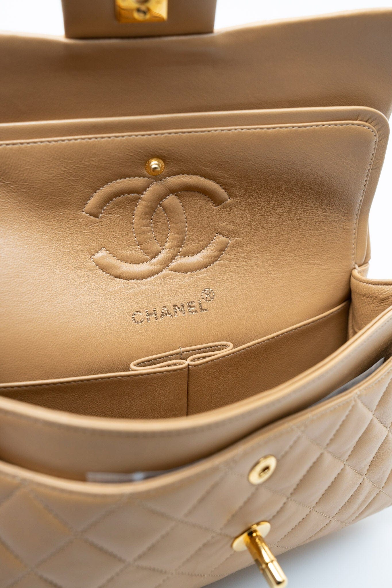 Vintage Dark Beige Lambskin Quilted Classic Flap Small Gold Hardware