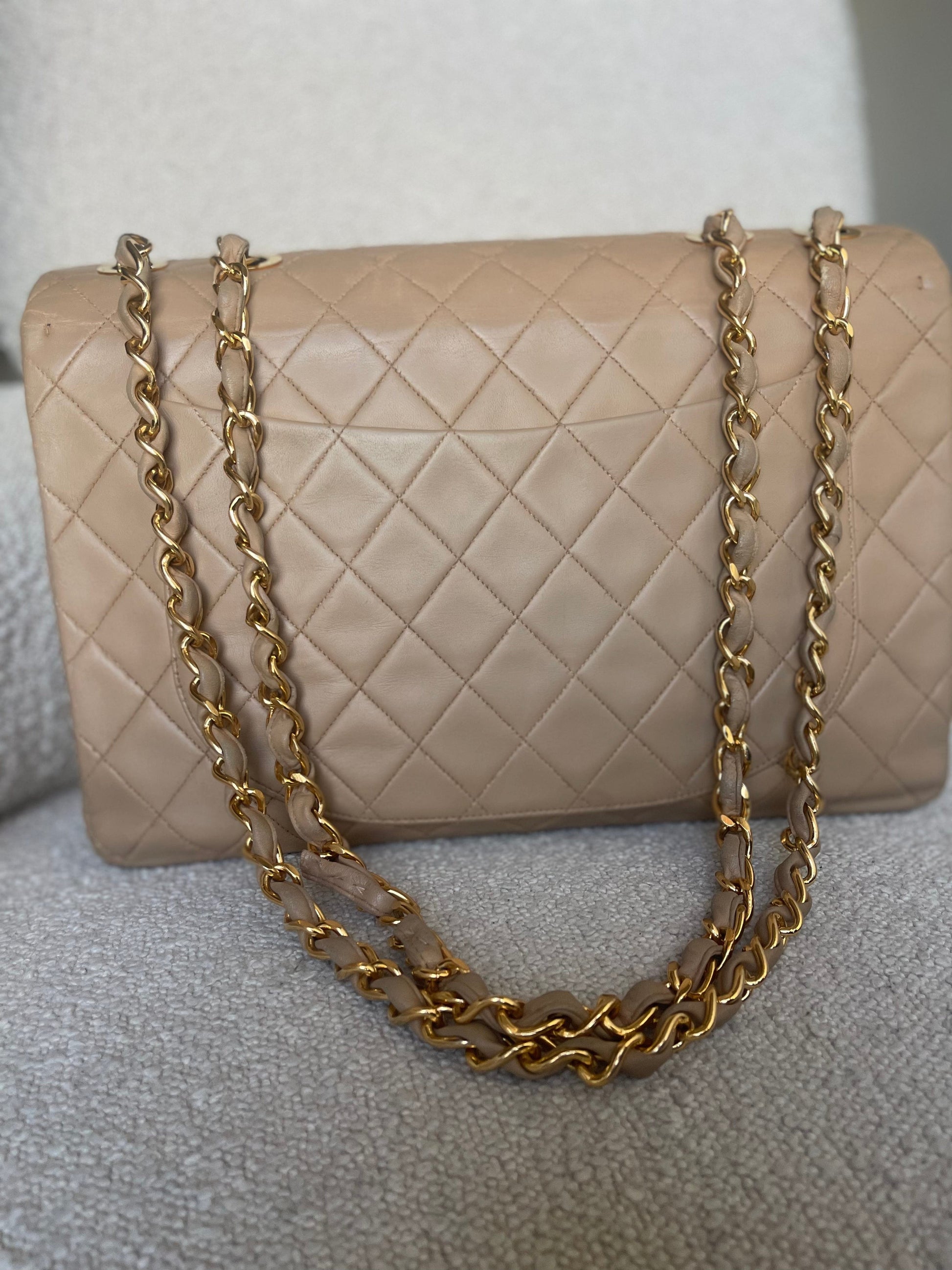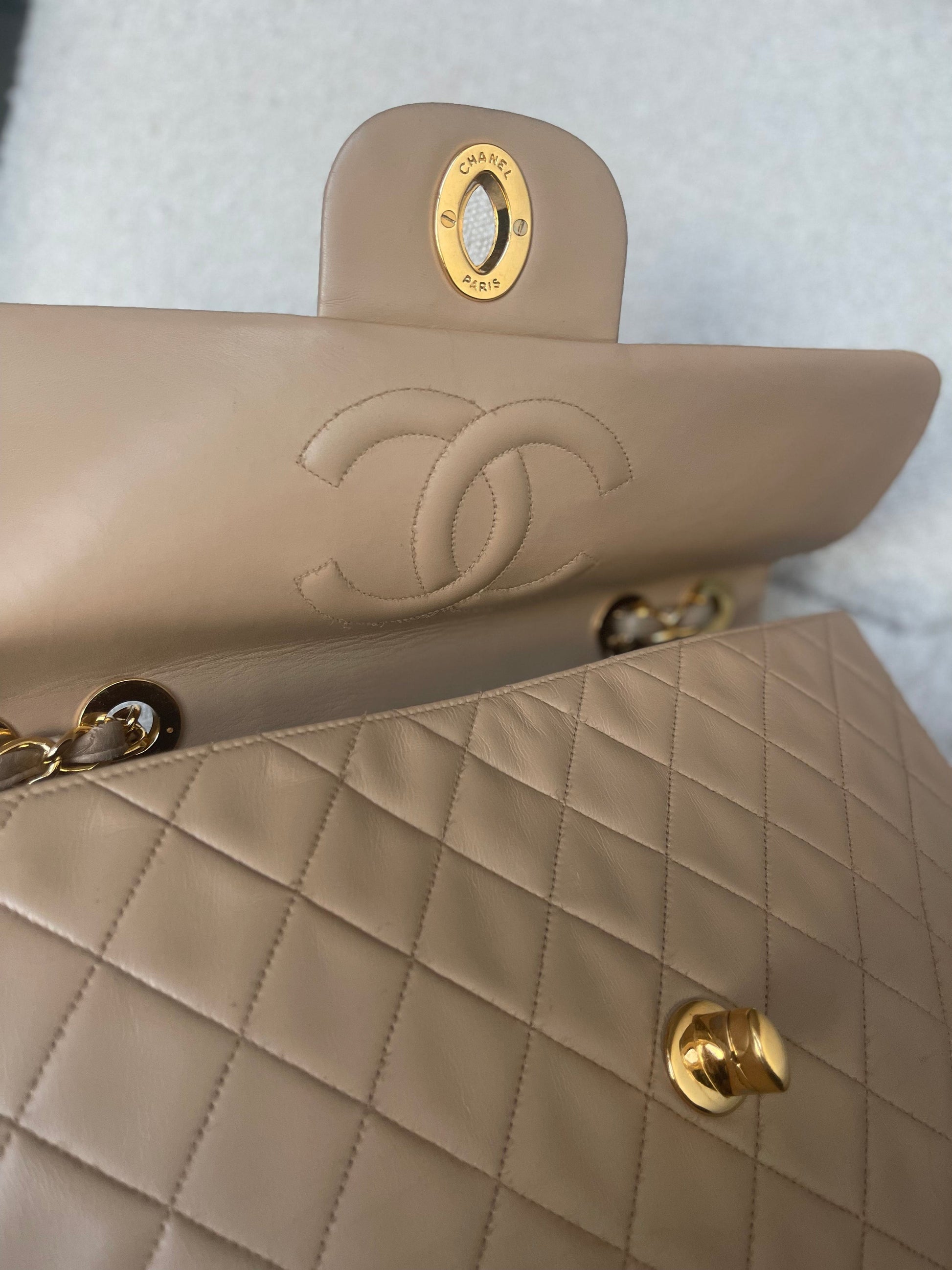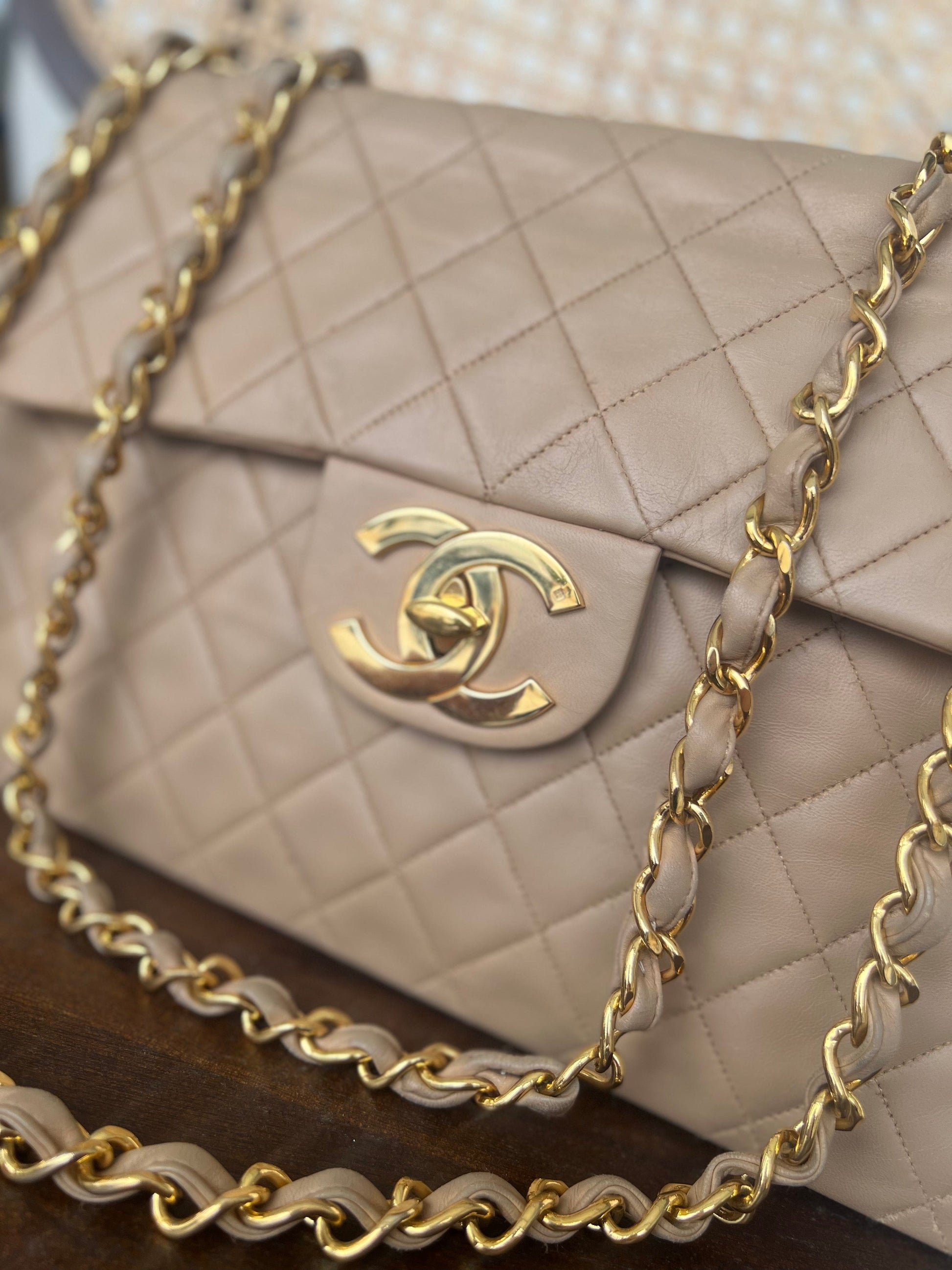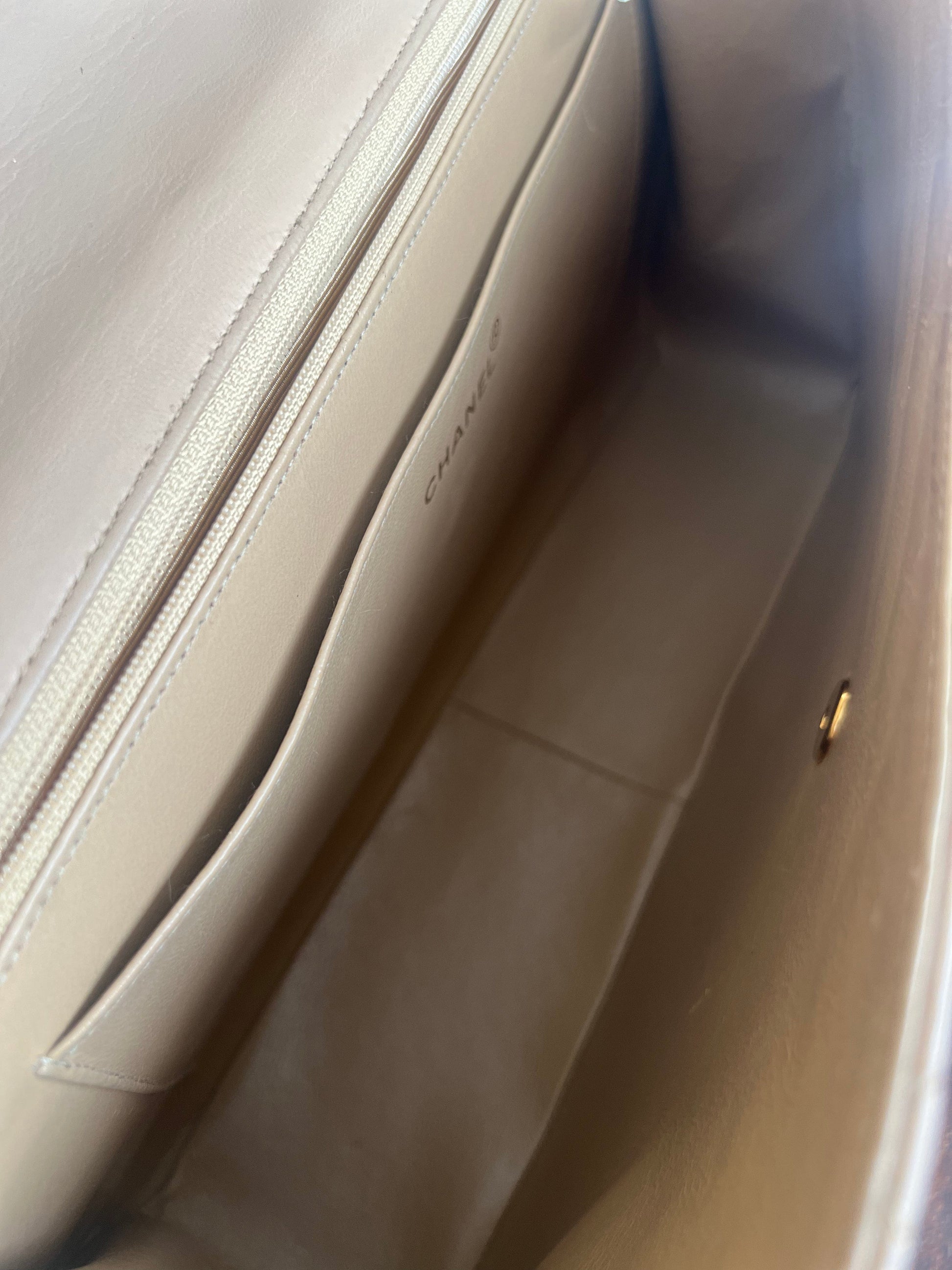 Vintage Beige Lambskin Quilted Jumbo XL Single Flap GHW