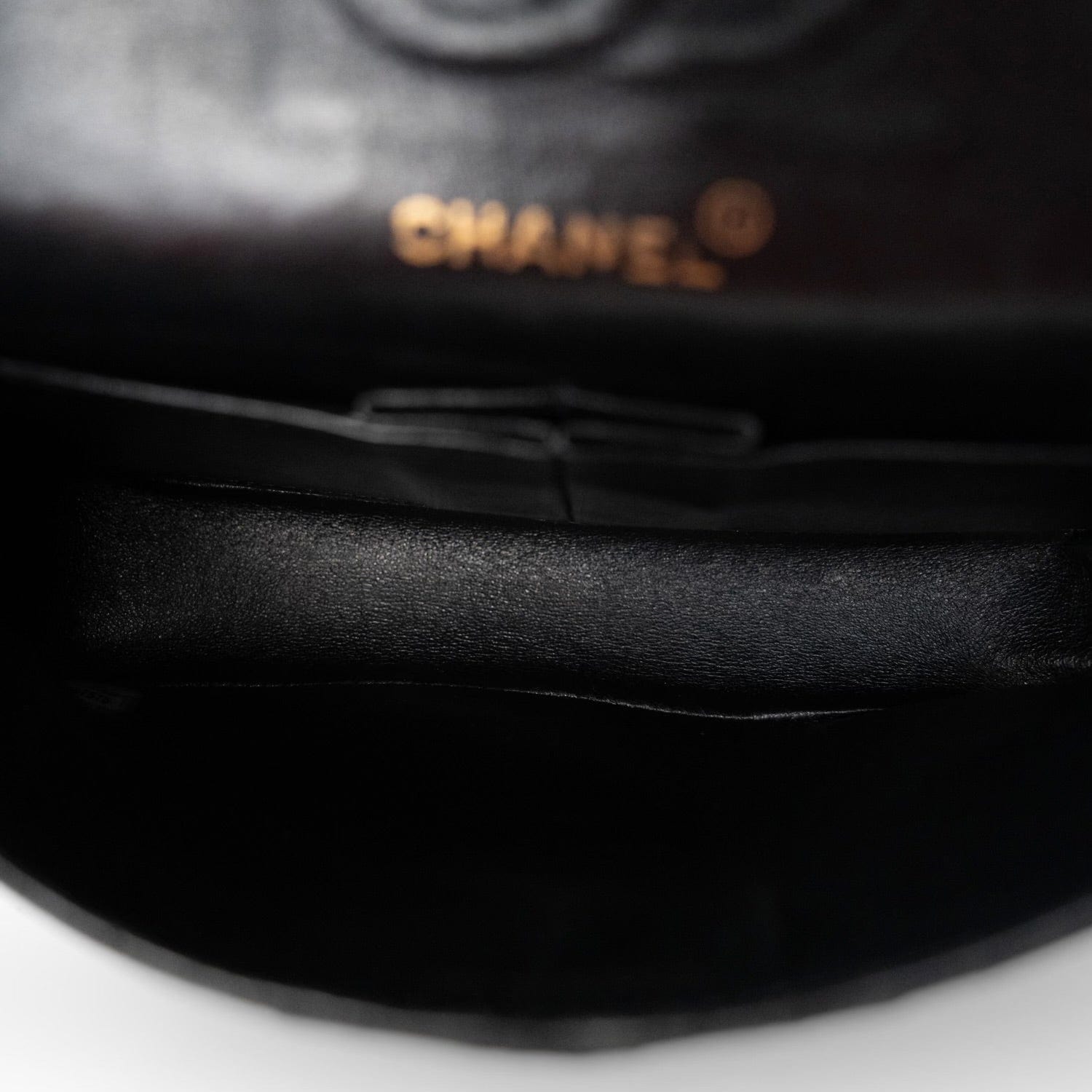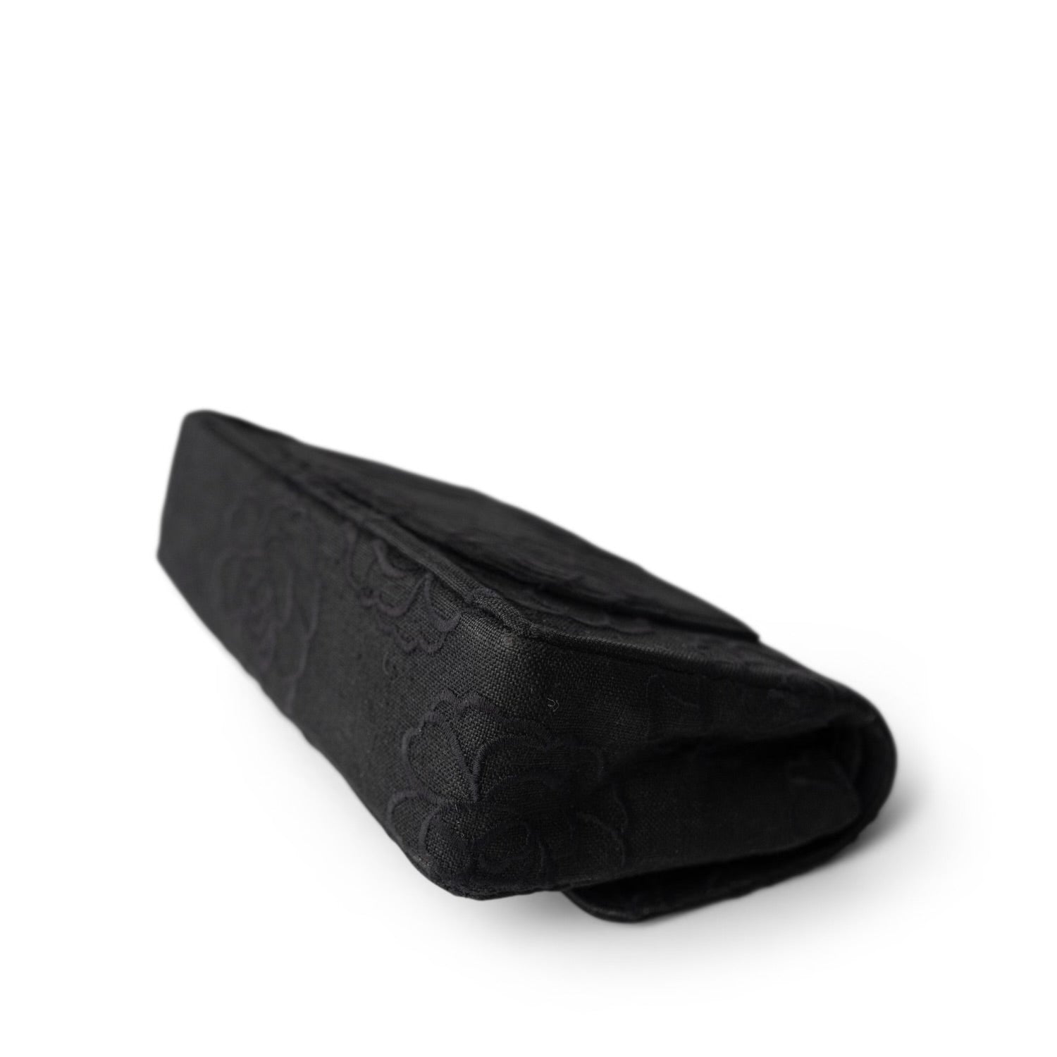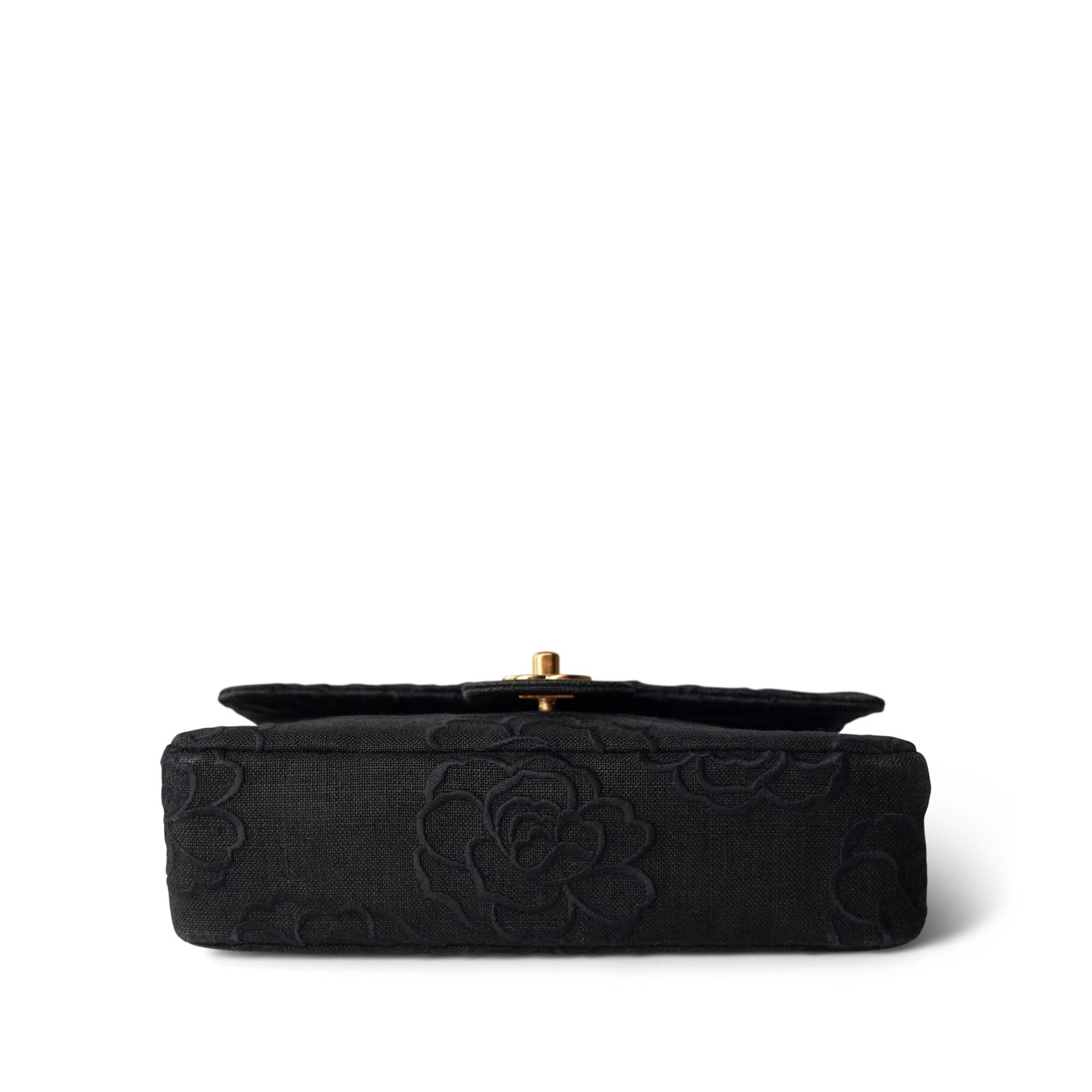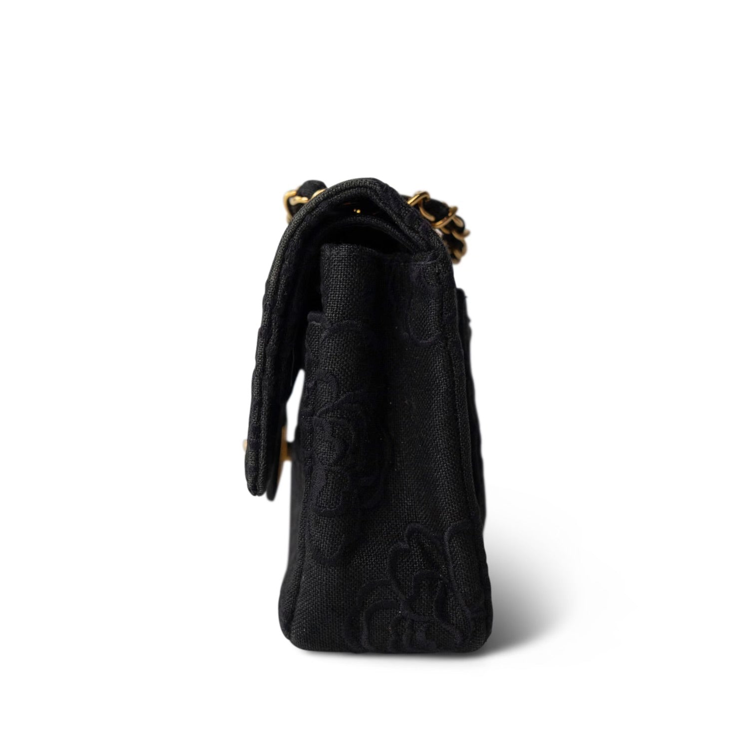 (SOLD!!!) Vintage Black Canvas Camellia Classic Small Double Flap Gold Hardware