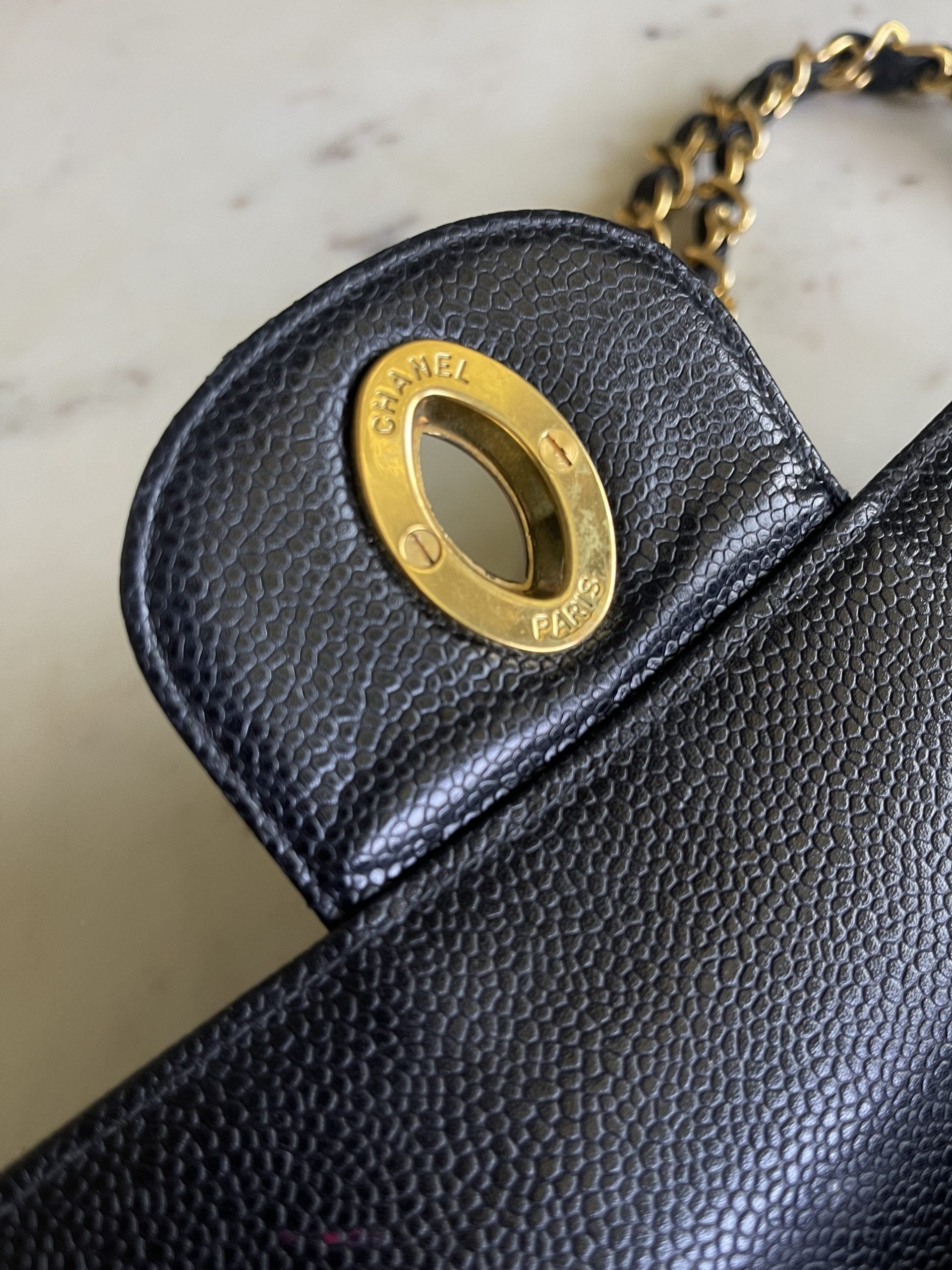 Condition Details: Some mild scratching on turn lock. Some light creasing underneath the flap. Some wear and scratches on hardware. Some wear on the corners. Tear in the interior pocket lining.