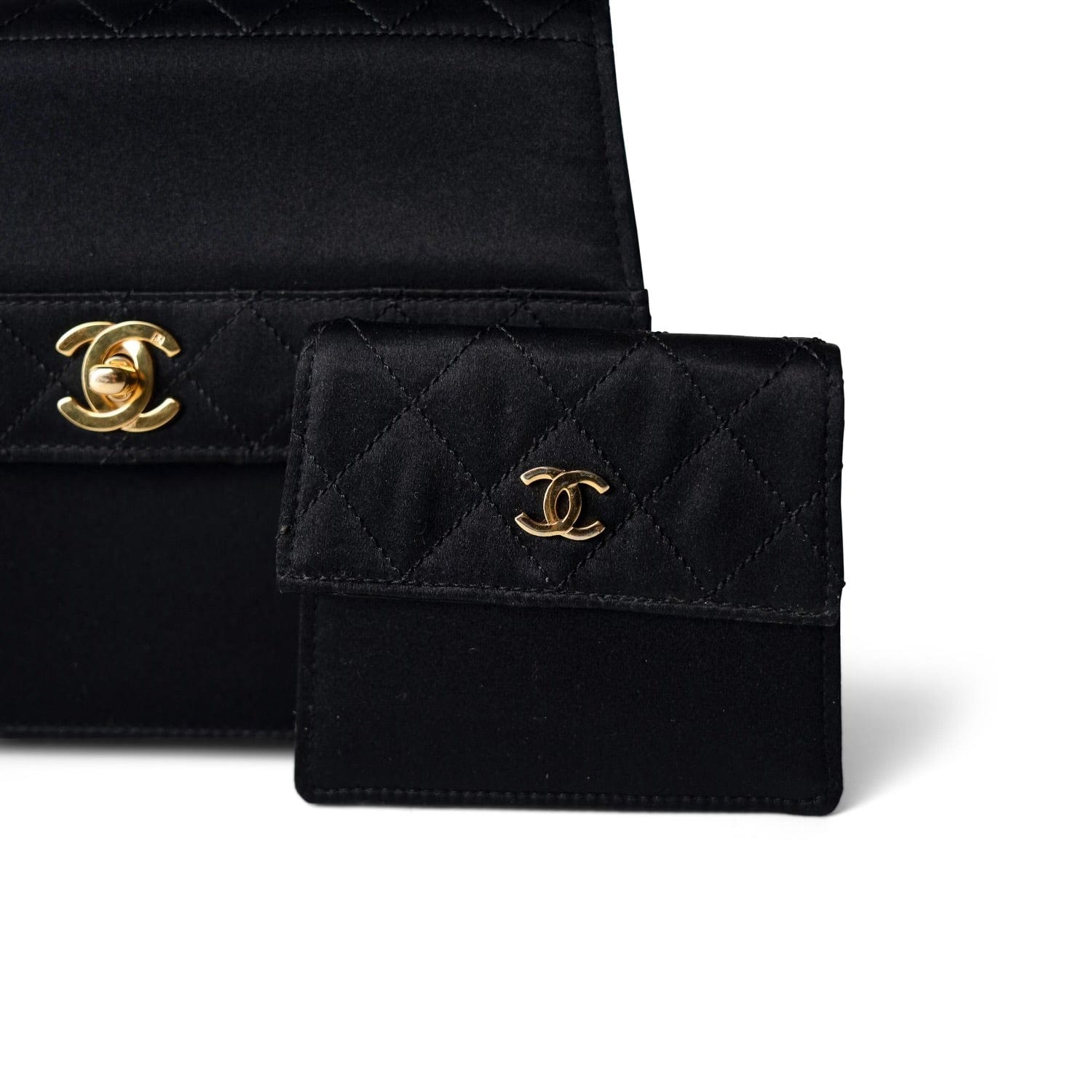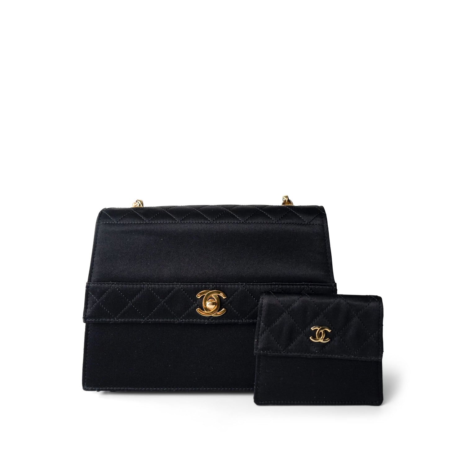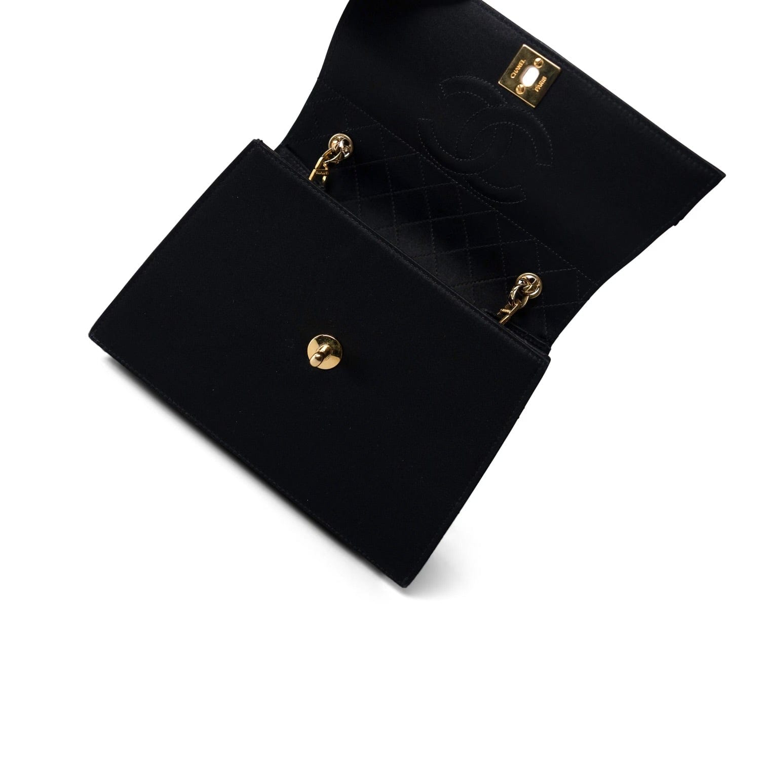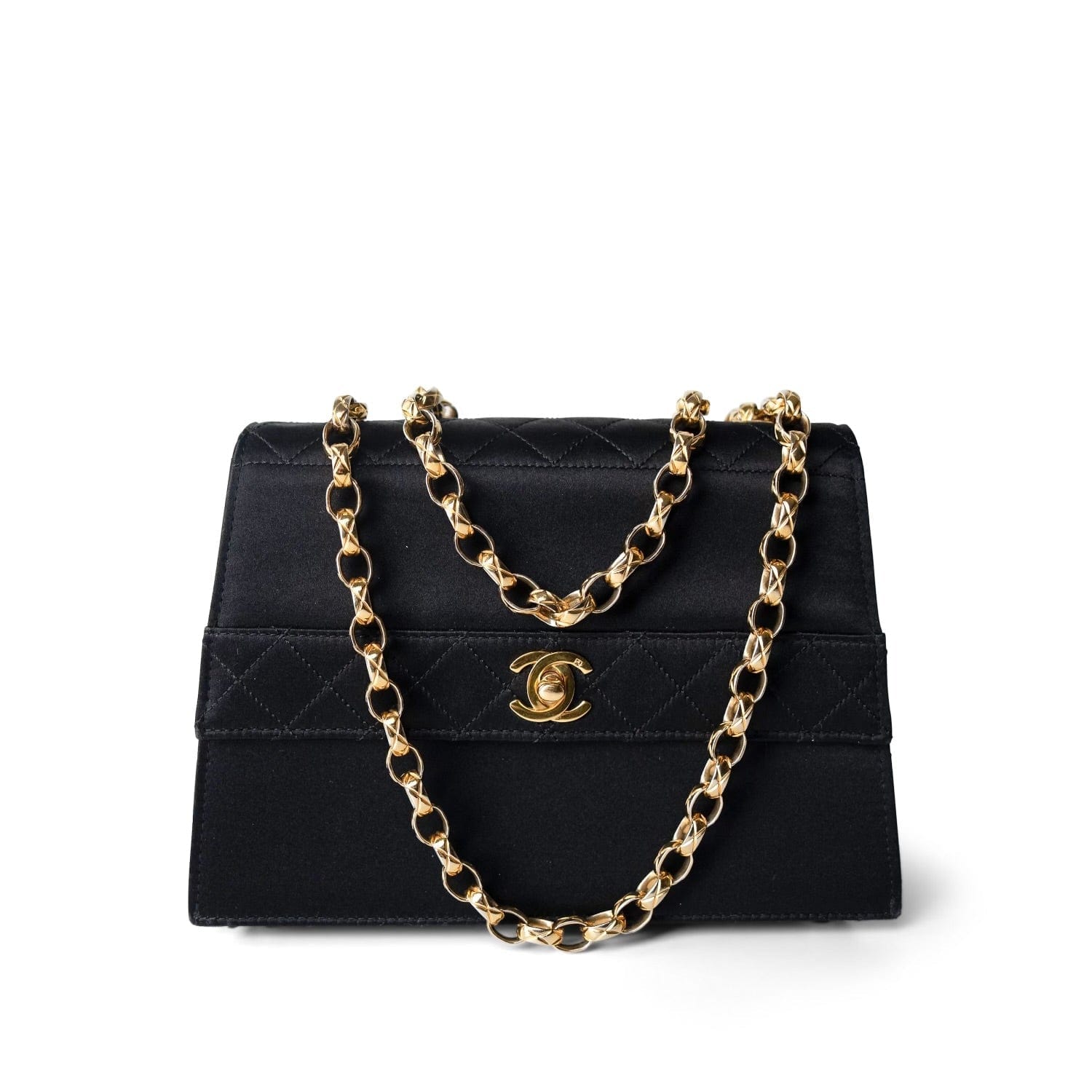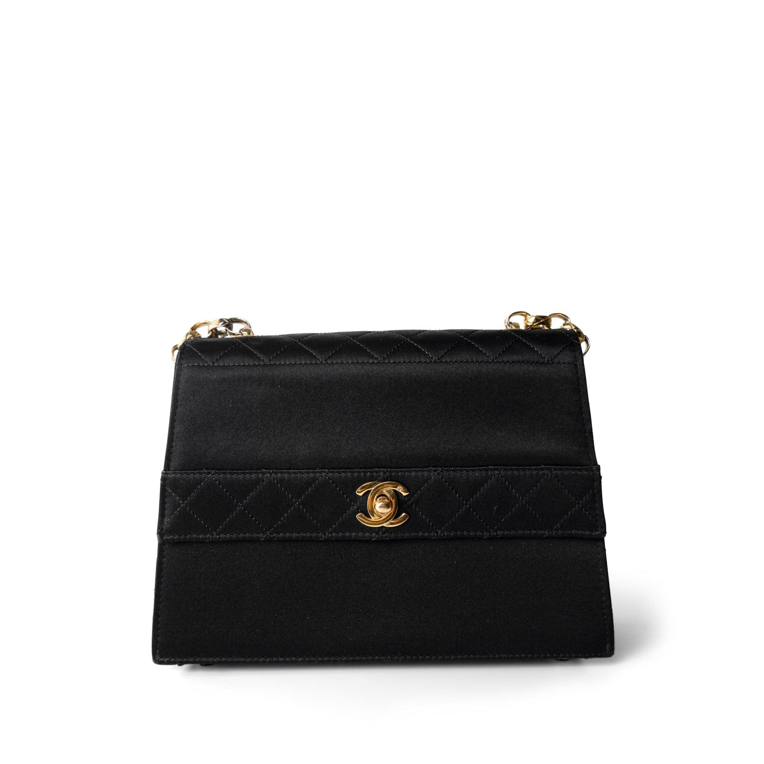 Vintage Black CC Satin Trapezoid Flap Bag