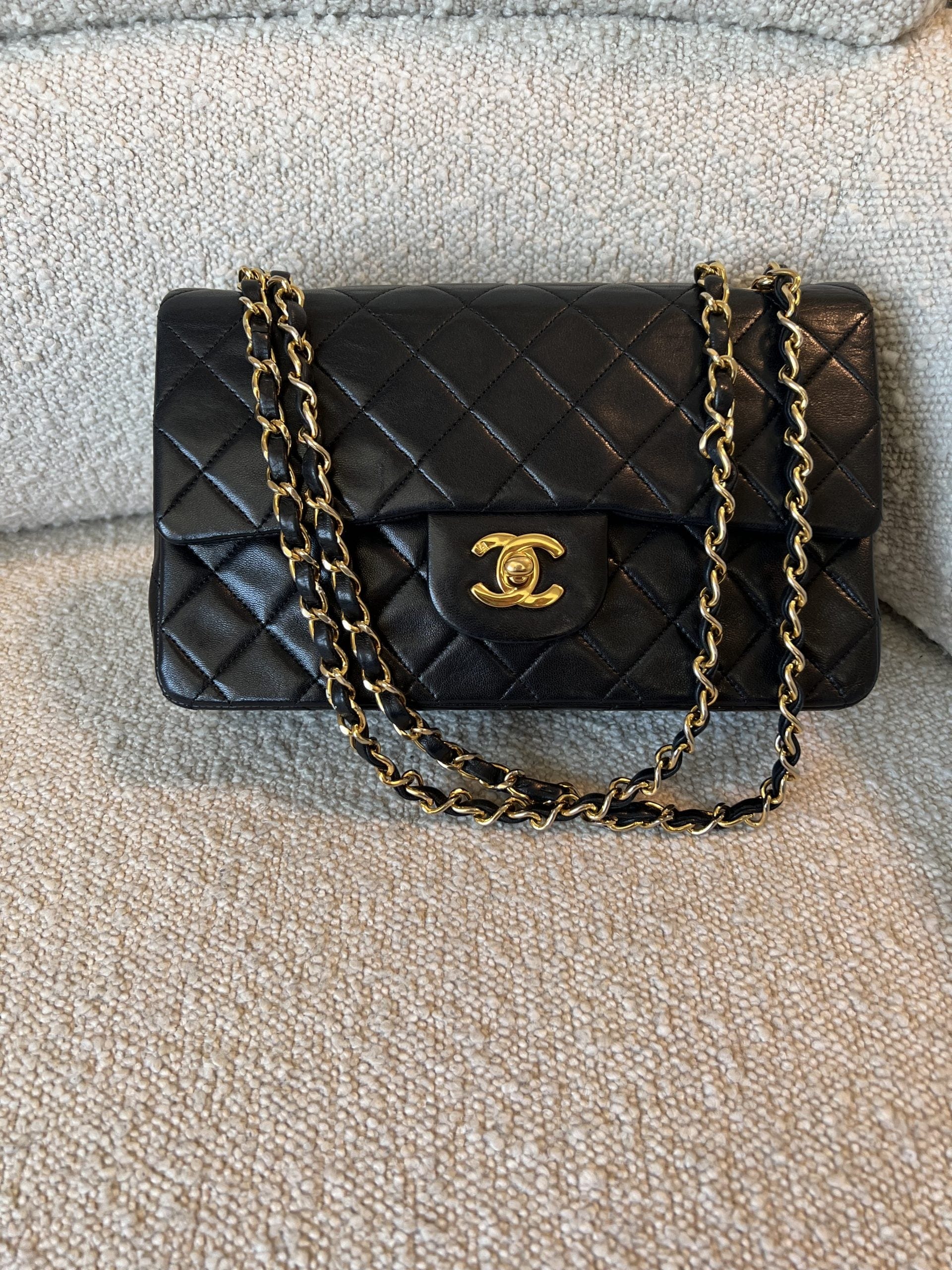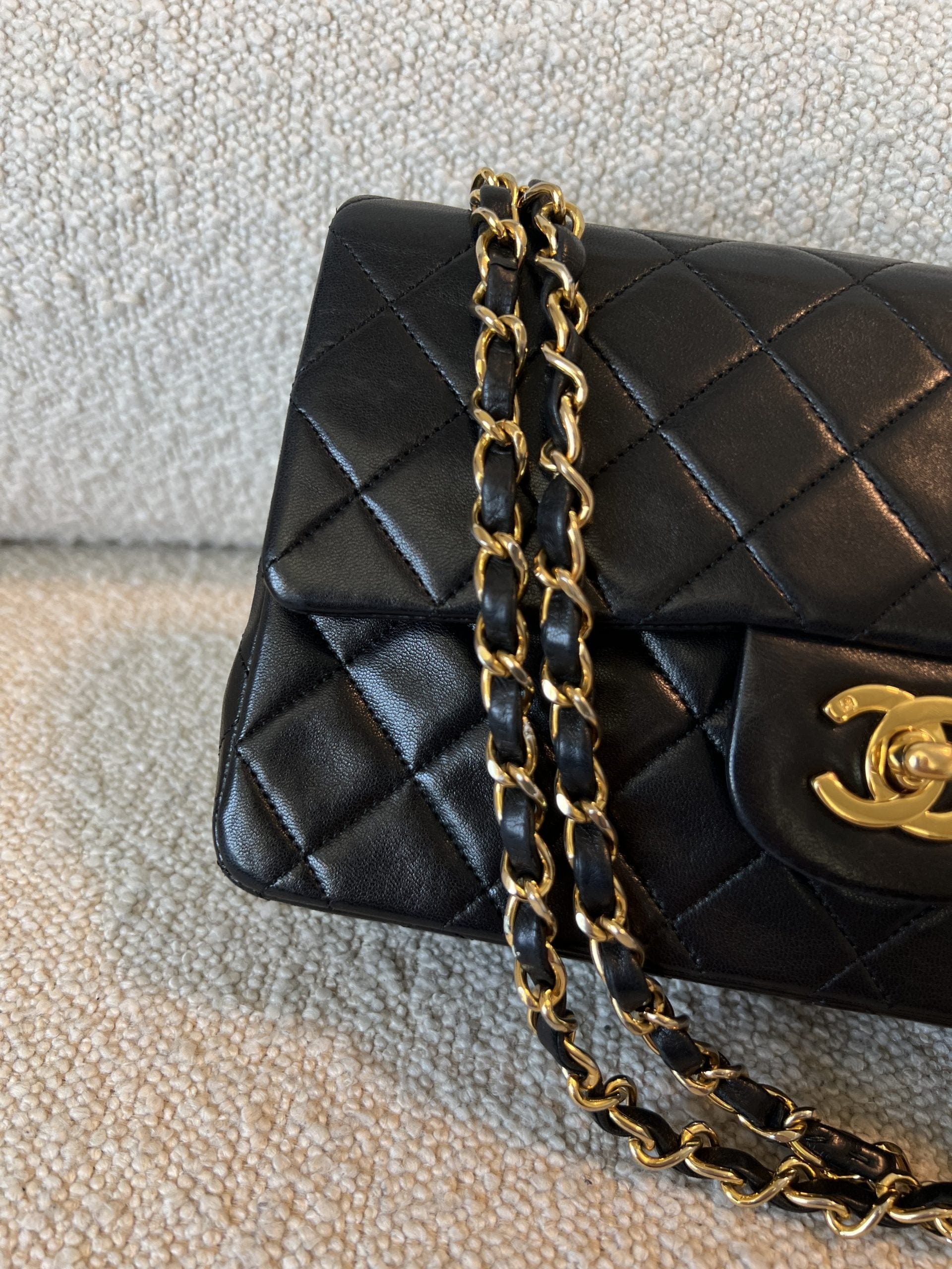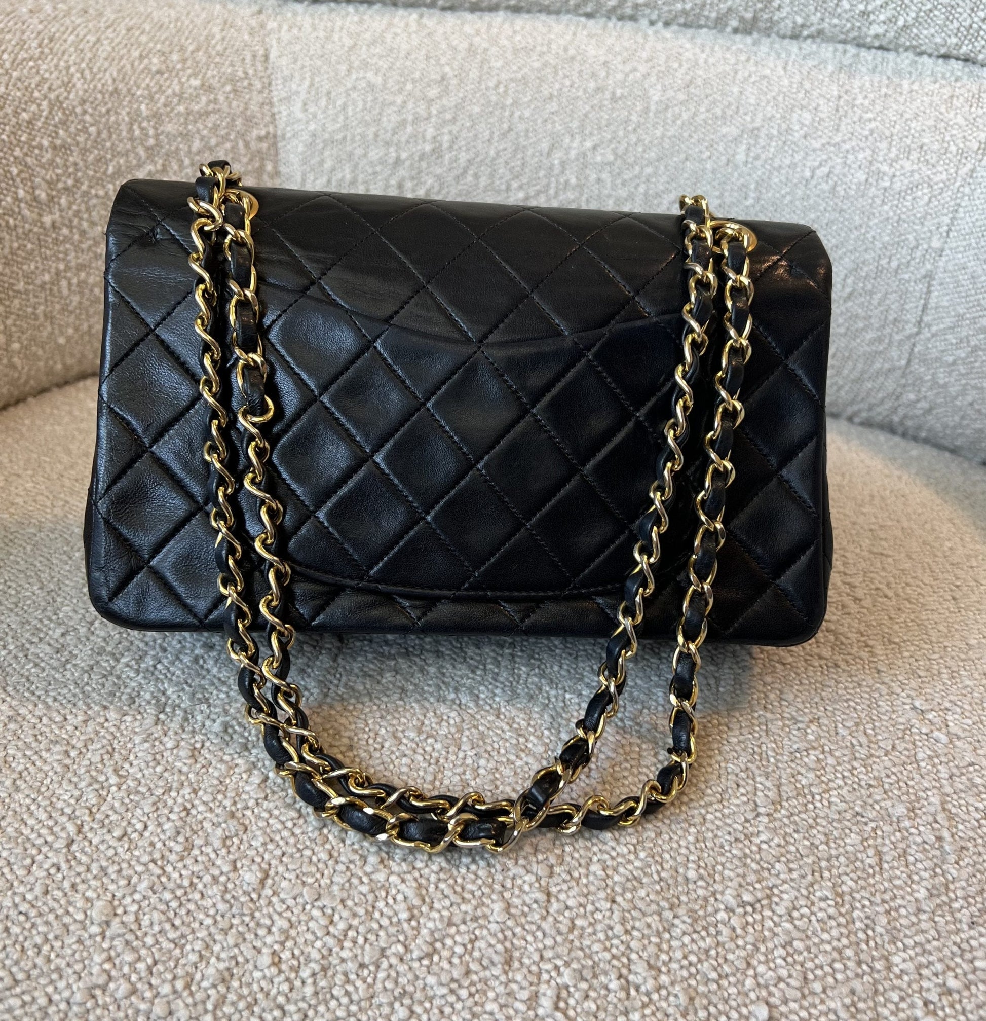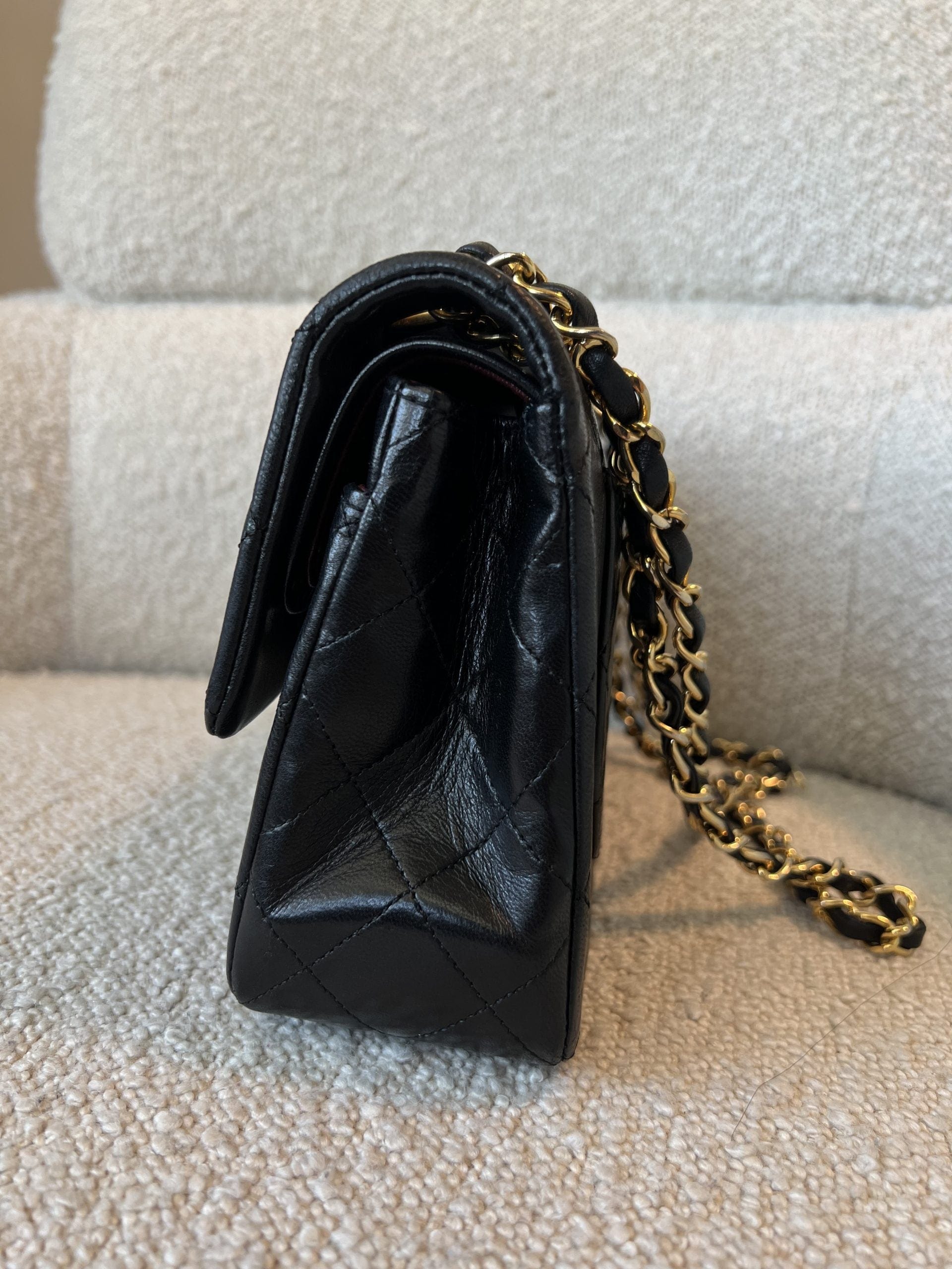 Vintage Black Lambskin Quilted Small Classic Flap GHW