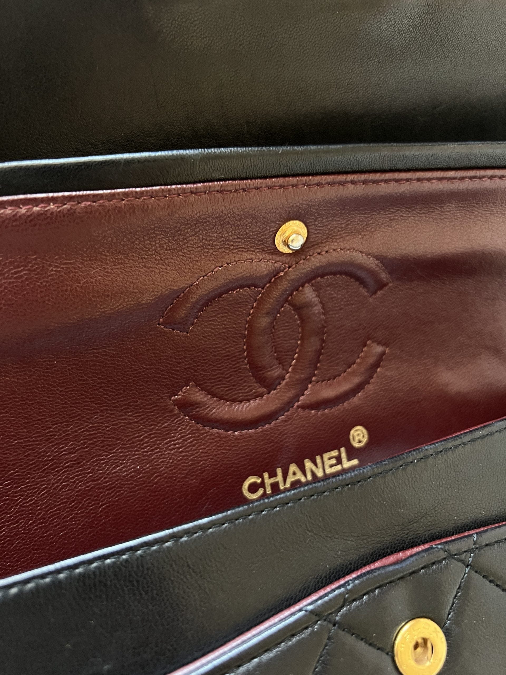 Condition Details: Some denting from the chain on the interior flap. Some minor creasing throughout. Few hairline scratches on the turn lock. Light rubbing on the corners. Slight vintage odor (interior).