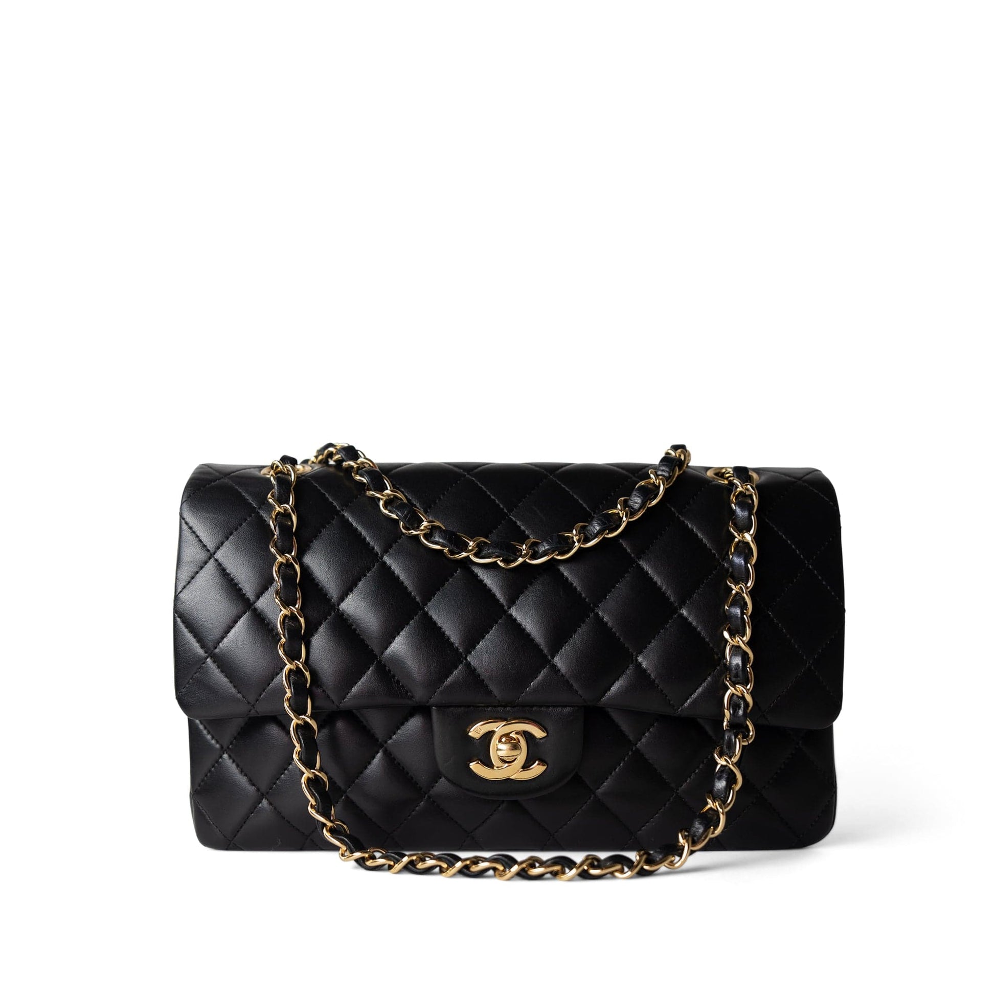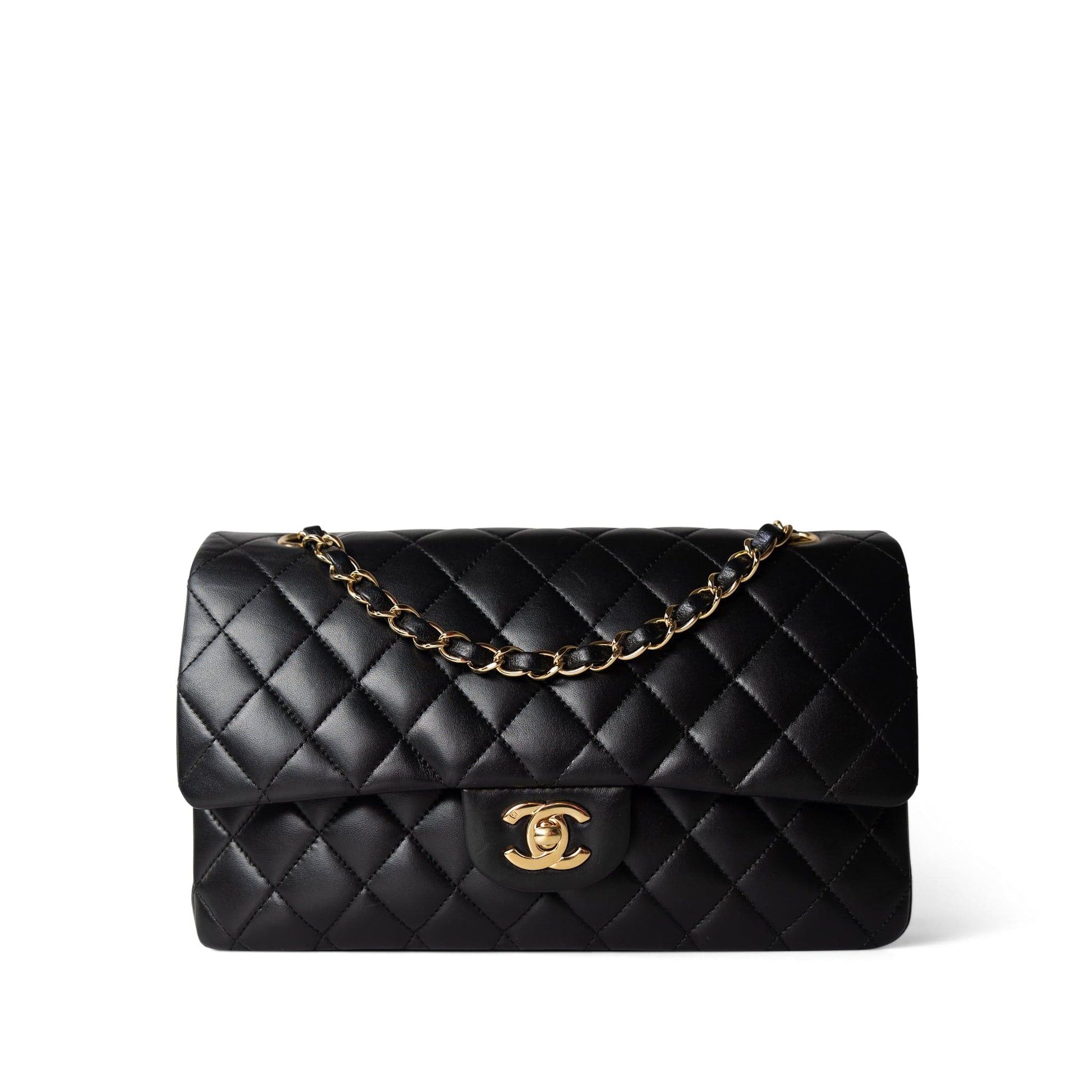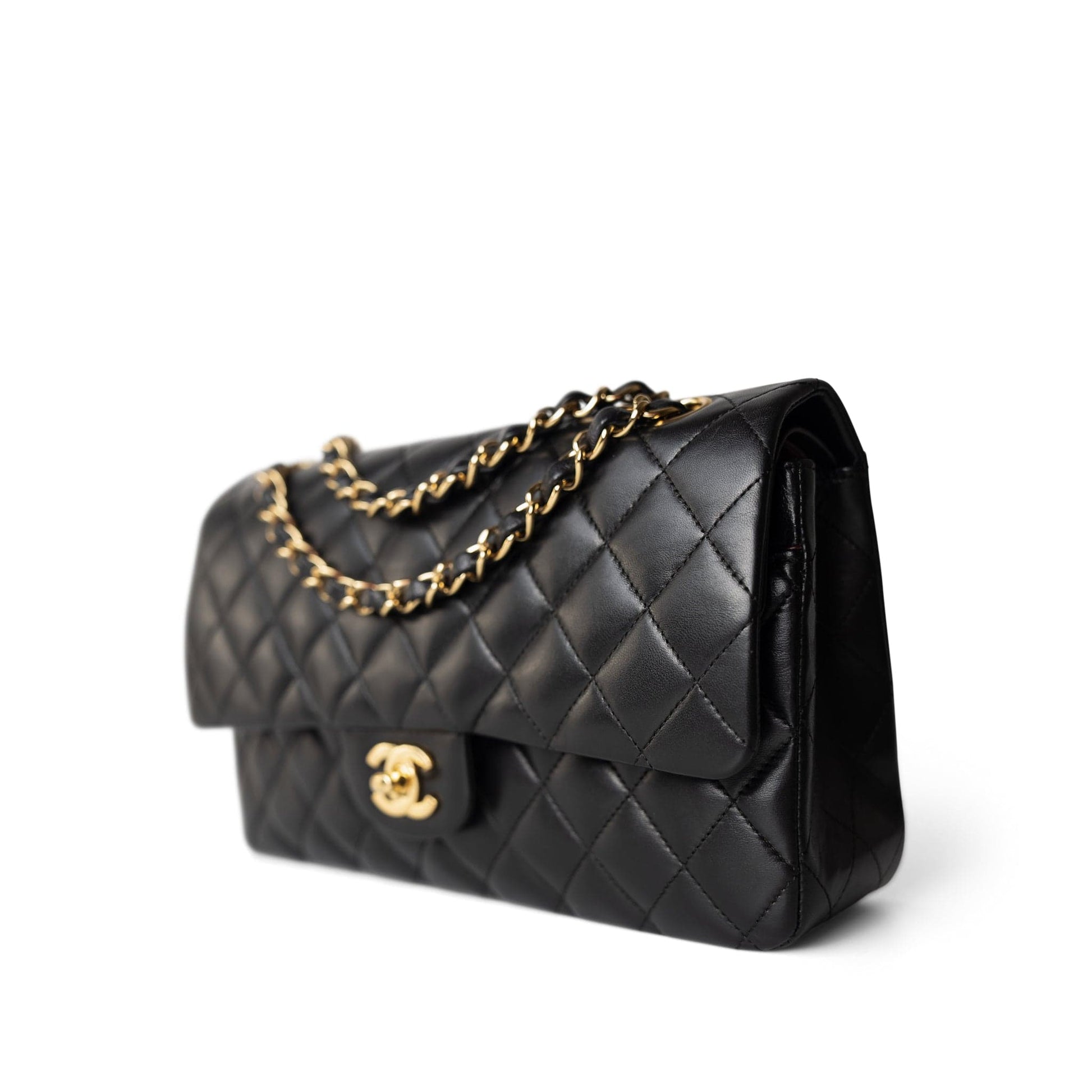 Vintage Black Lambskin Quilted Classic Flap Medium Gold Hardware