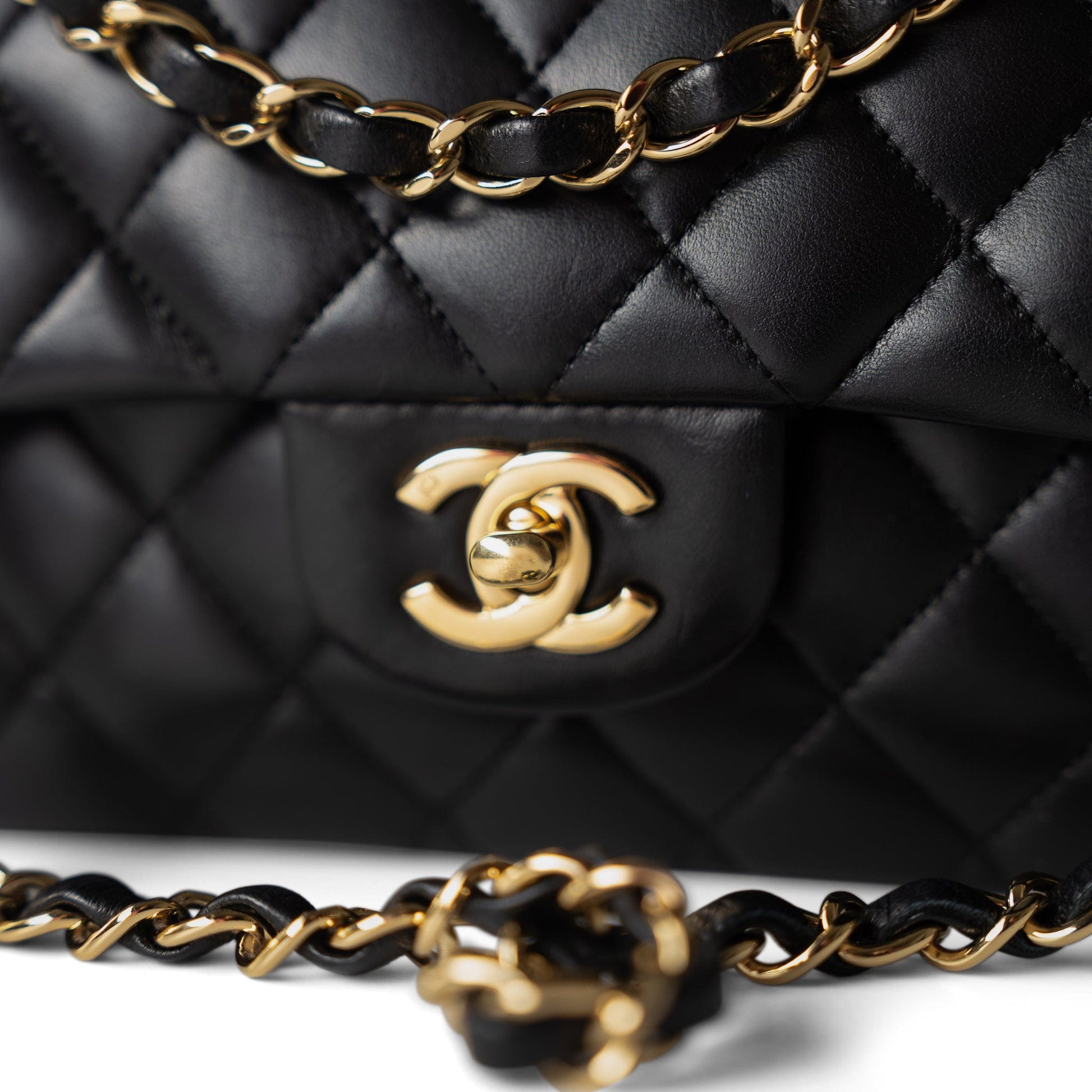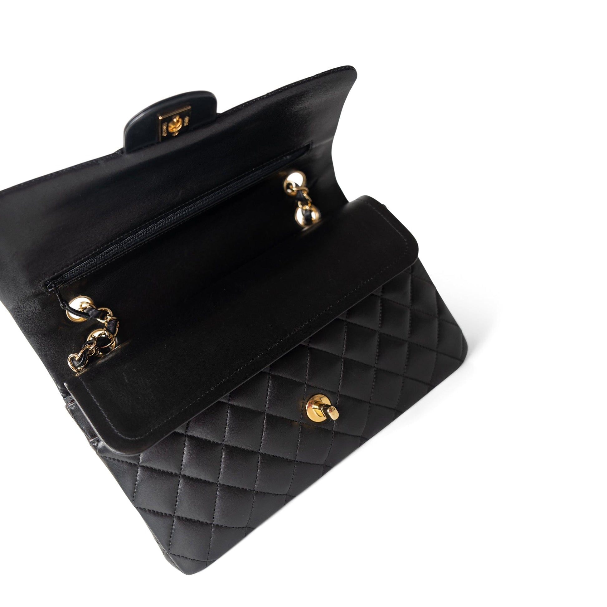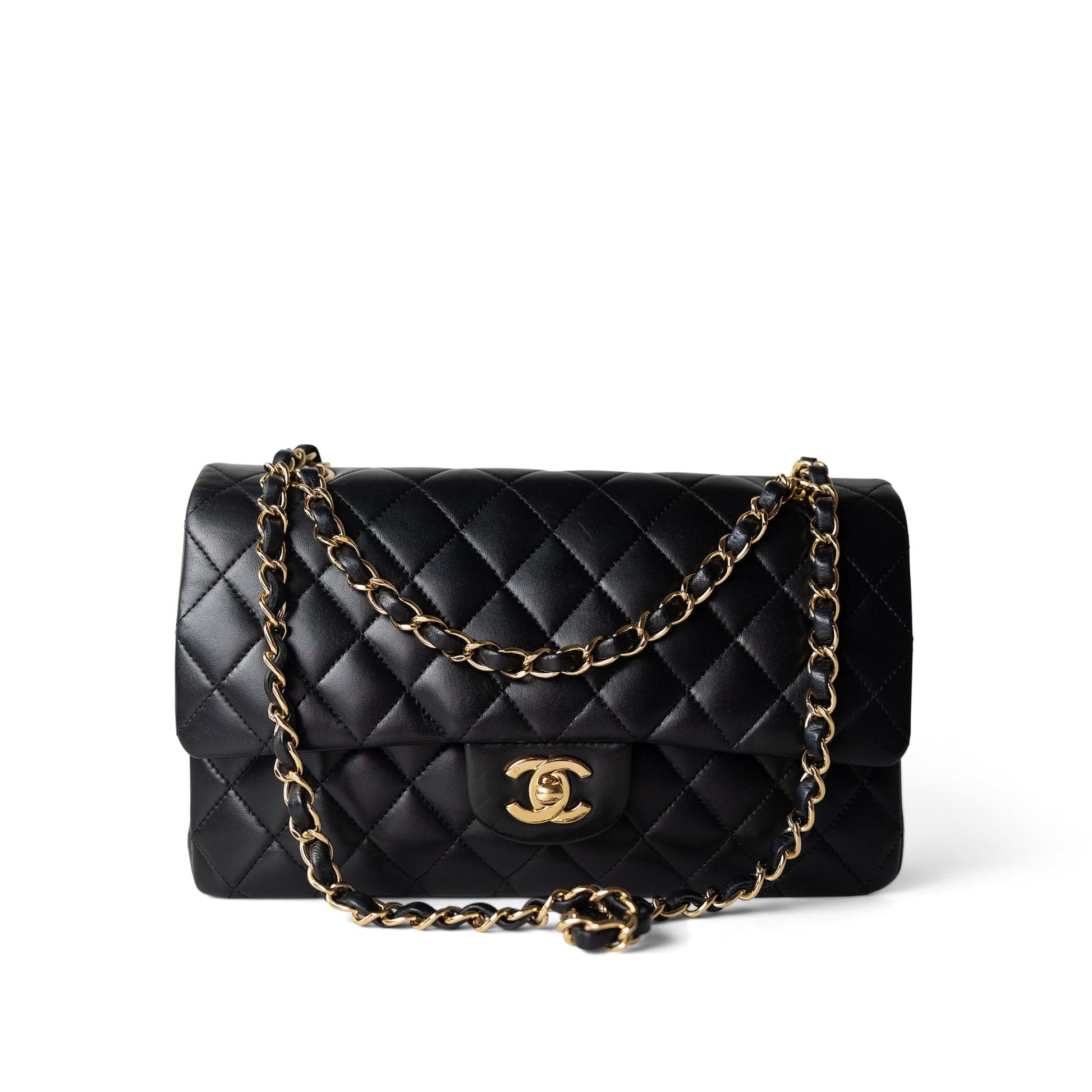 Vintage Black Lambskin Quilted Classic Flap Medium Gold Hardware