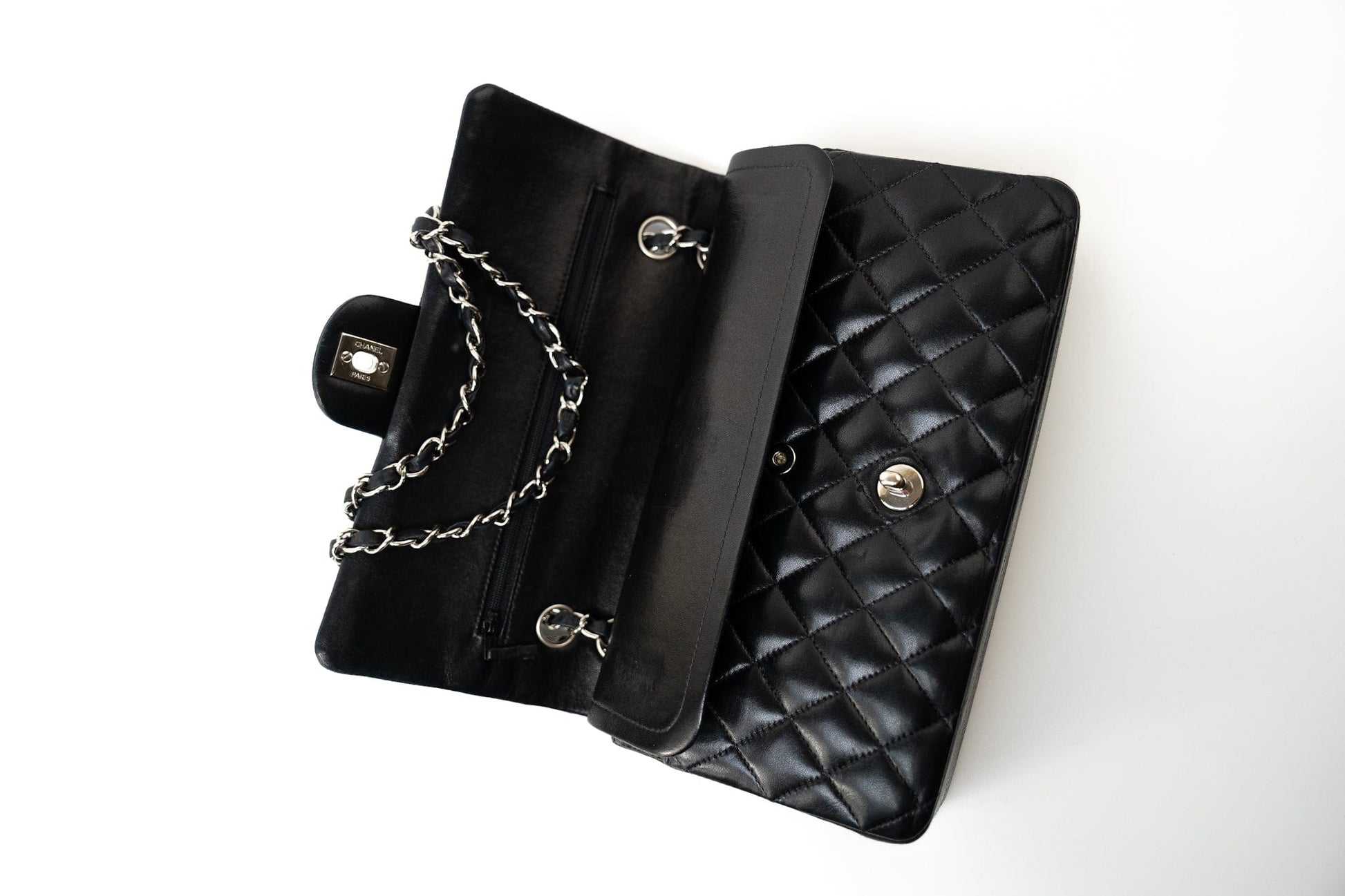 Vintage Black Lambskin Quilted Classic Flap Medium Silver Hardware