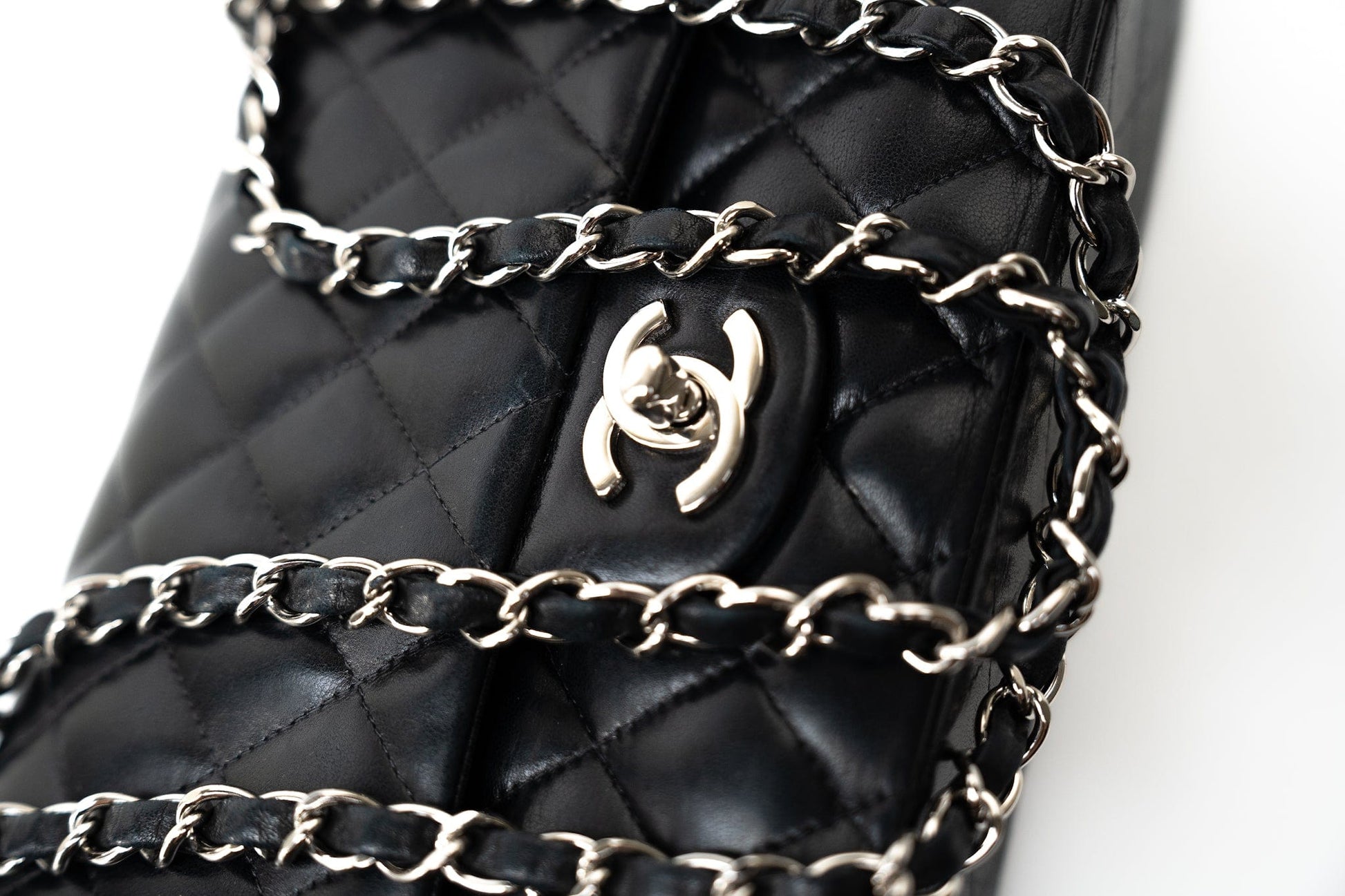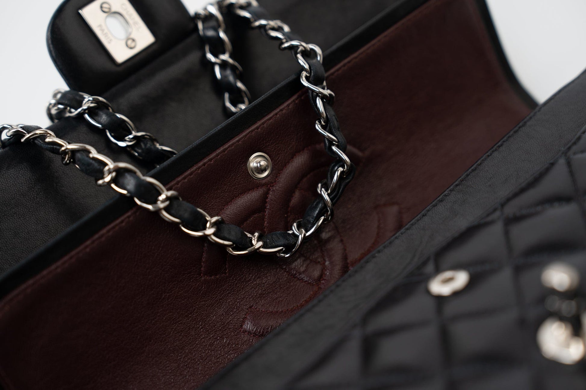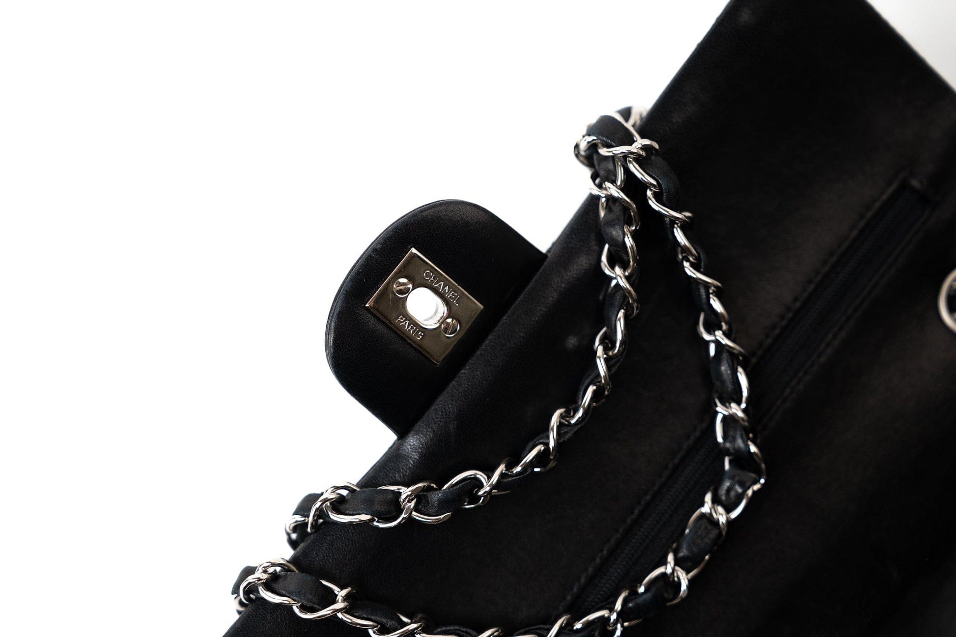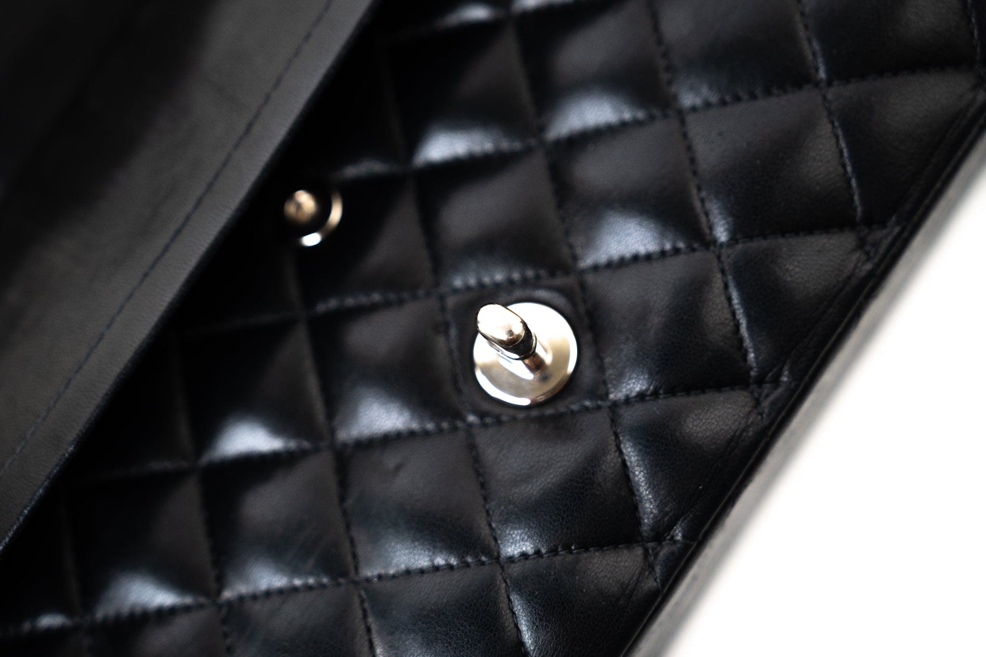 Indulge in classic Chanel luxury with this beautiful Vintage Black Lambskin Quilted Classic Flap! In excellent condition, this gorgeous piece of vintage elegance is sure to delight any Chanel lover. Its soft lambskin quilted design and shimmering silver hardware make it a timelessly beautiful bag nearing its 20th (vintage) anniversary.