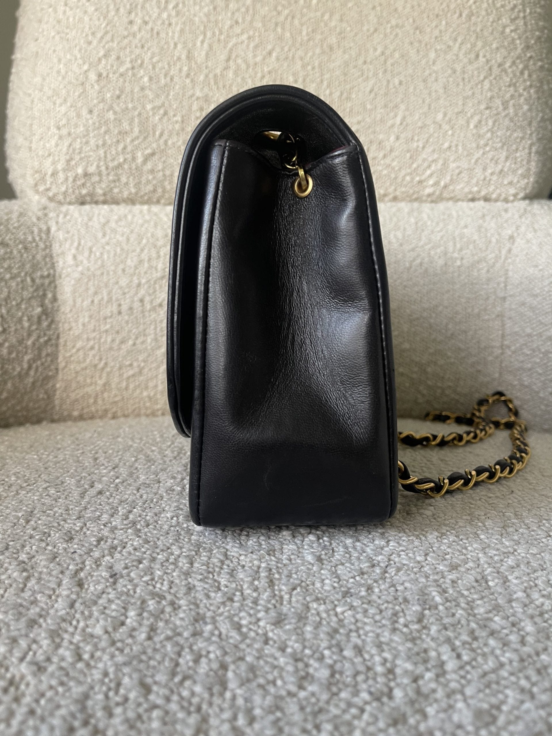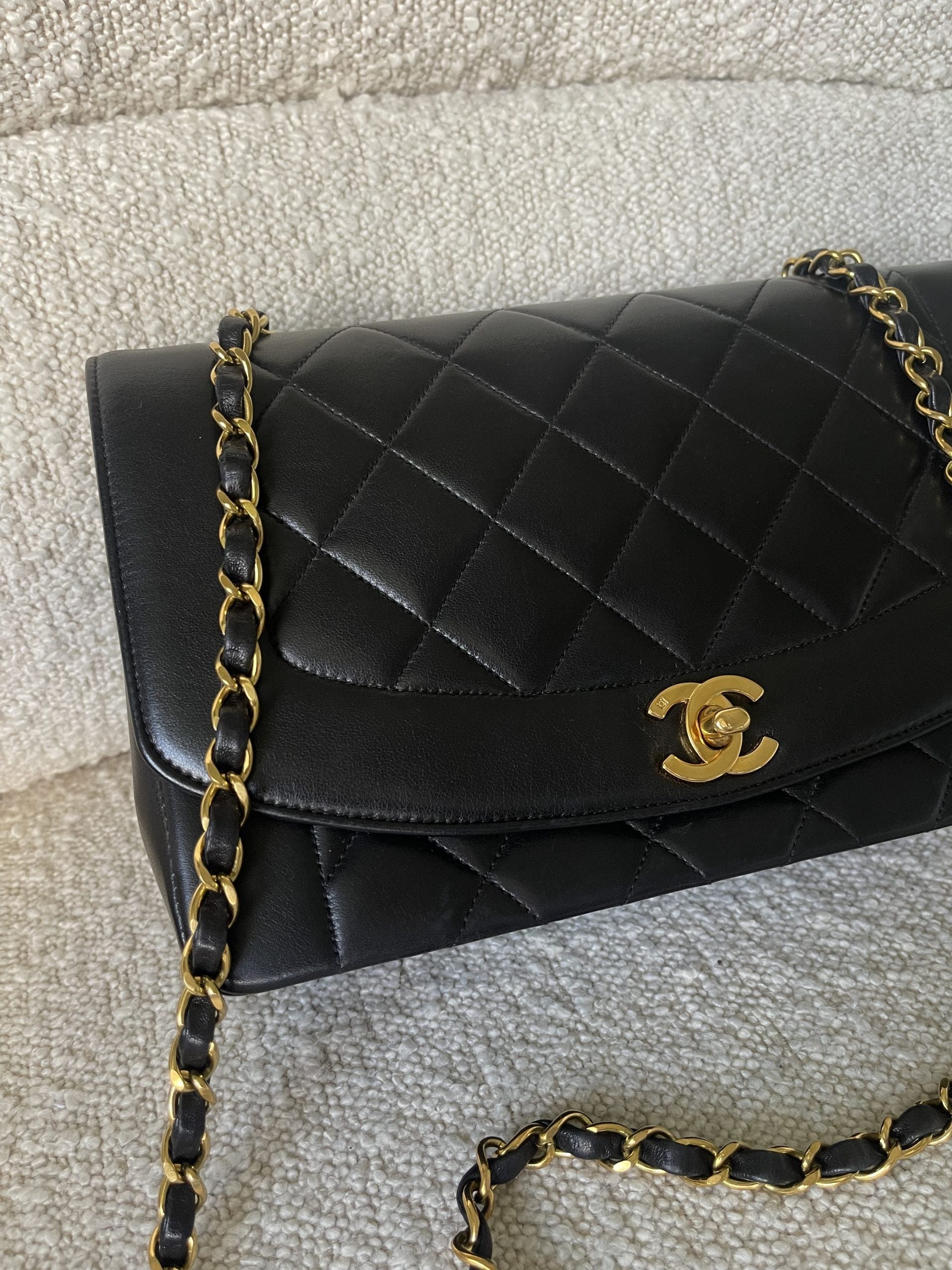 Vintage Black Lambskin Quilted Medium Diana Flap GHW