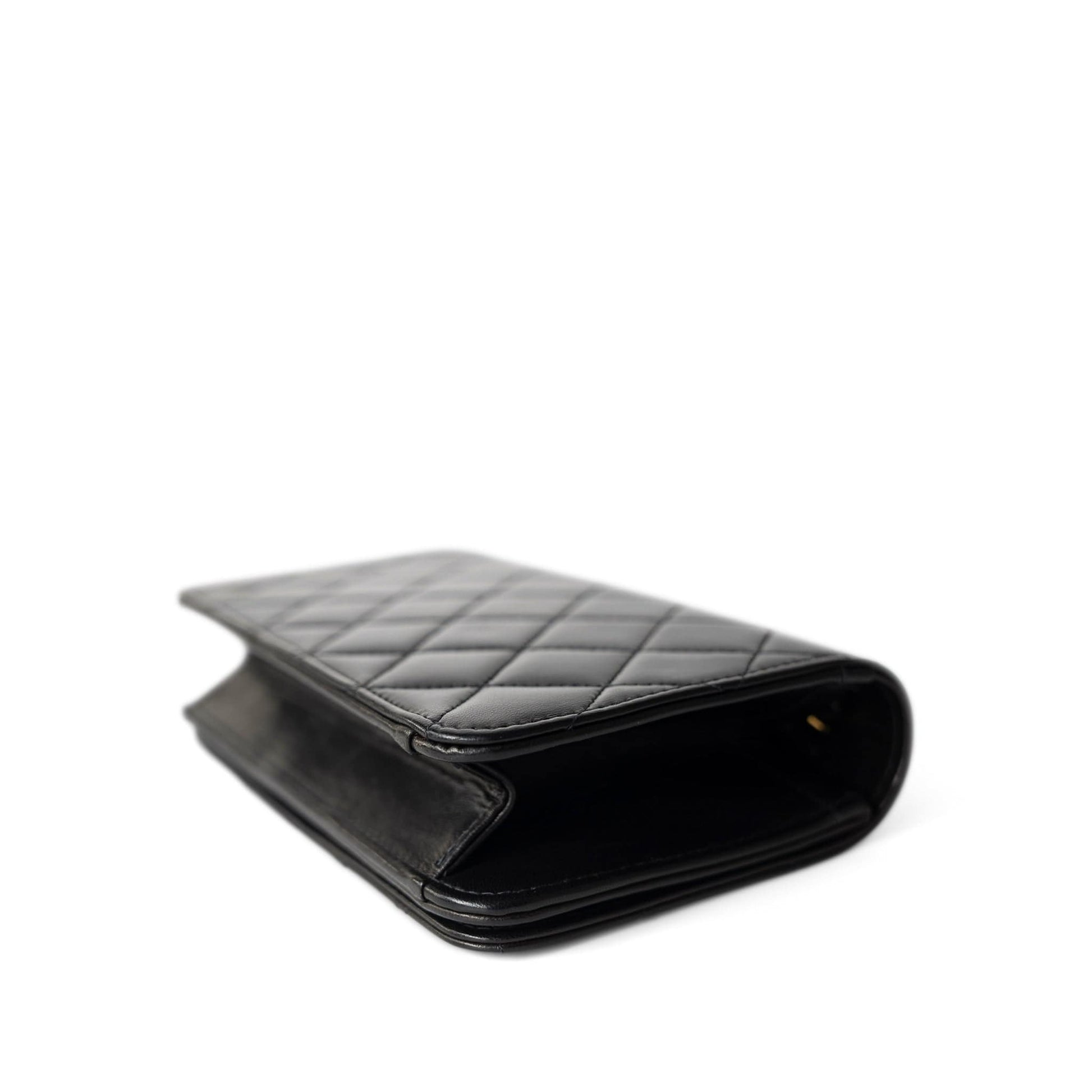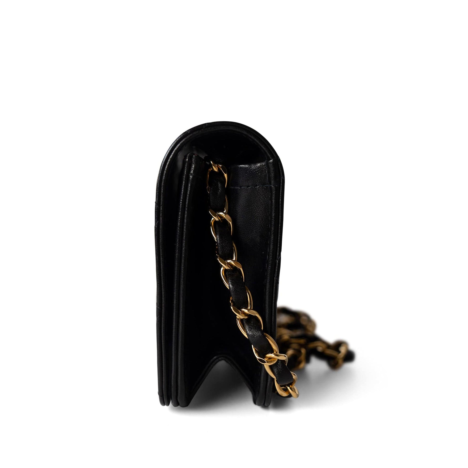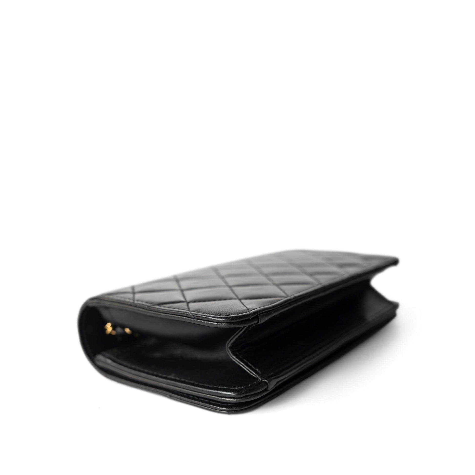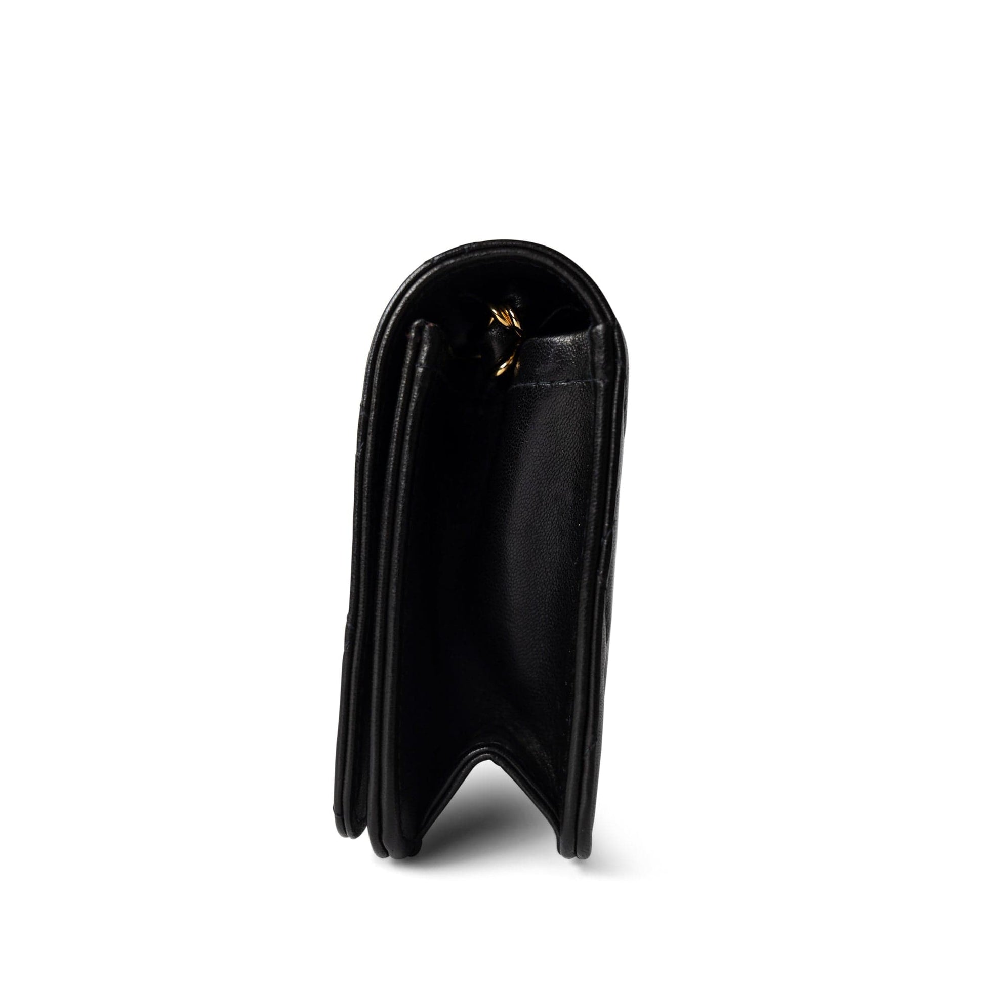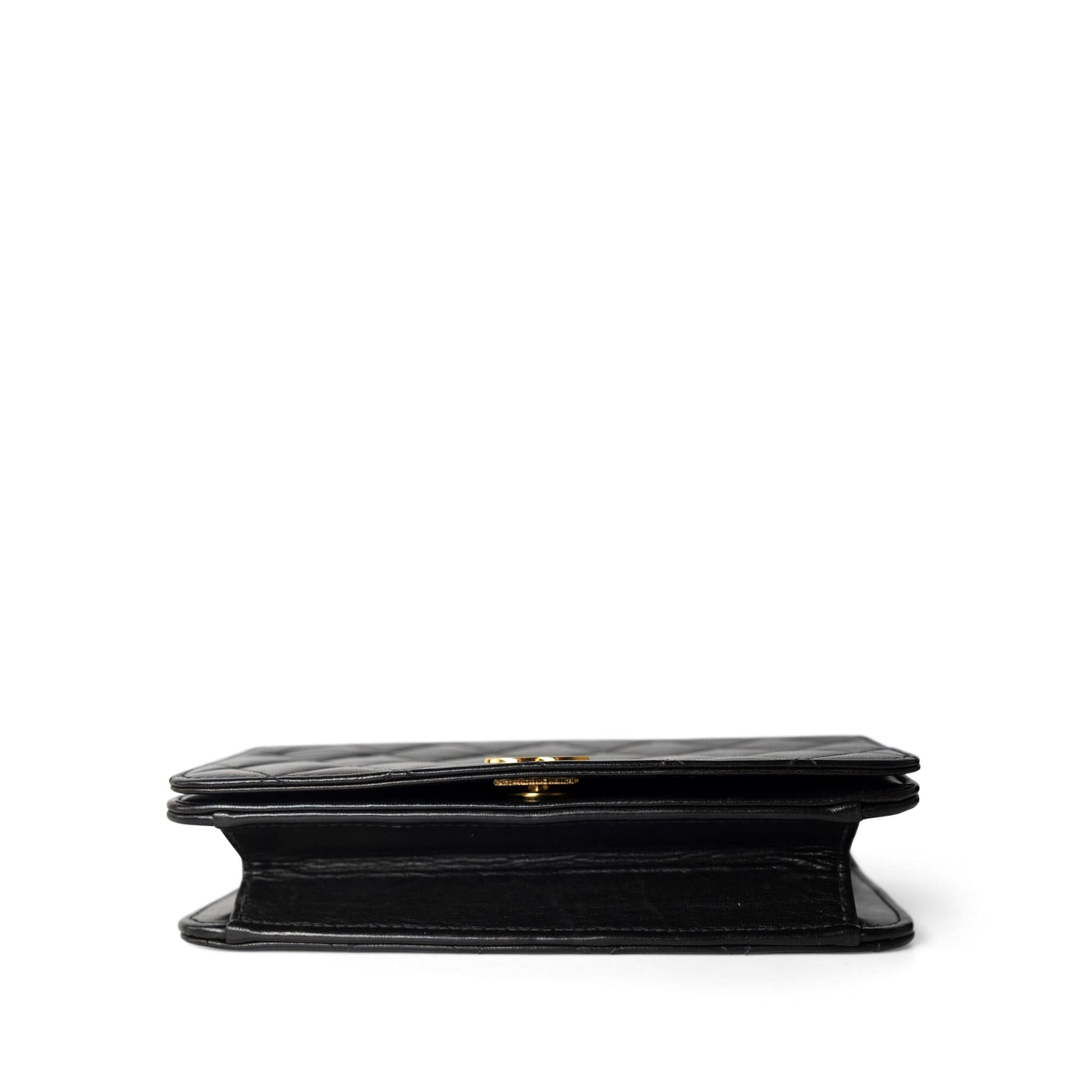 Vintage Black Lambskin Quilted Mini Full Flap Bag Gold Hardware