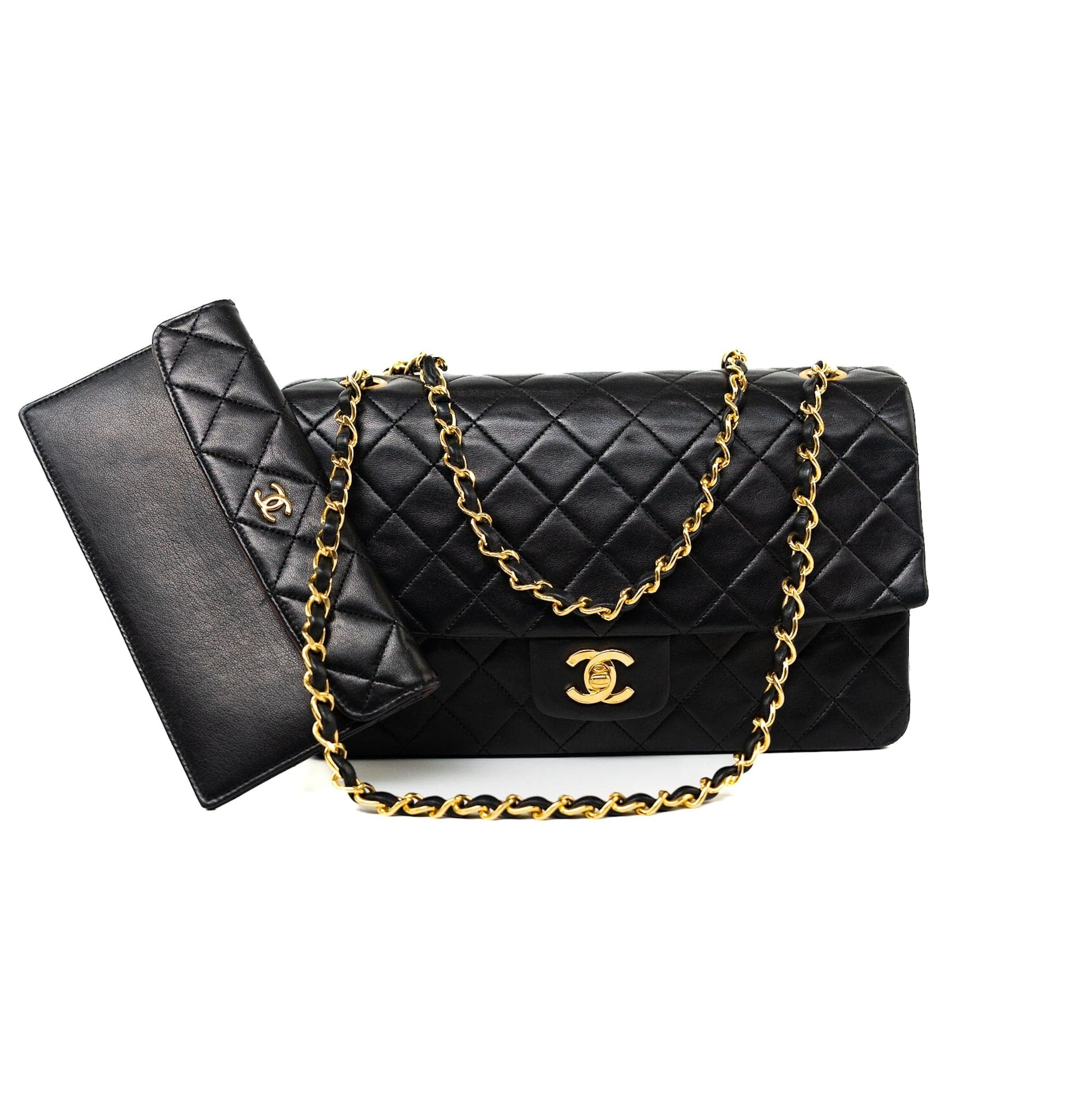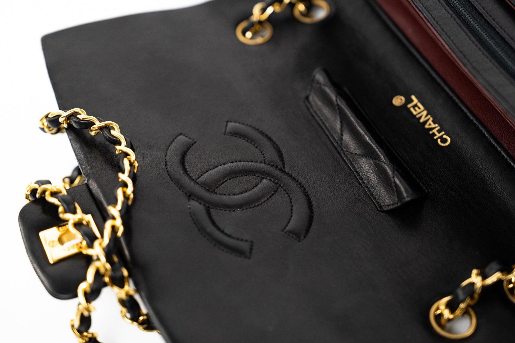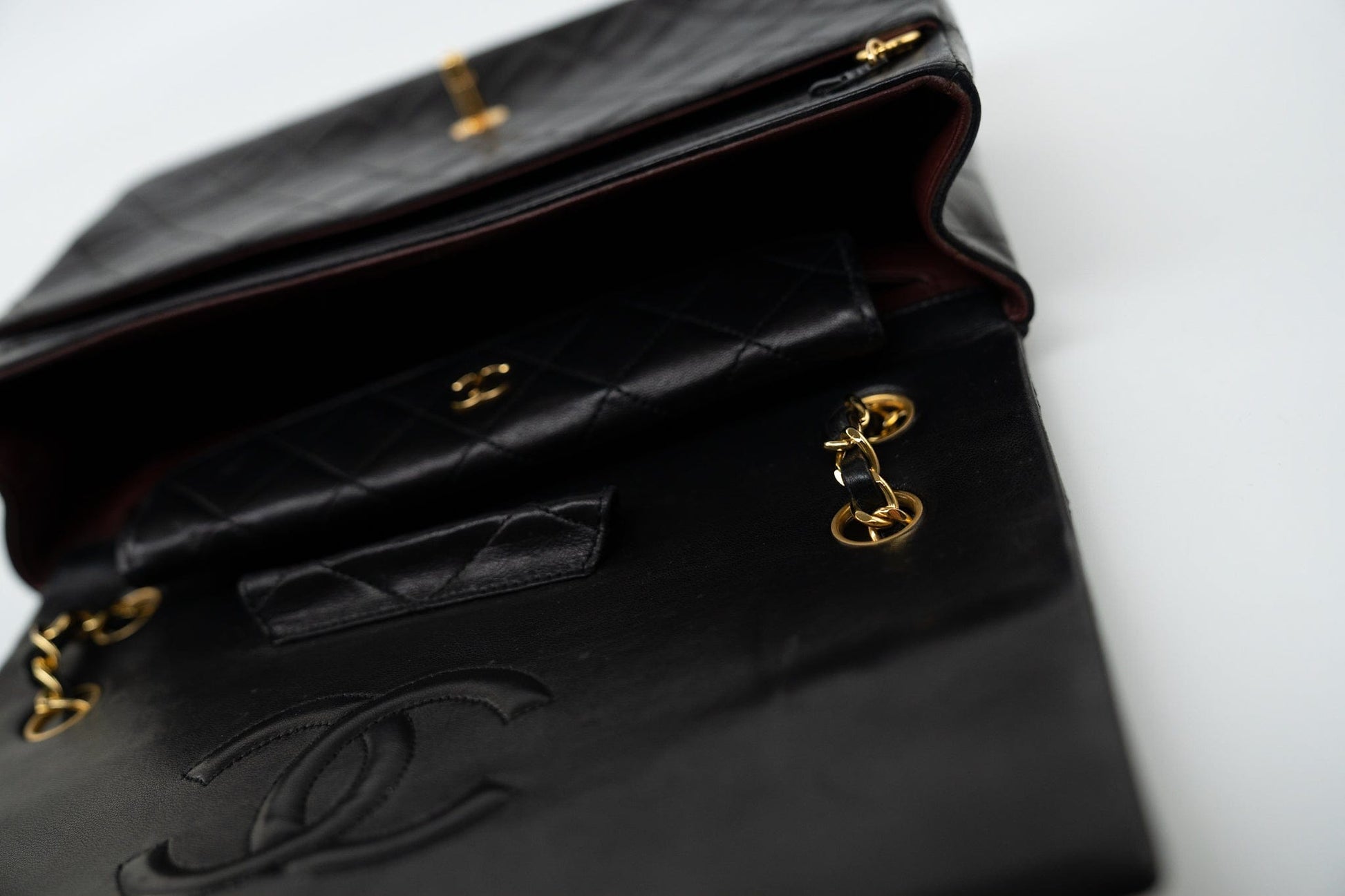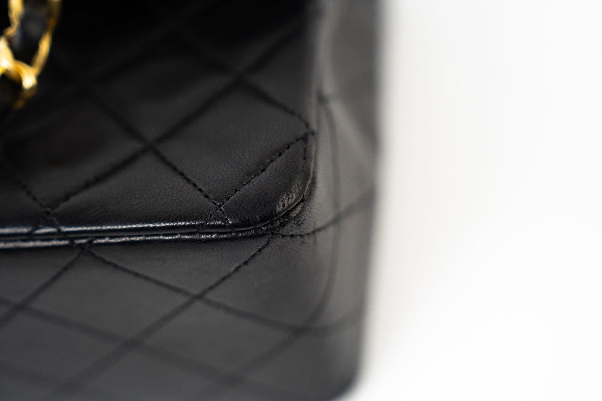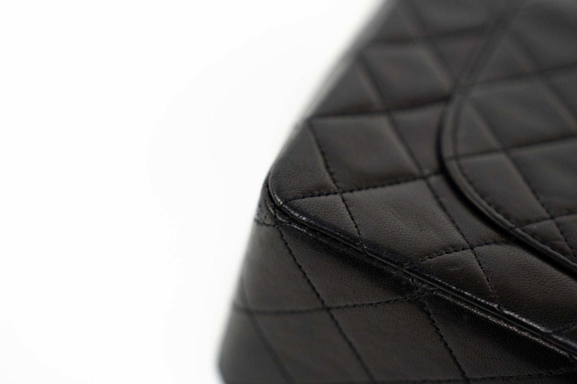 Vintage Black Lambskin Quilted Matelasse Single Flap Bag Gold Hardware