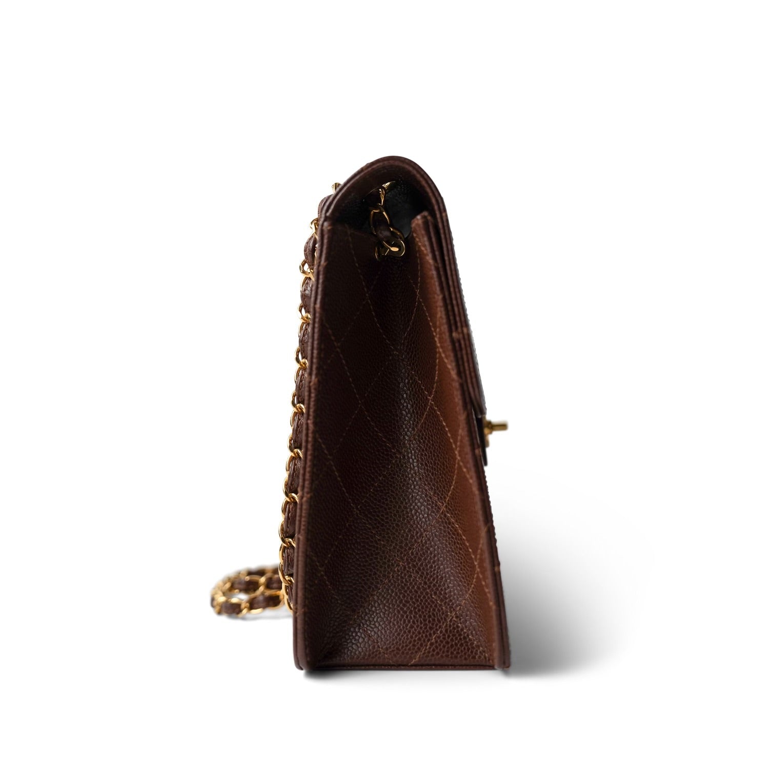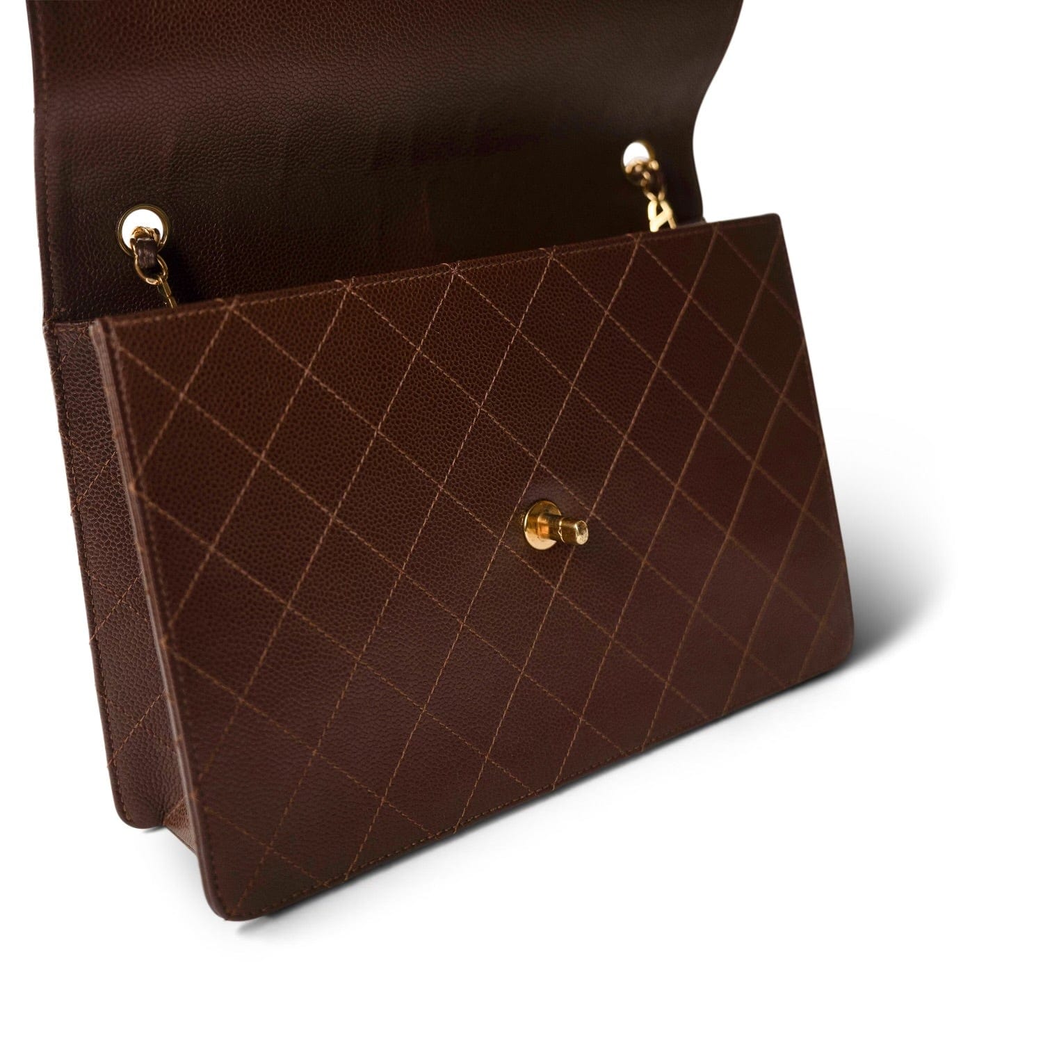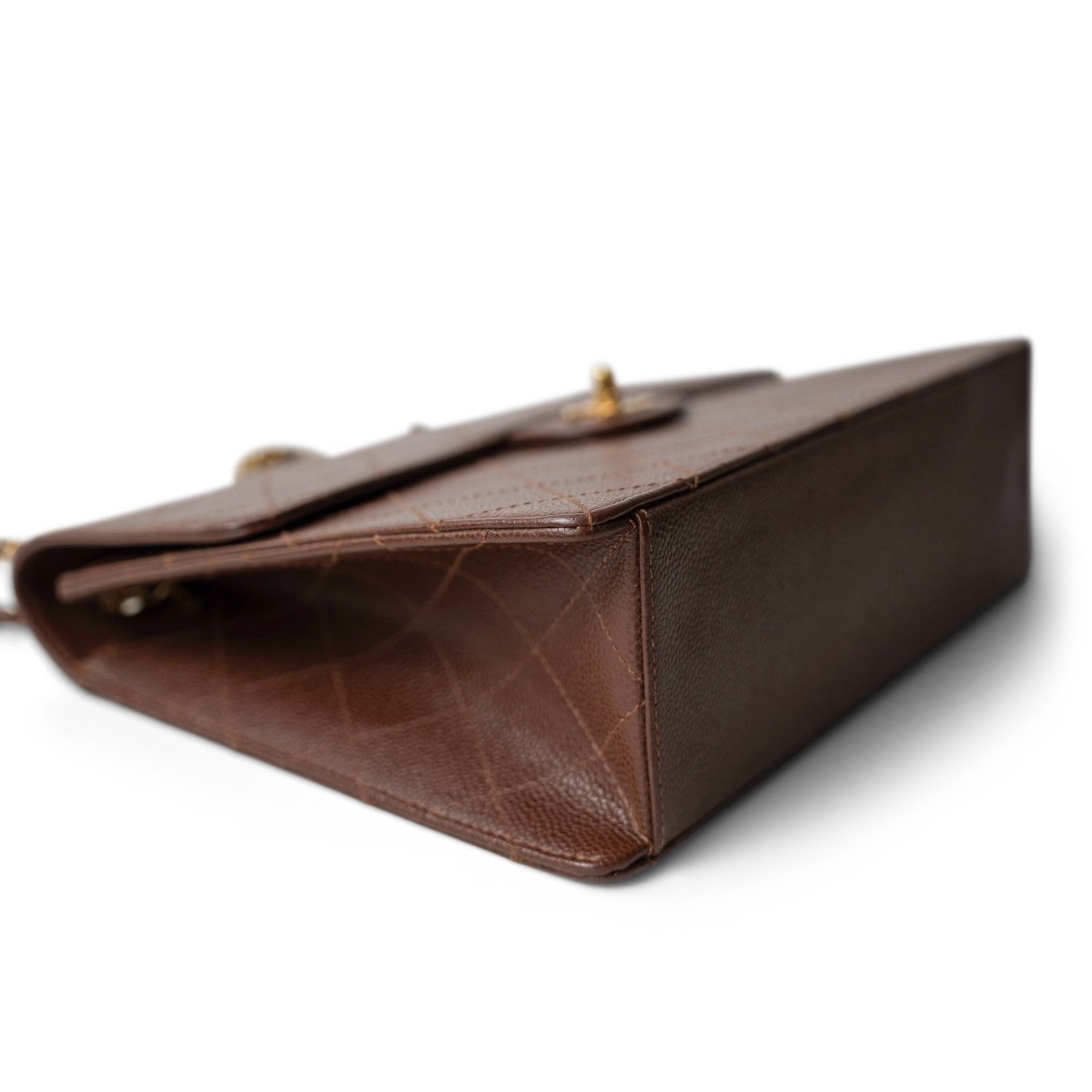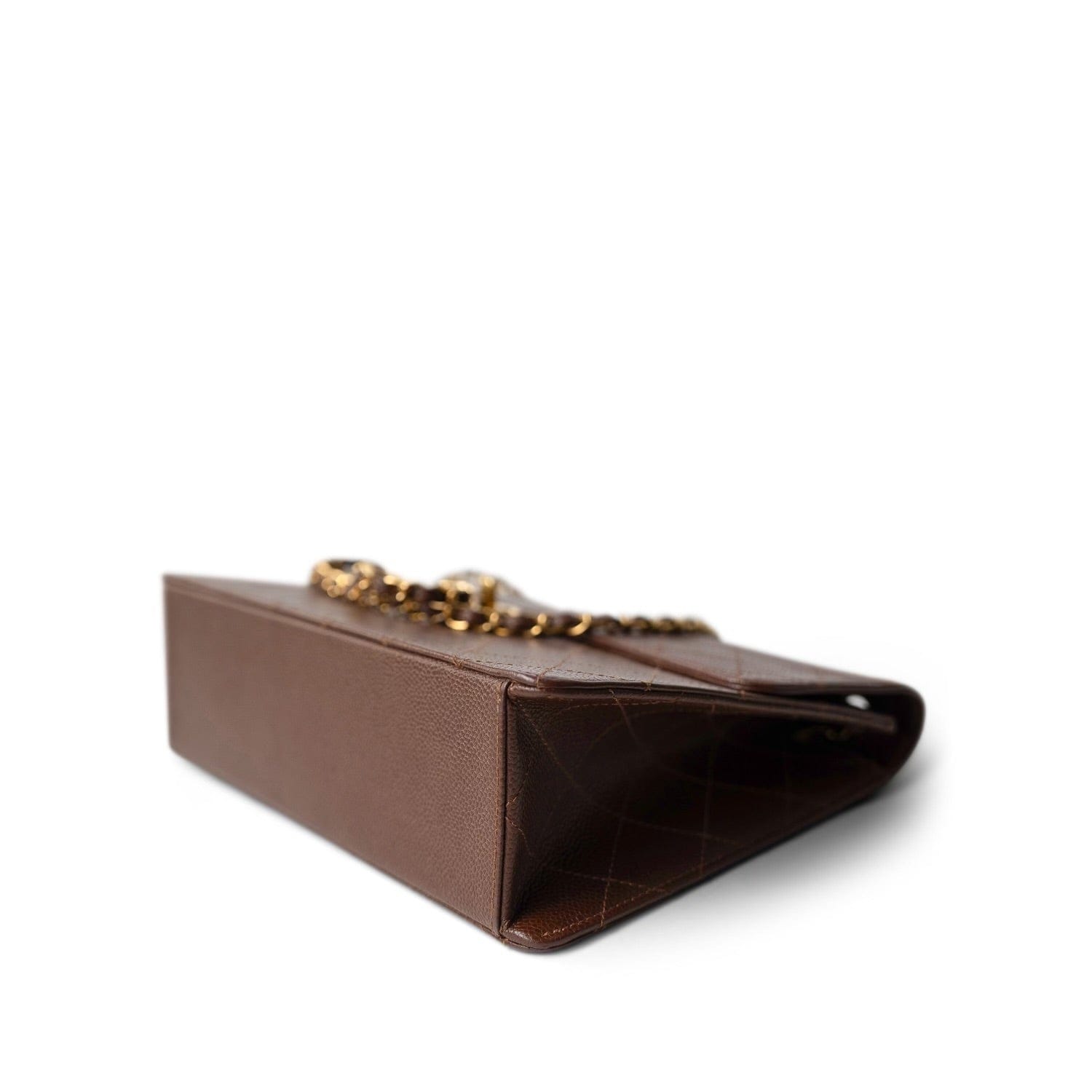 Vintage Brown Caviar Quilted Large Single Flap Bag GHW