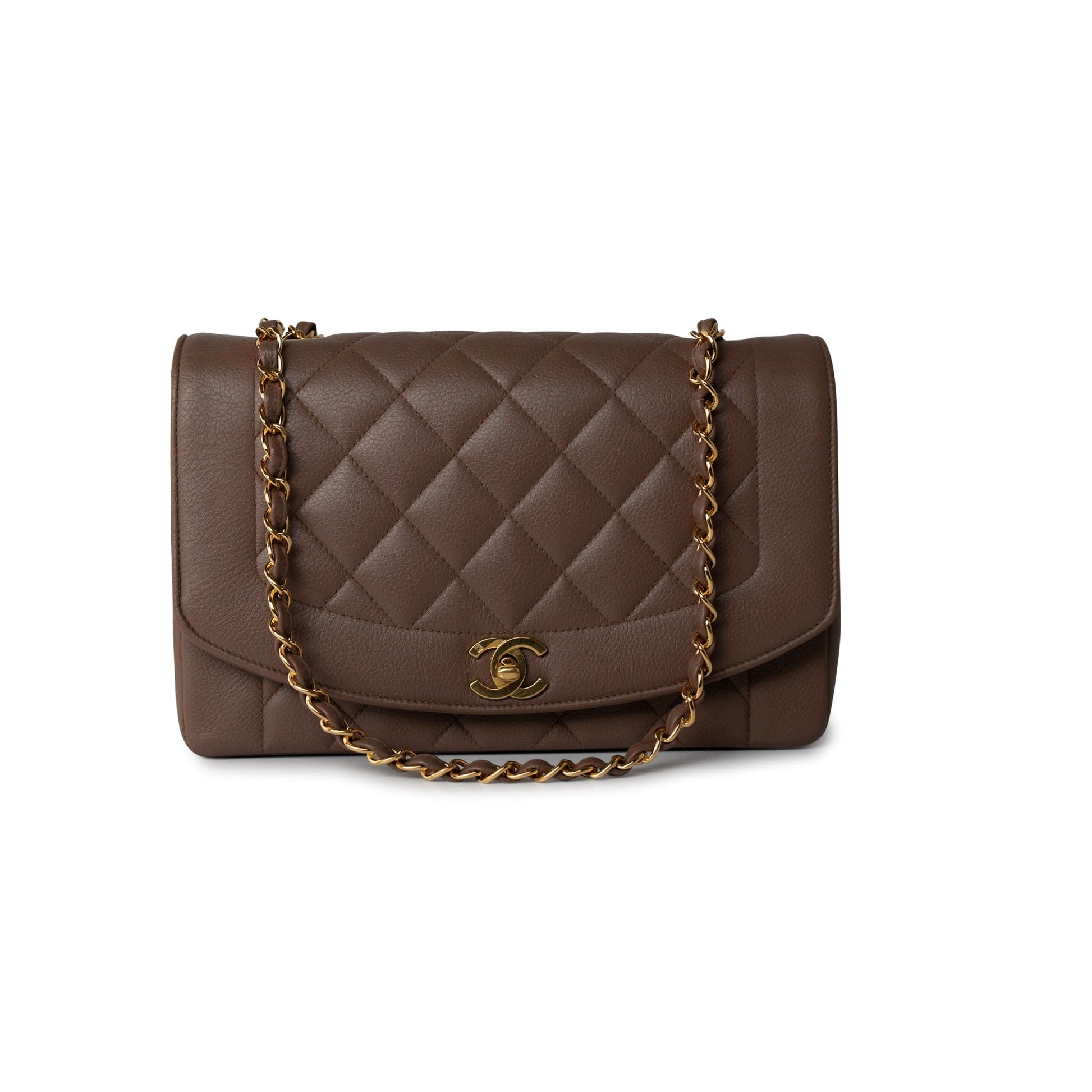 Vintage Brown Caviar Quilted Medium Diana Flap Gold Hardware