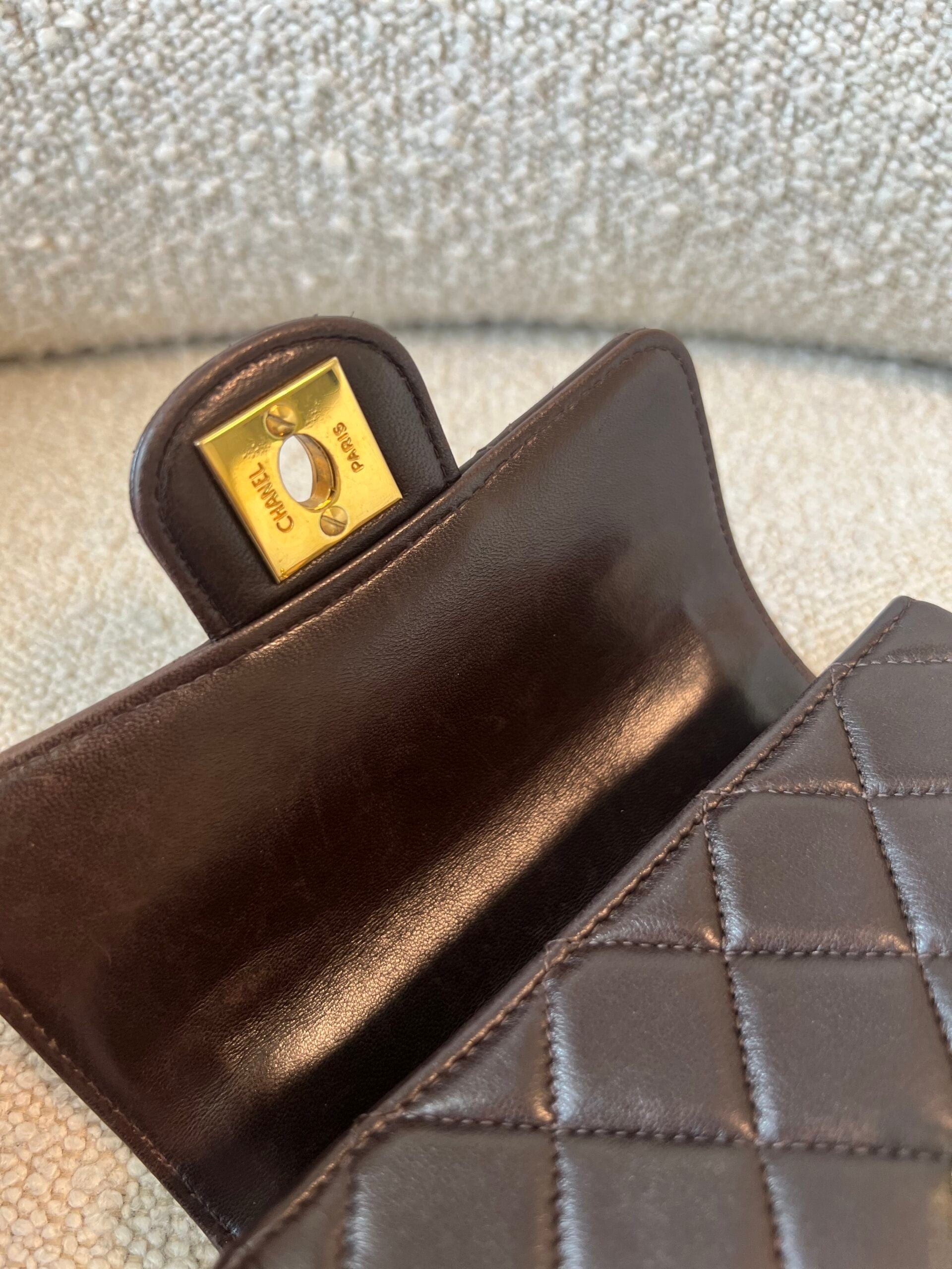 Vintage Brown Lambskin Quilted Micro Mini Kelly with Top Handle GHW