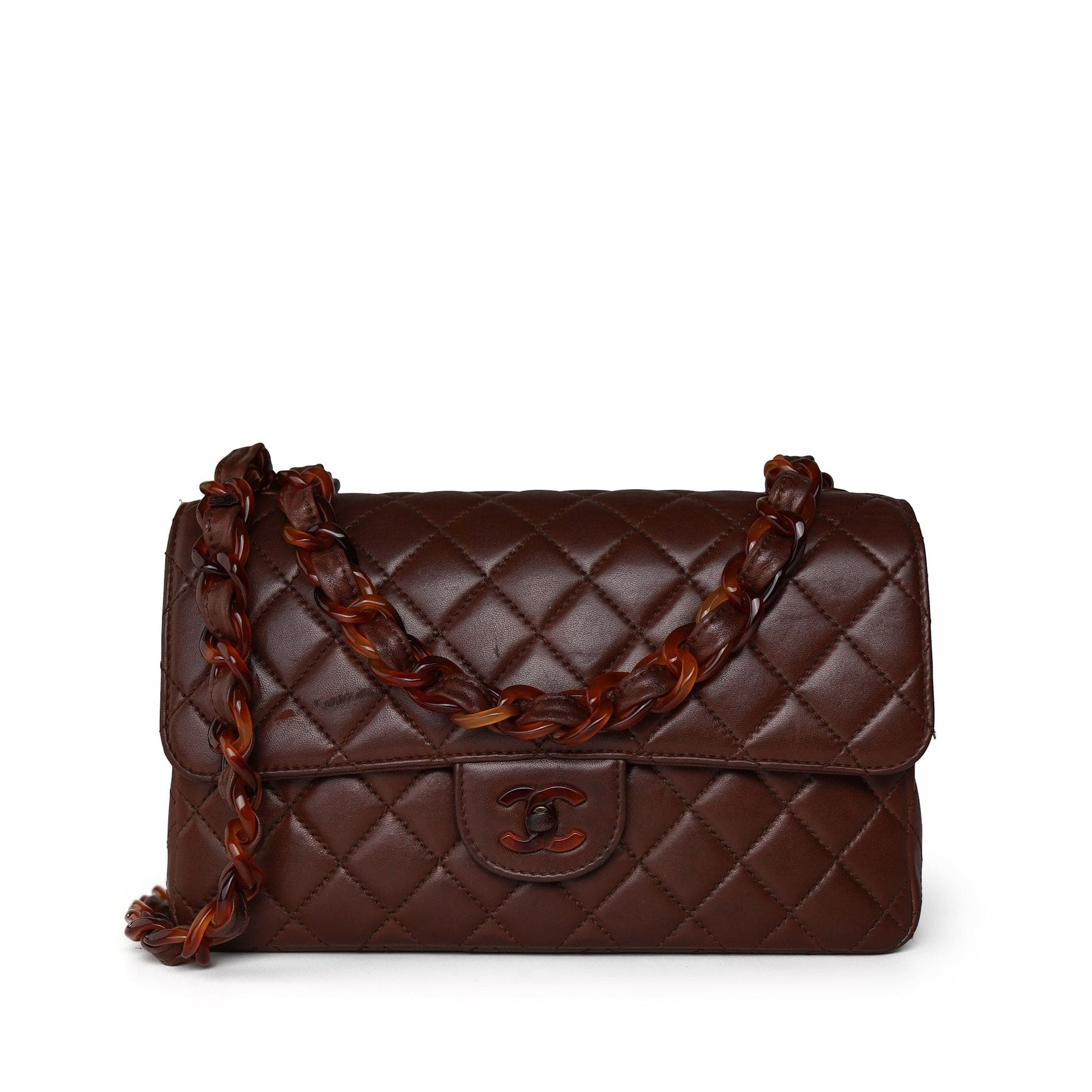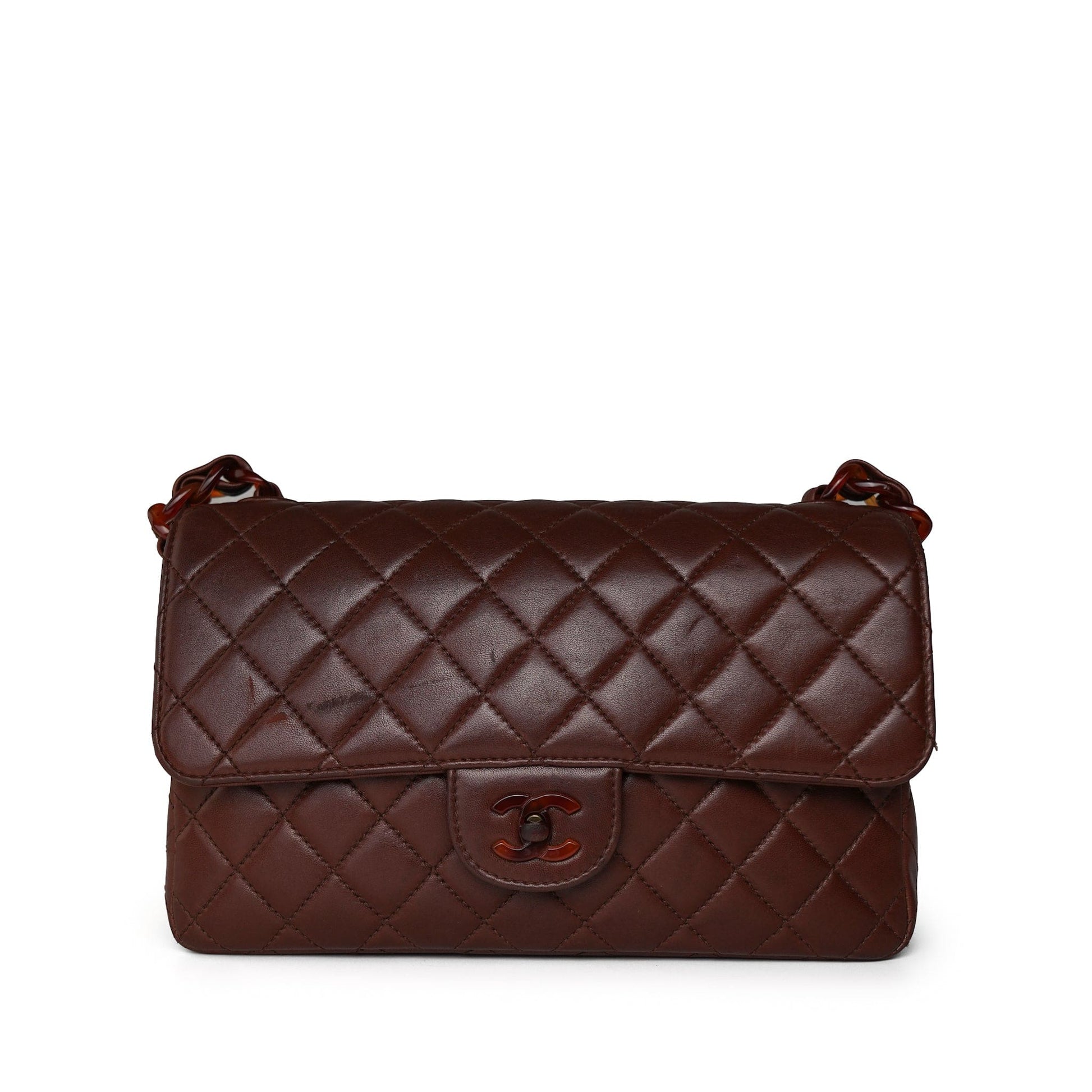 Vintage Brown Lambskin Quilted Single Flap Medium Tortoiseshell Hardware
