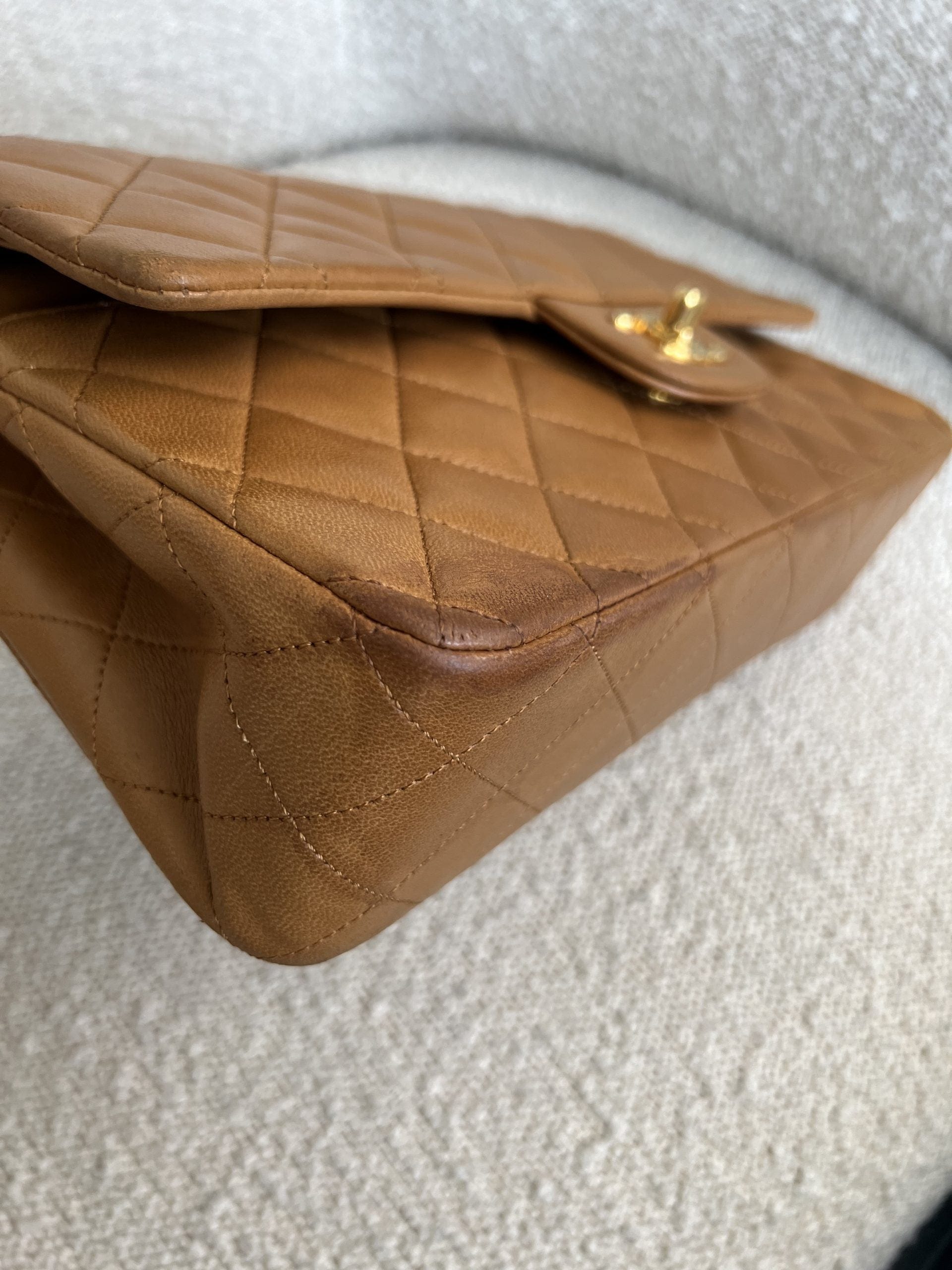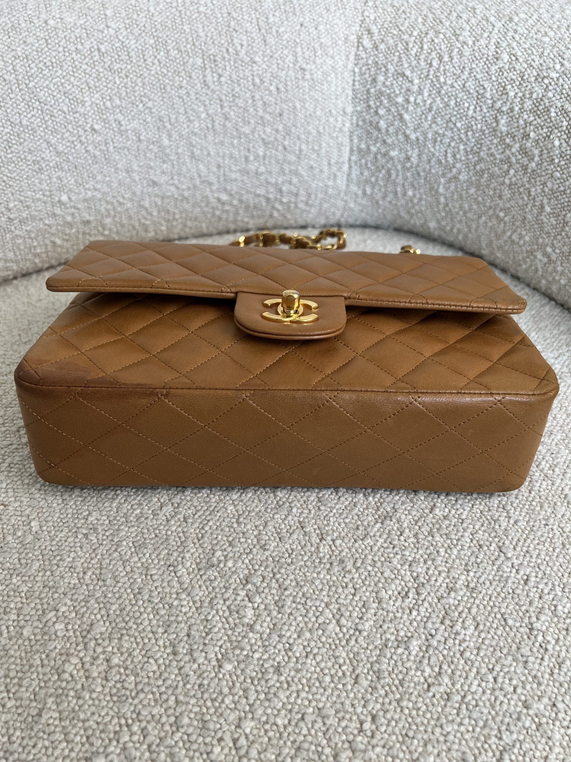 Vintage Caramel Lambskin Quilted Classic Flap Medium GHW
