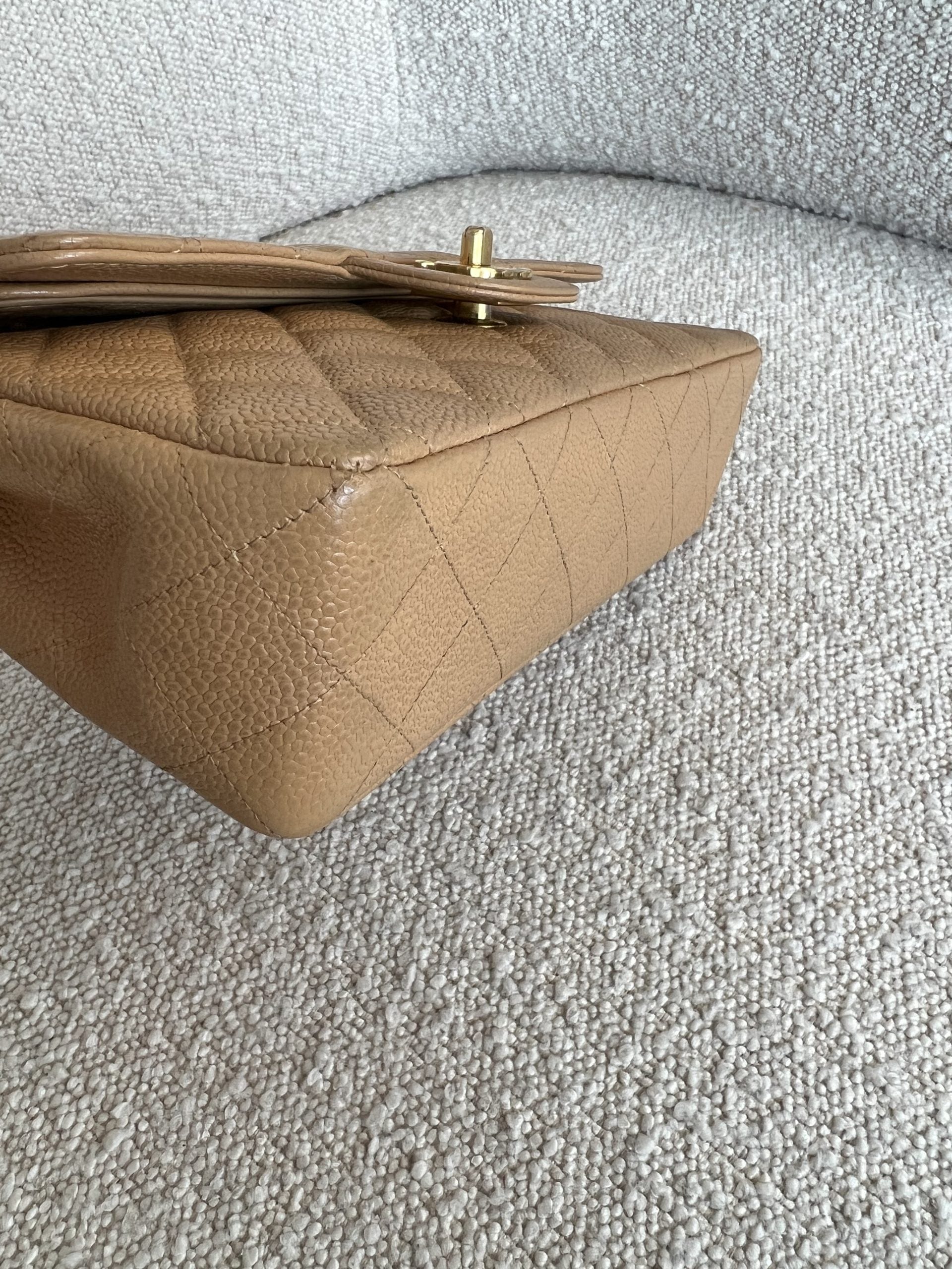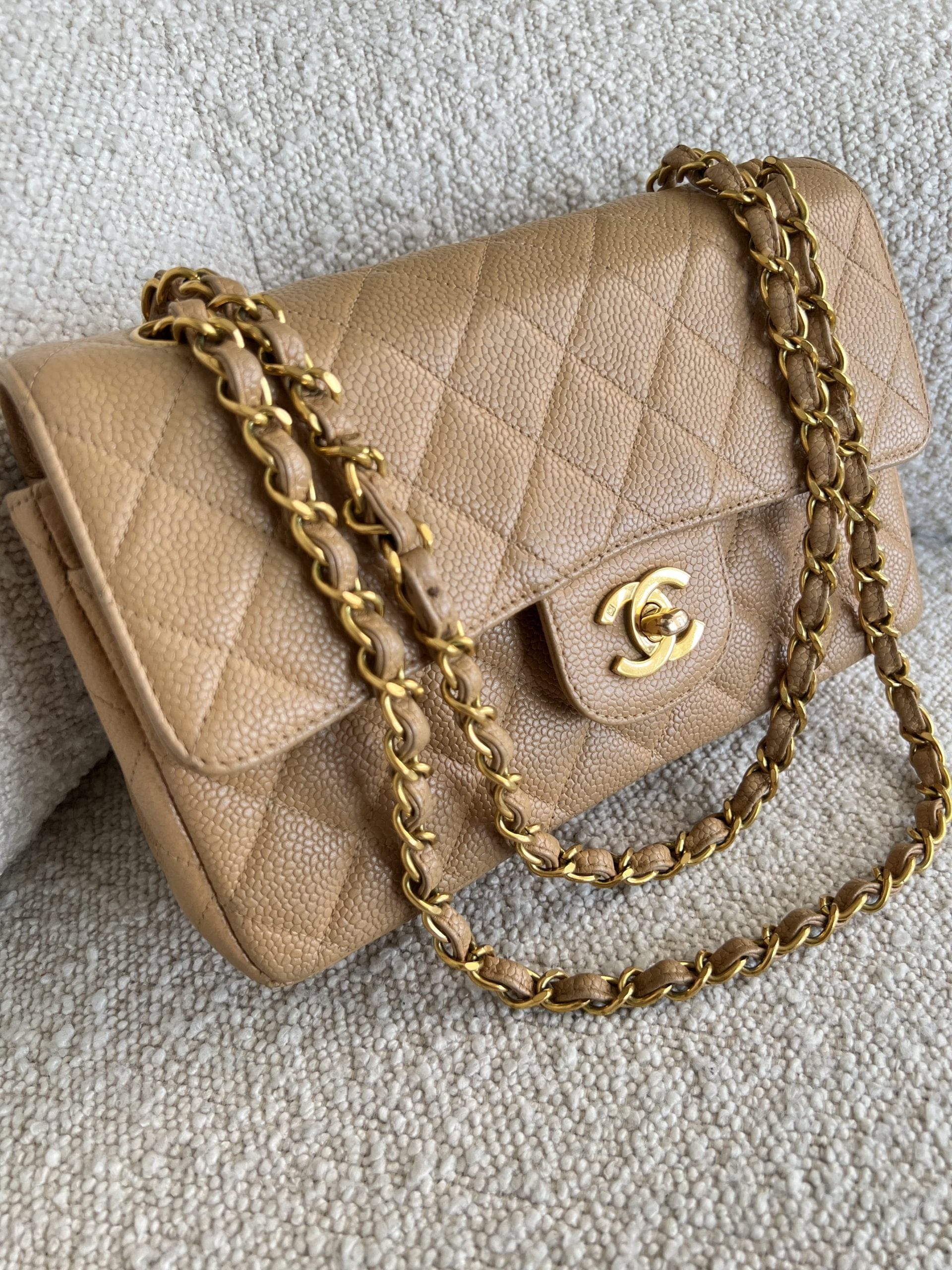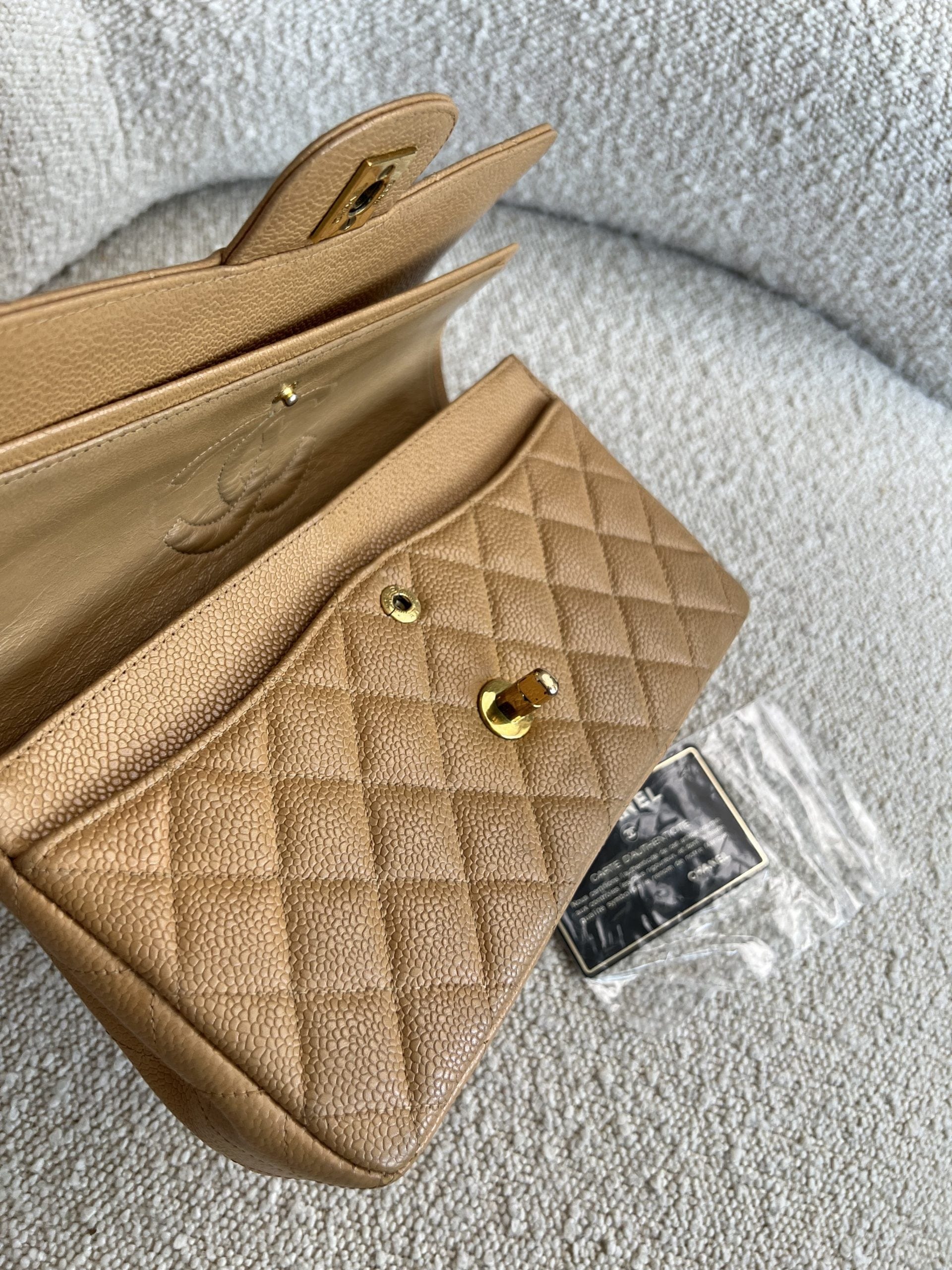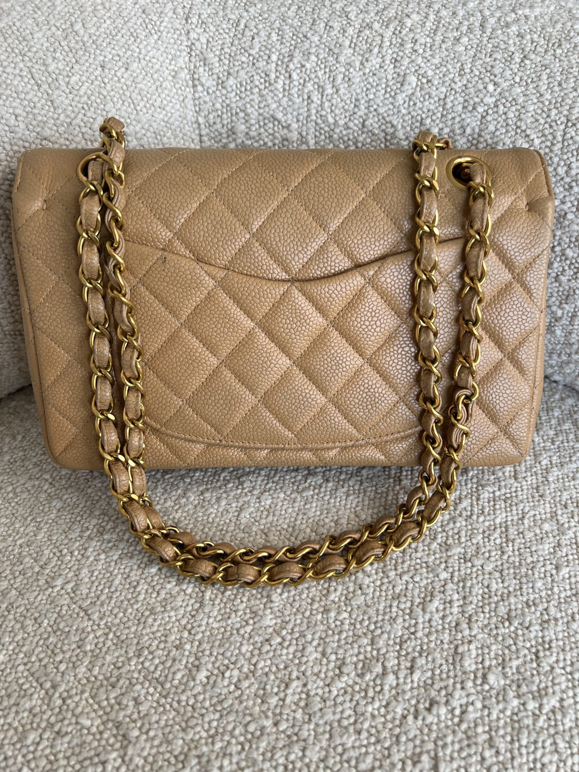 Vintage Dark Beige / Caramel Caviar Classic Flap Small GHW