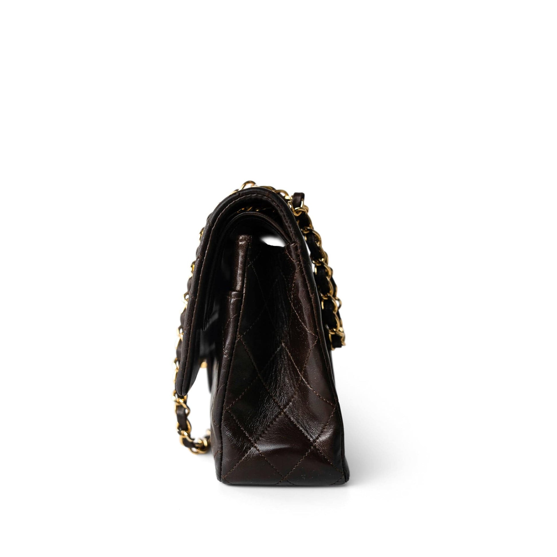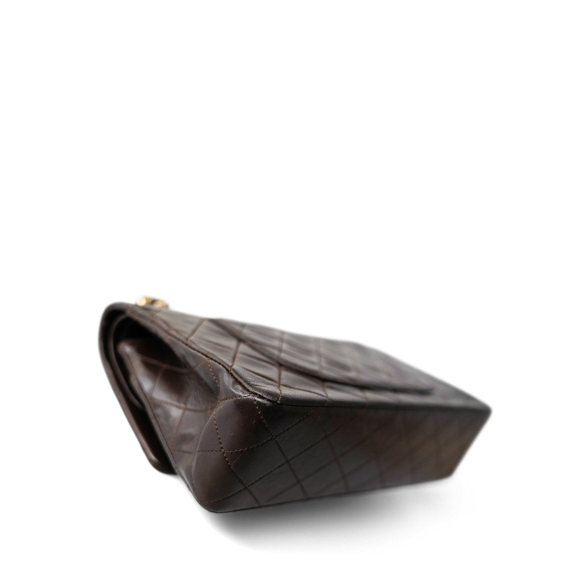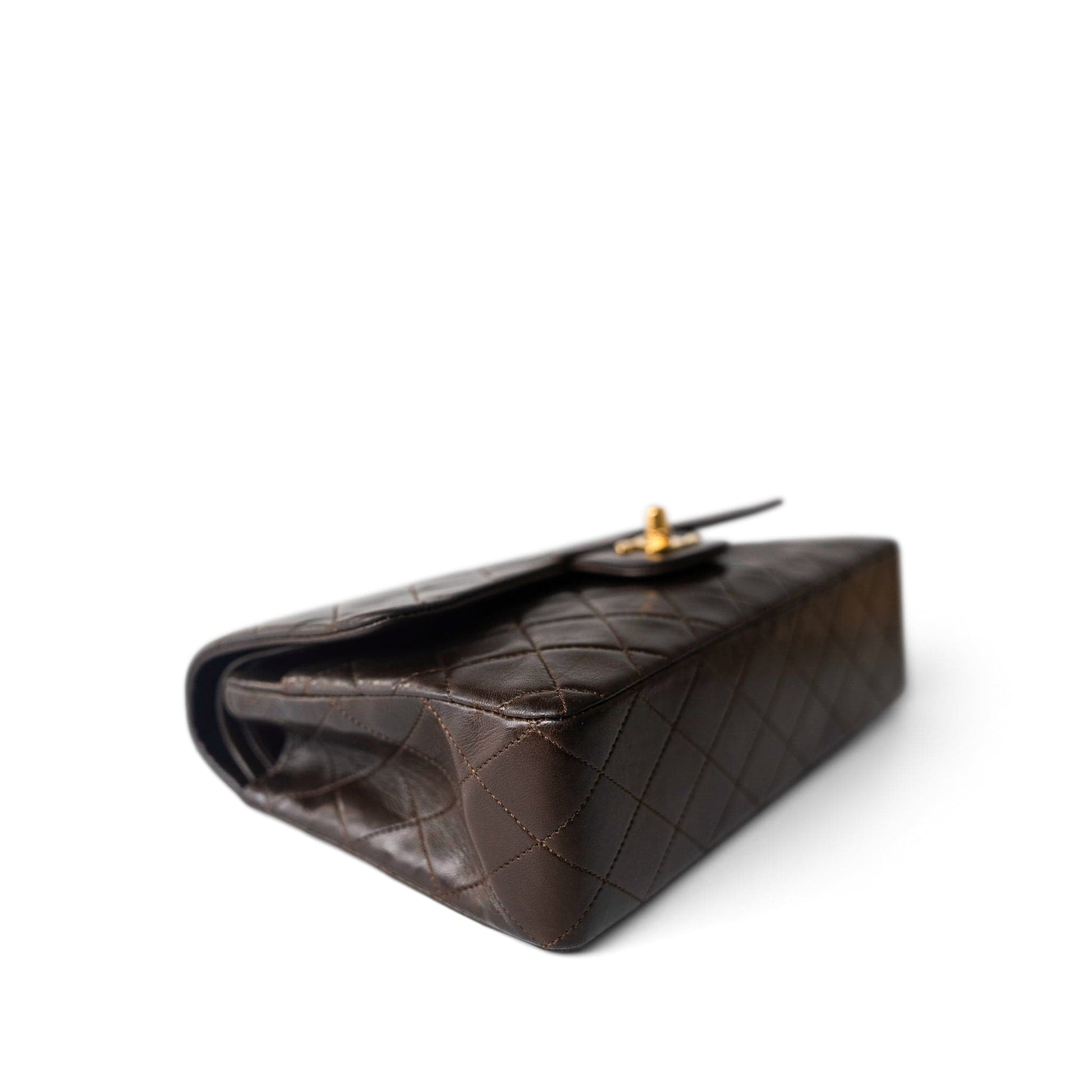 Vintage Dark Brown Lambskin Quilted Classic Flap Medium Gold Hardware