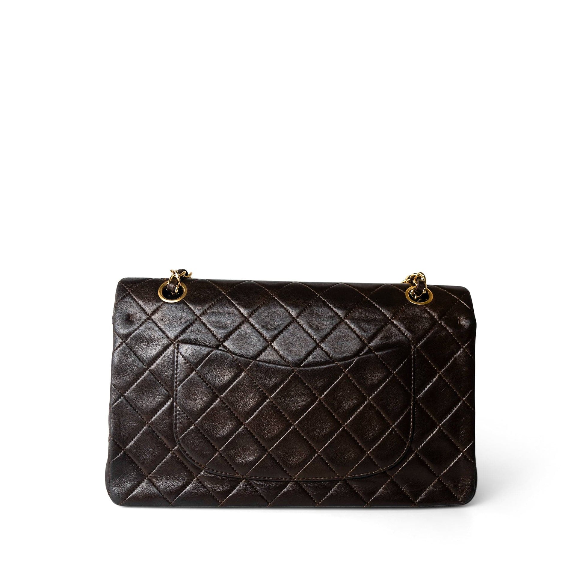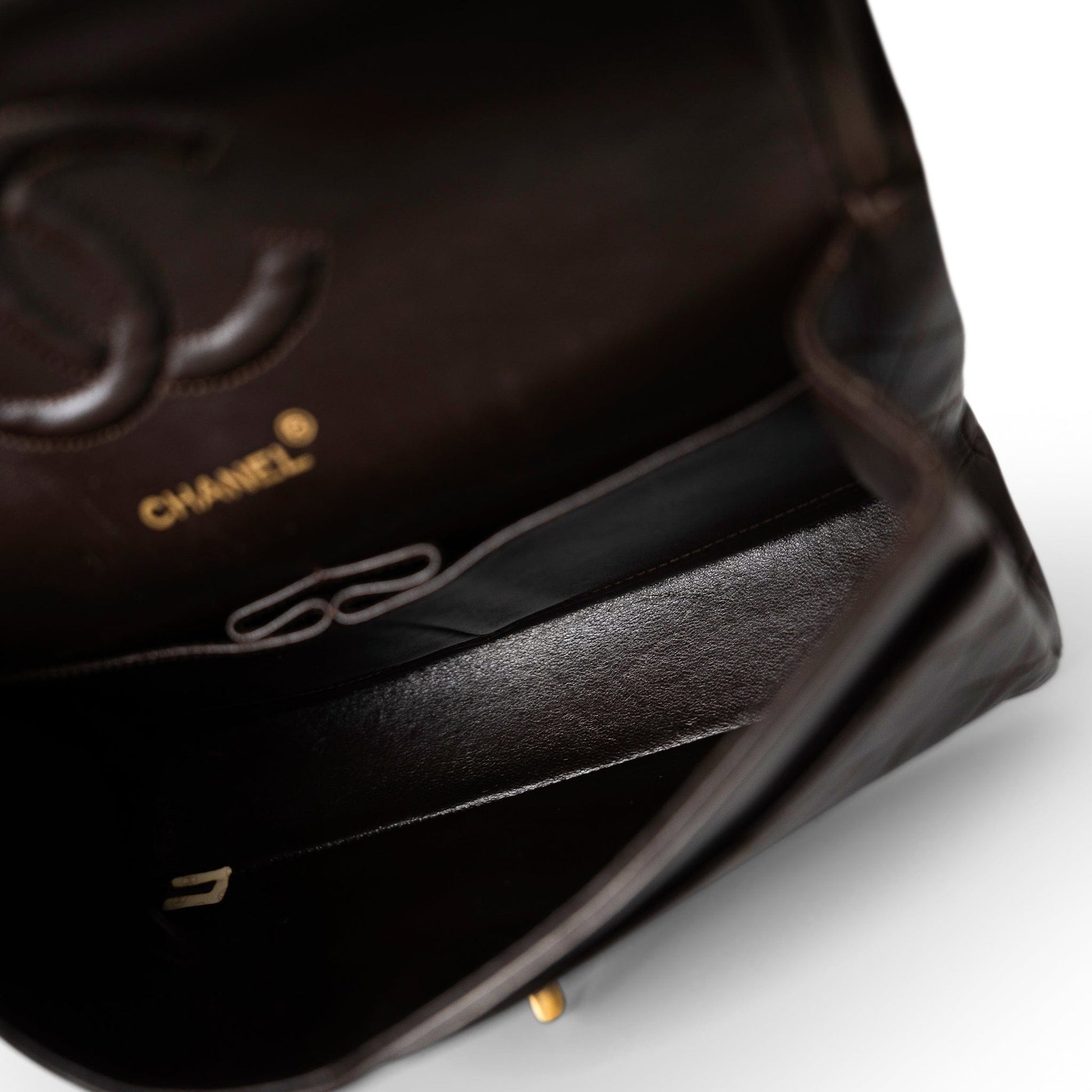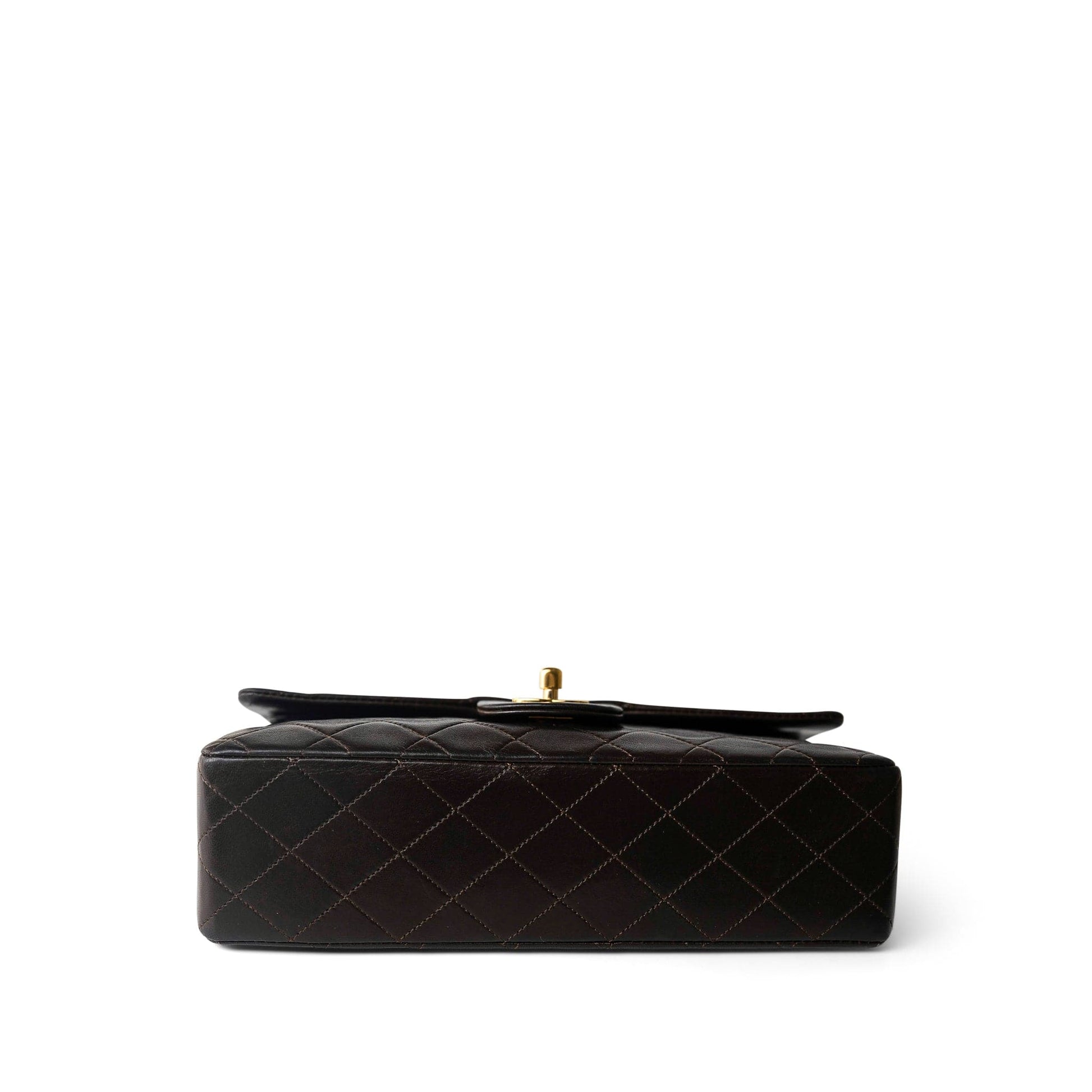 Vintage Dark Brown Lambskin Quilted Classic Flap Medium Gold Hardware