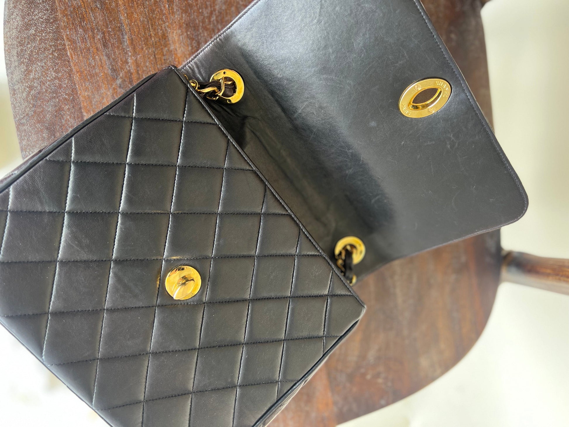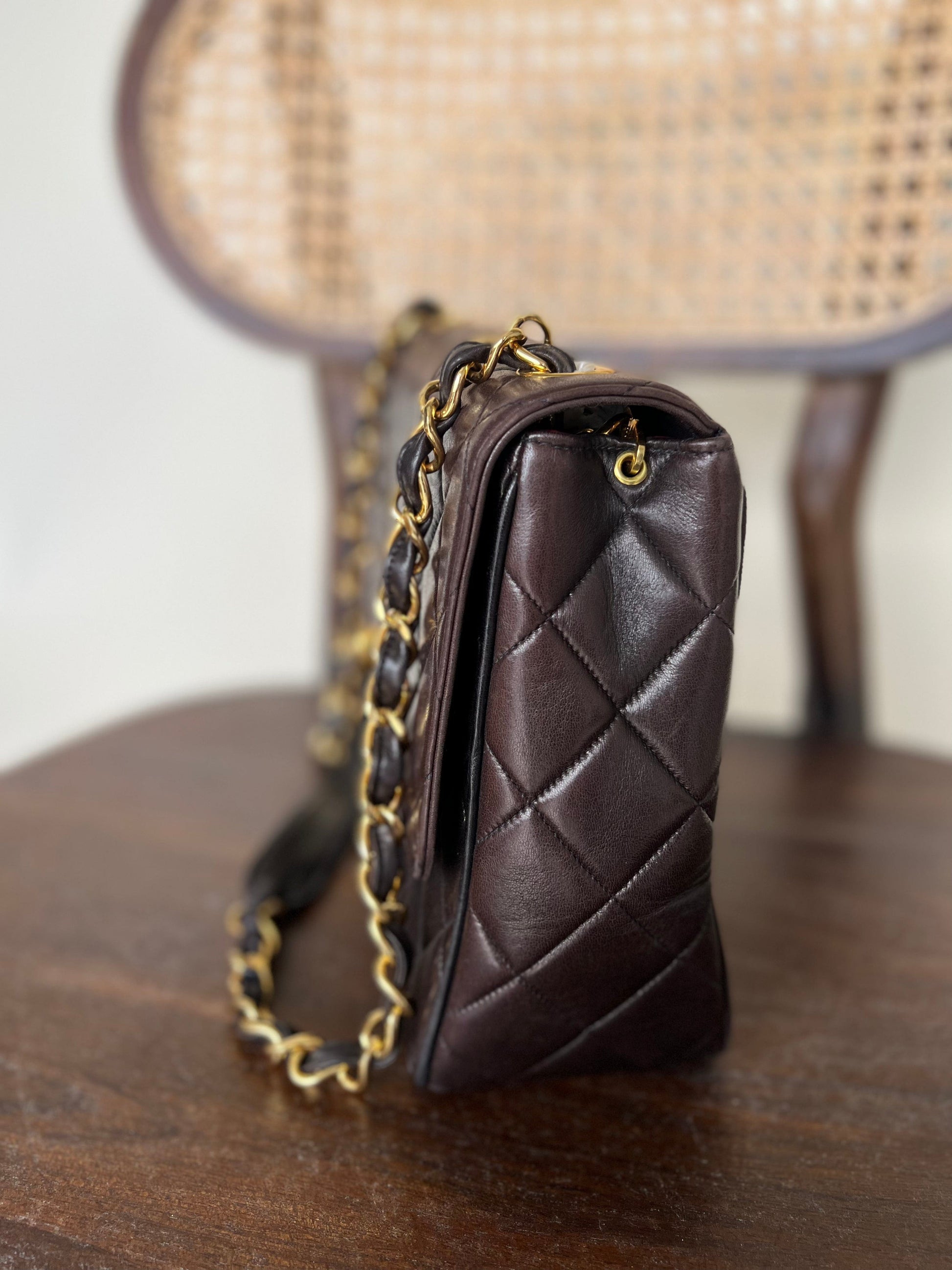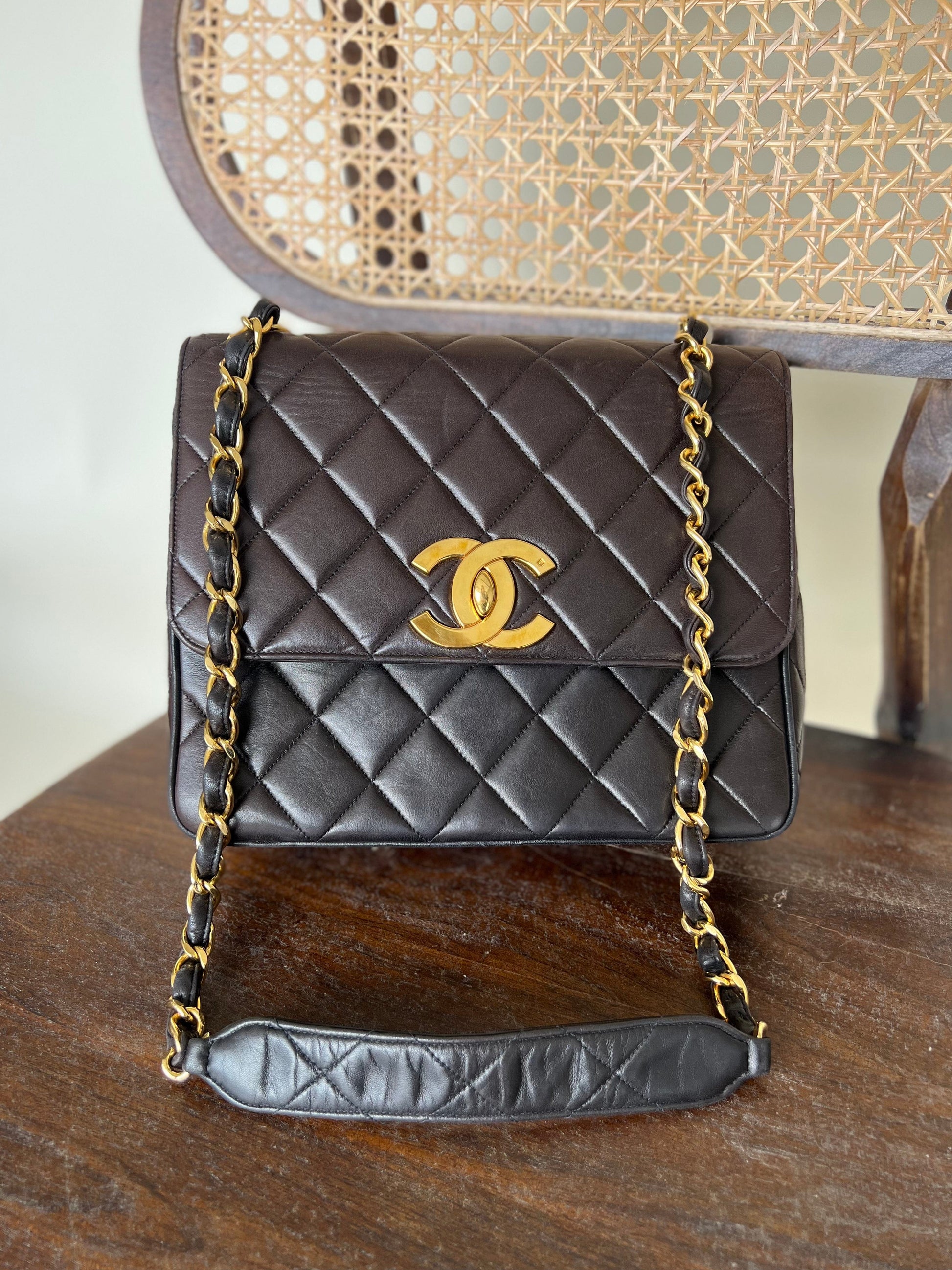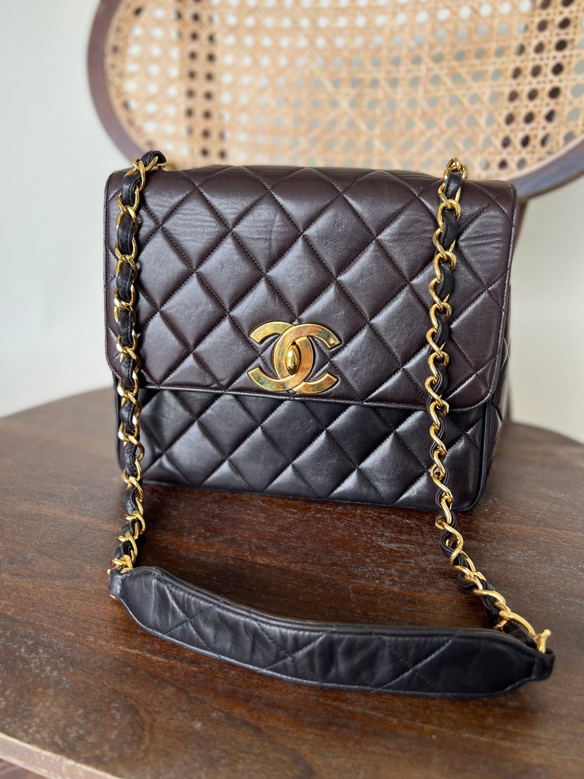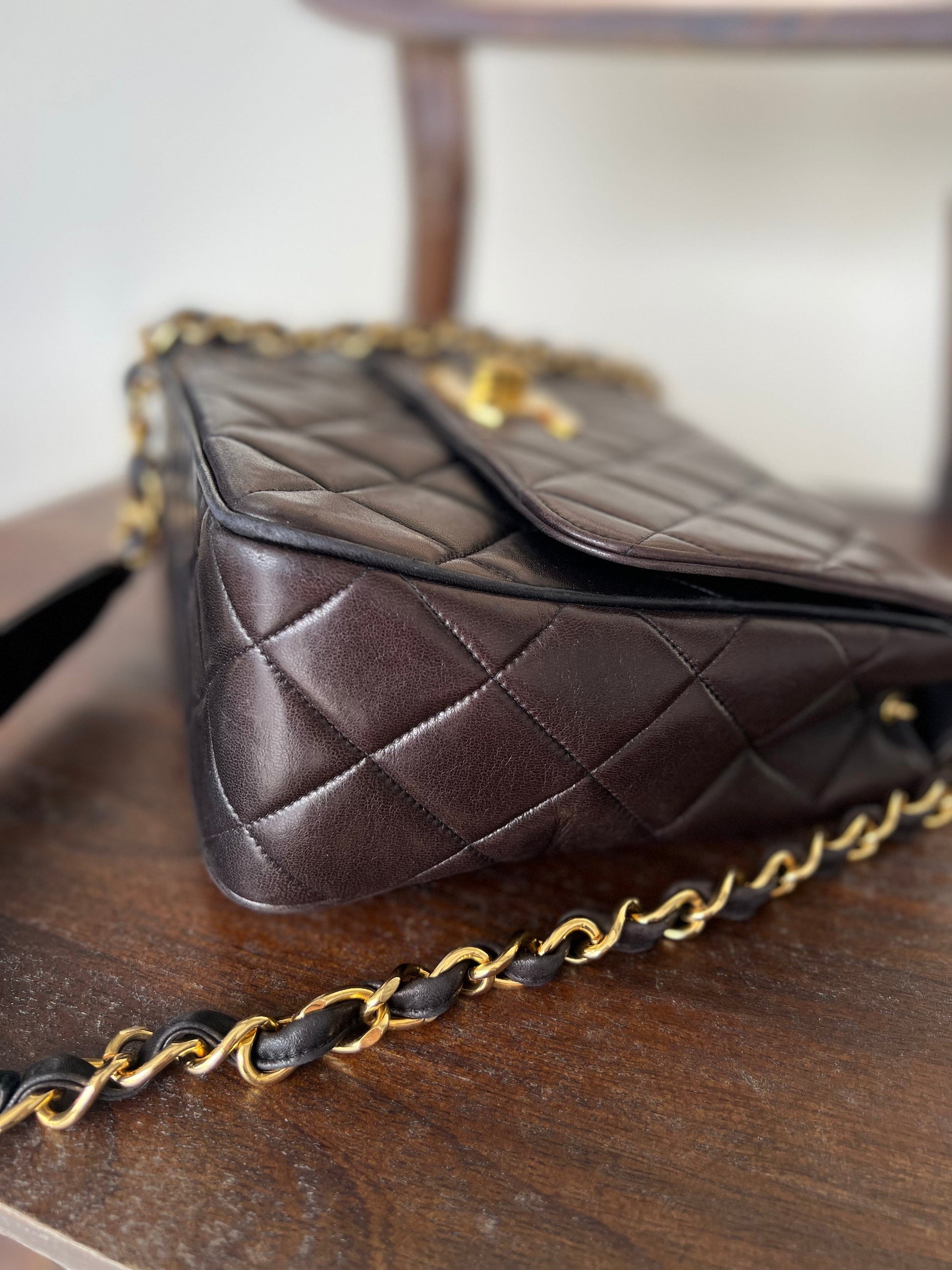 Vintage Black / Dark Brown Lambskin Quilted Square CC Flap GHW