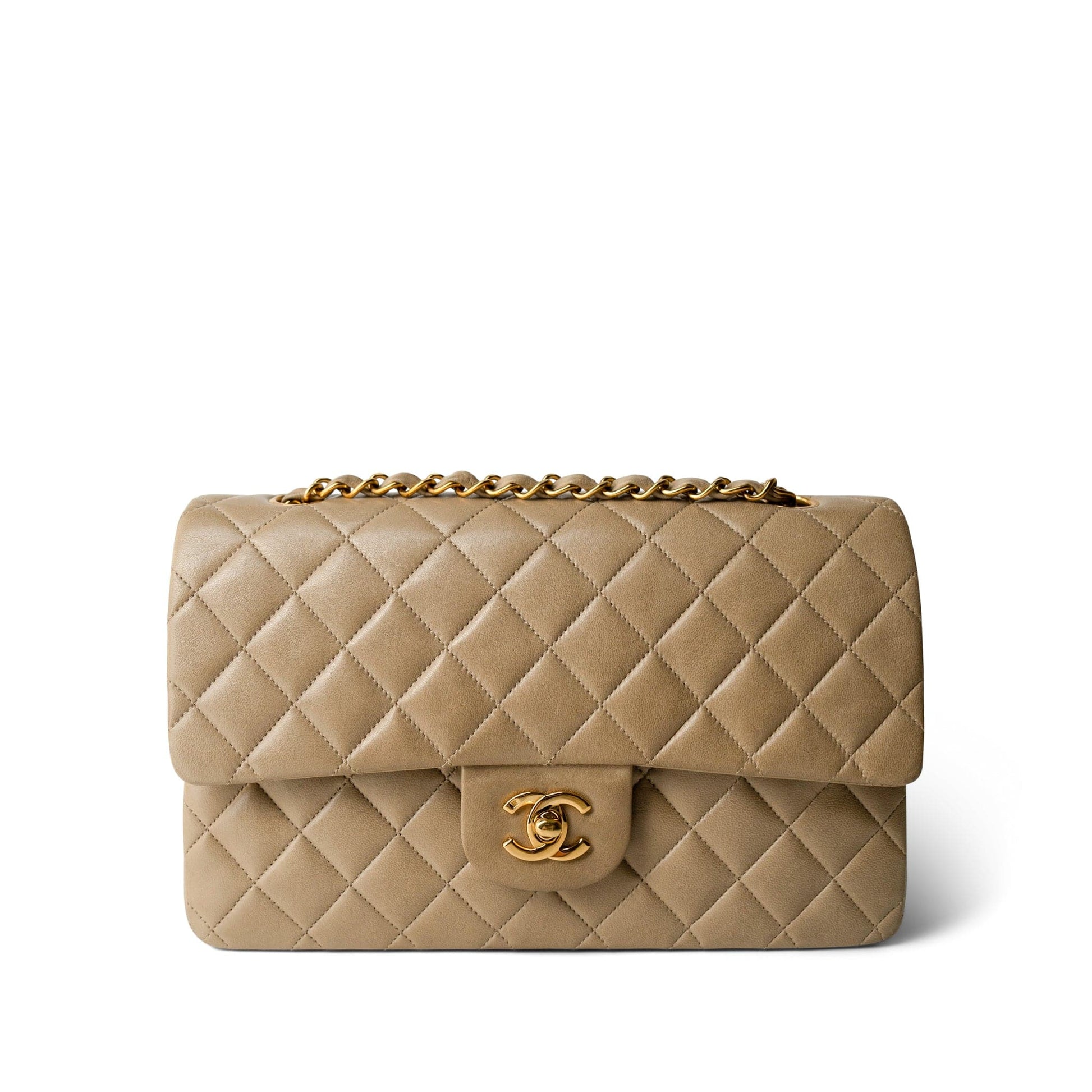 Vintage Dark Beige Classic Flap Medium Gold Hardware