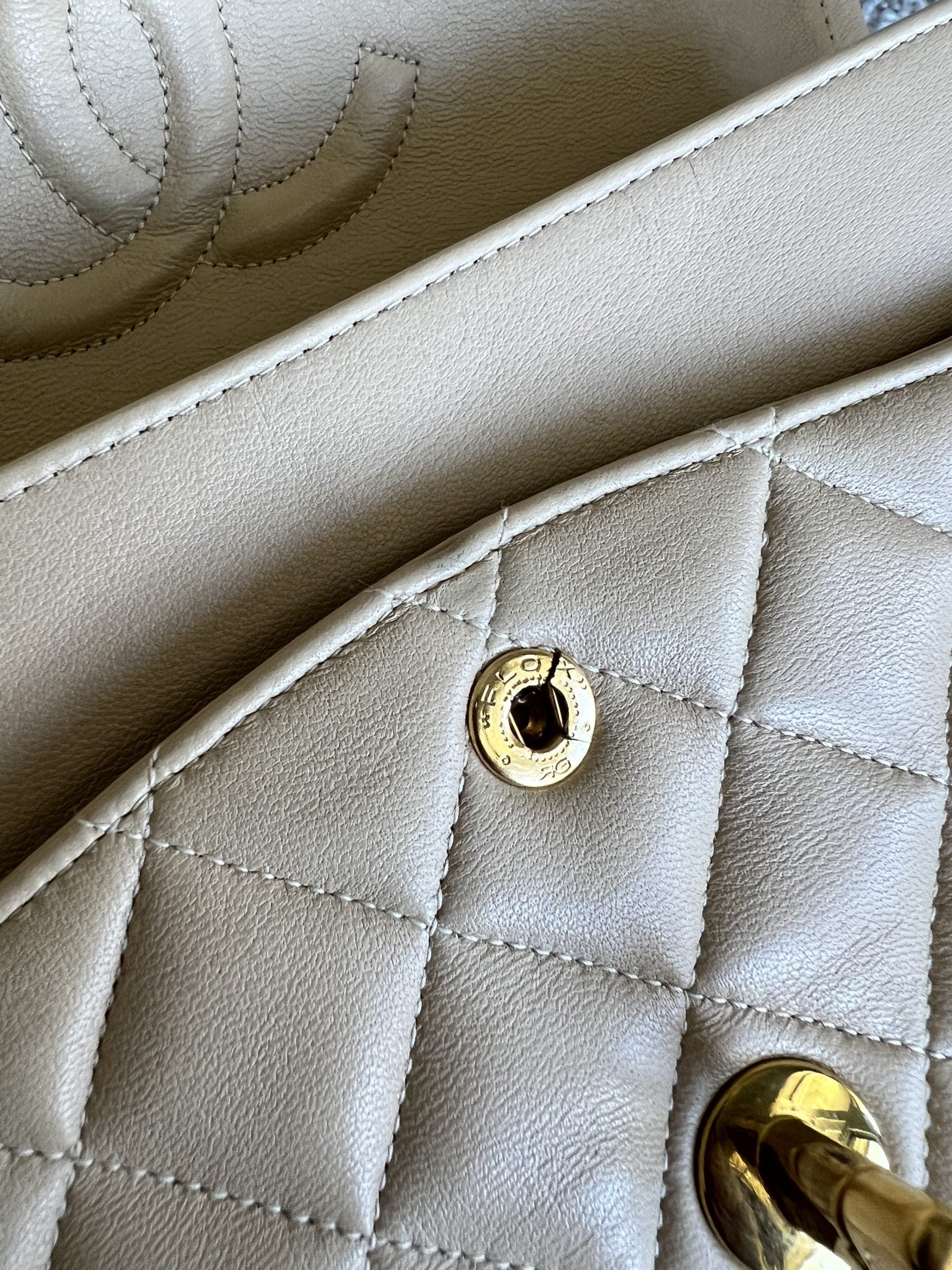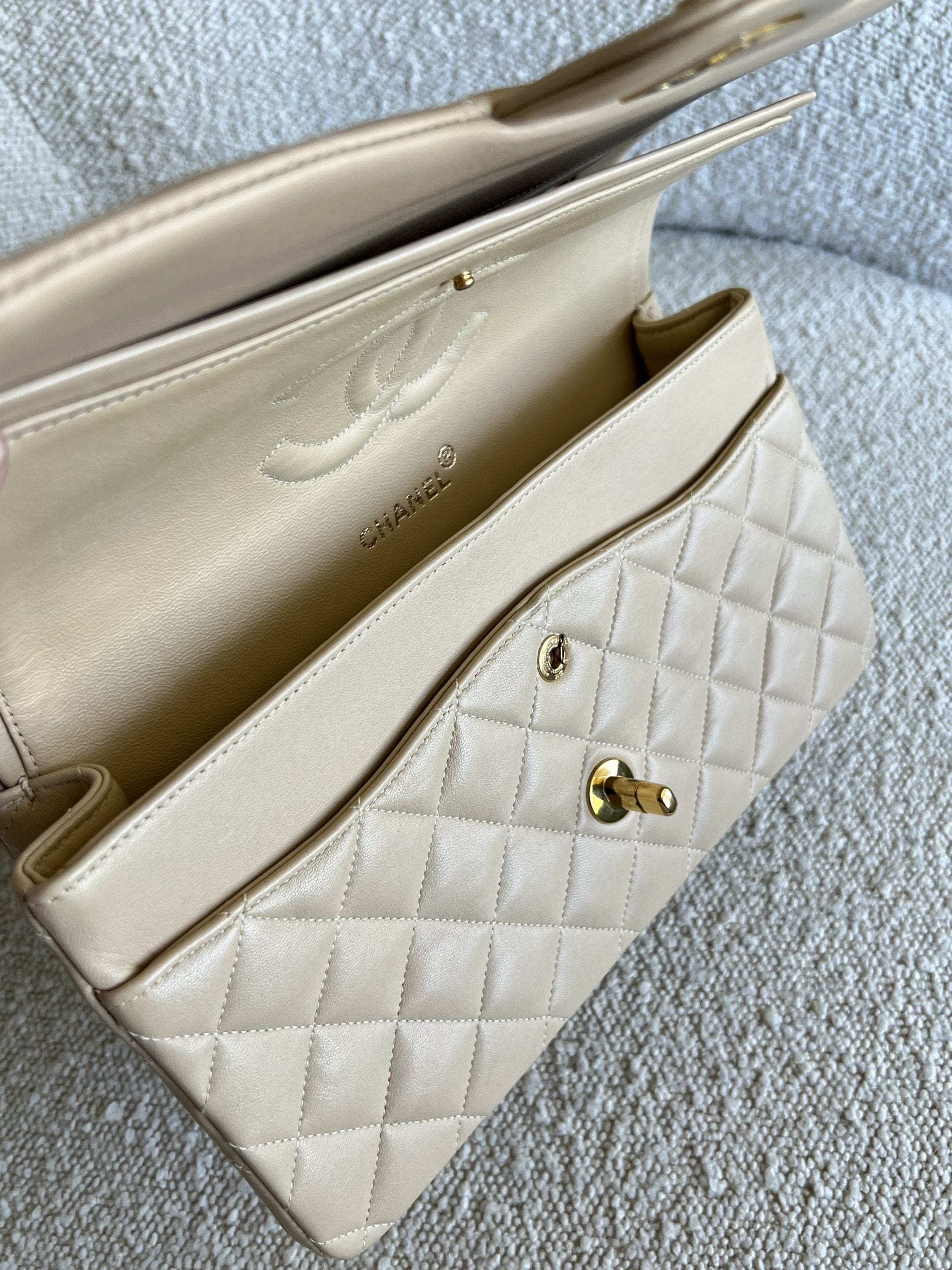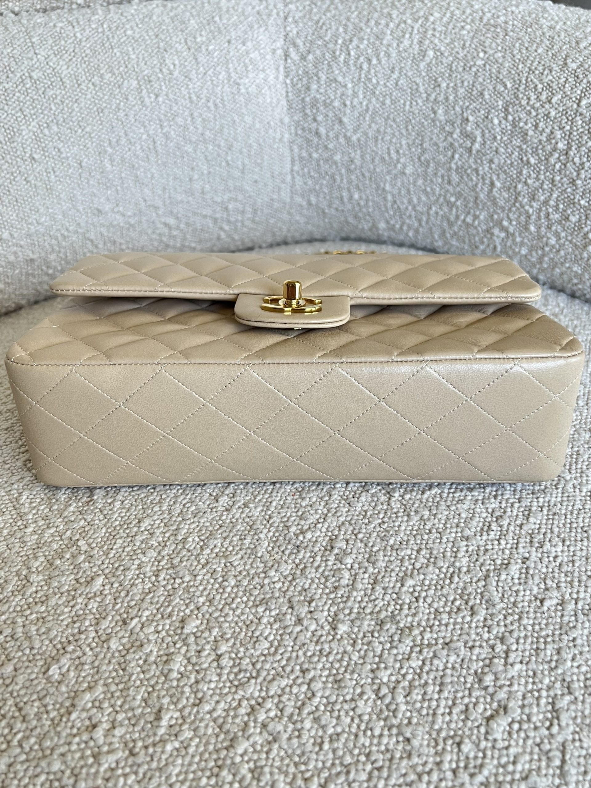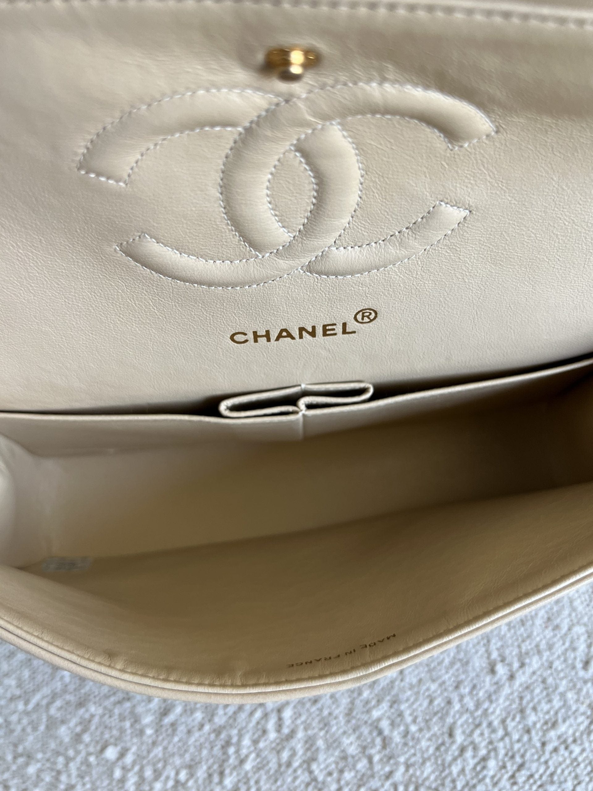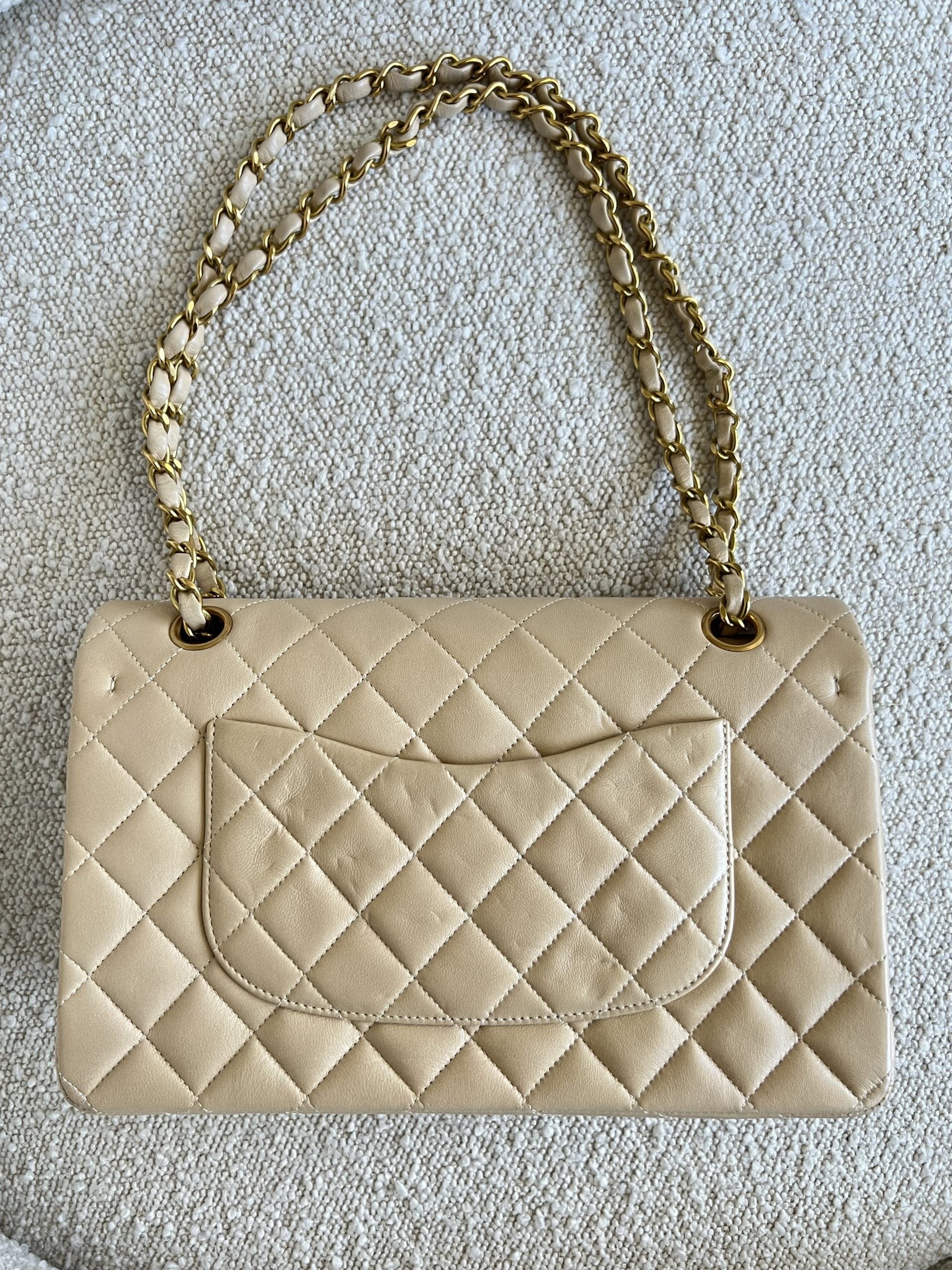 Vintage Light Beige Lambskin Quilted Classic Flap Medium GHW