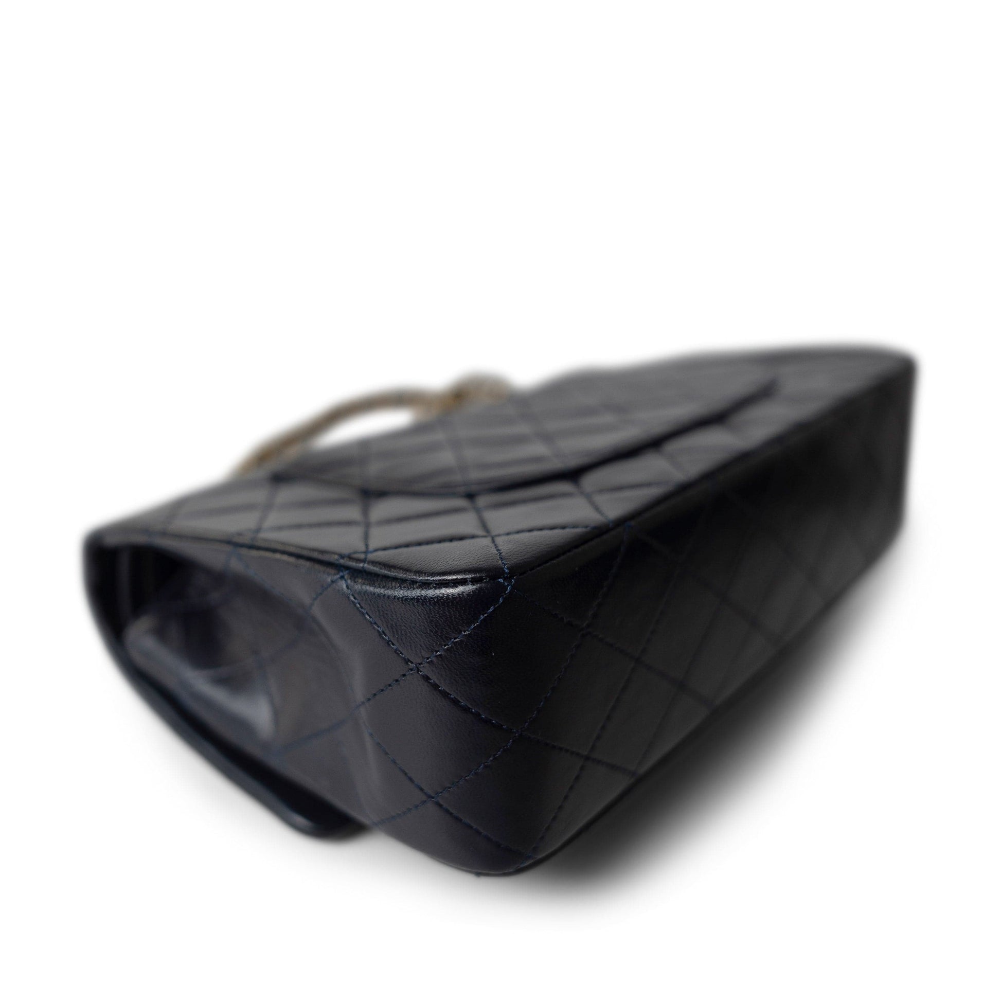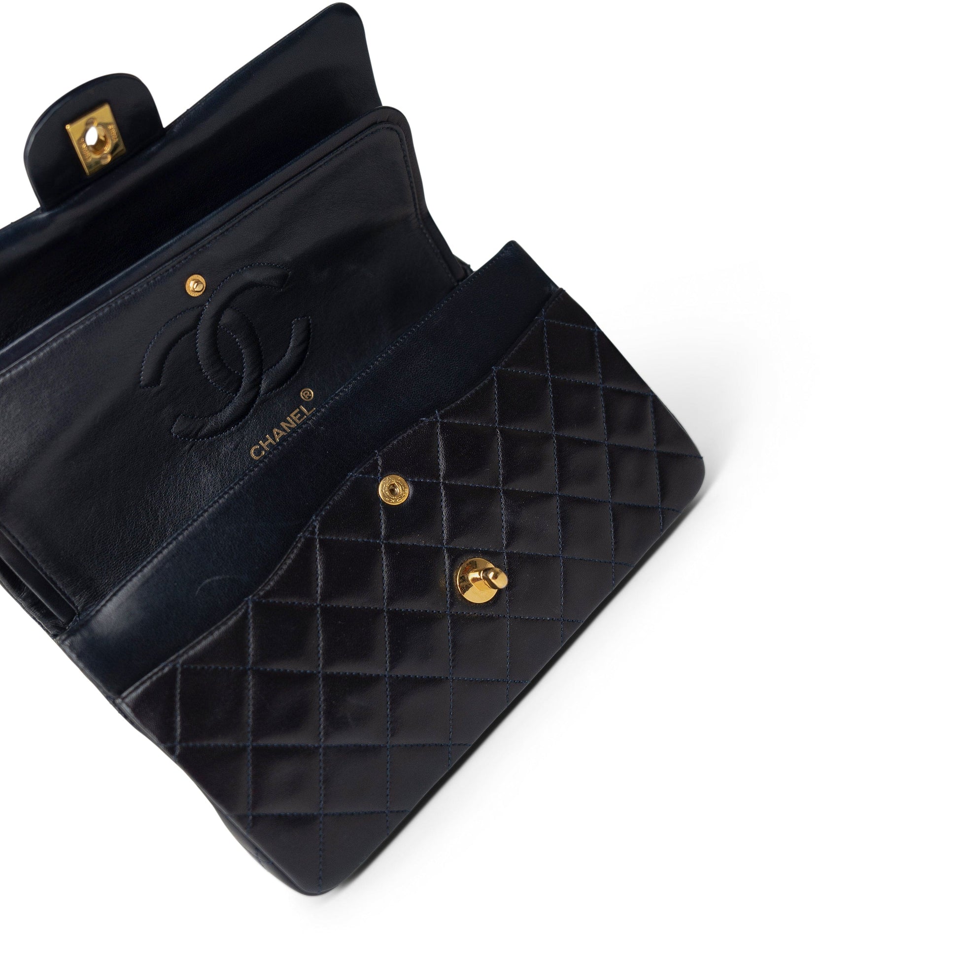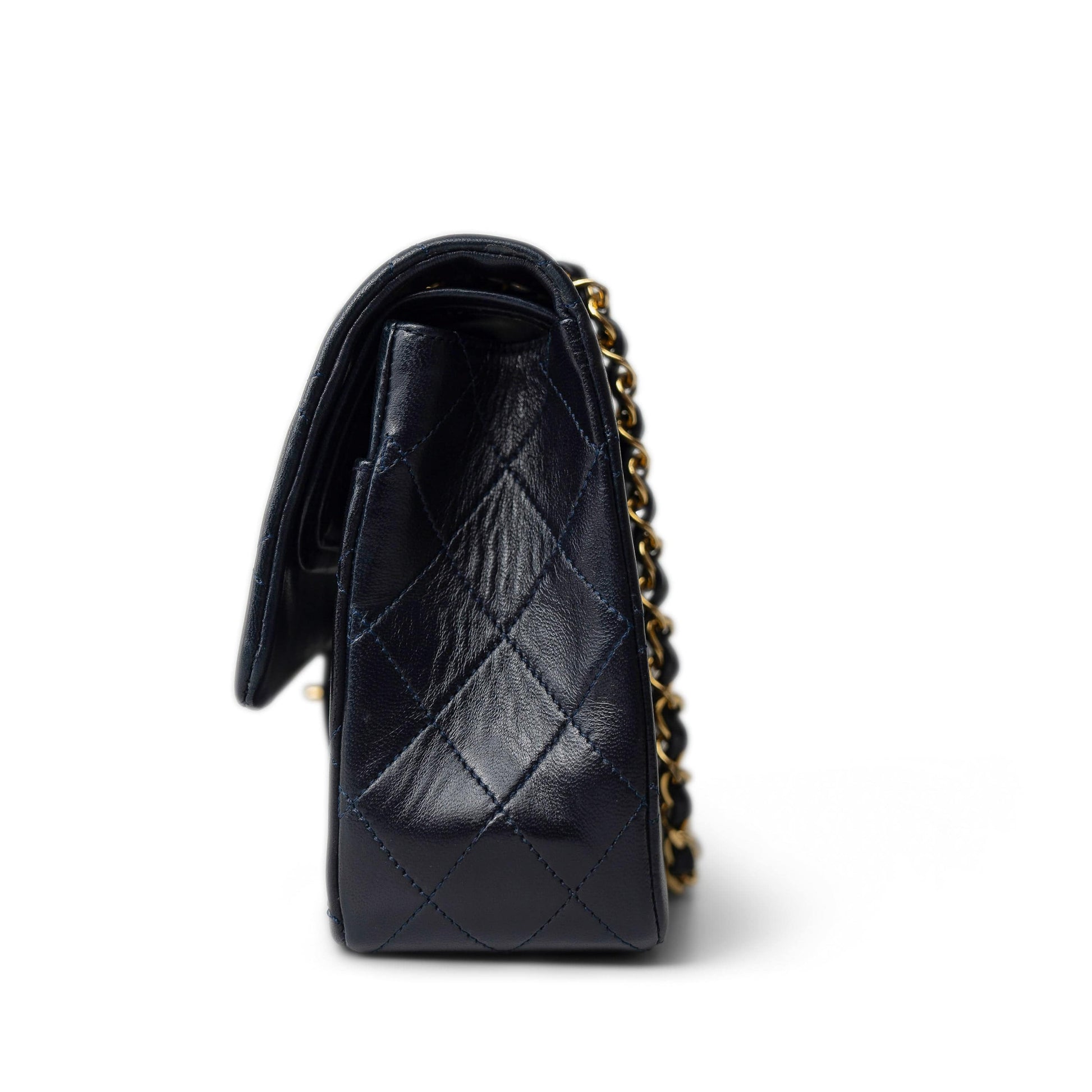 Vintage Navy Lambskin Quilted Classic Flap Medium Gold Hardware