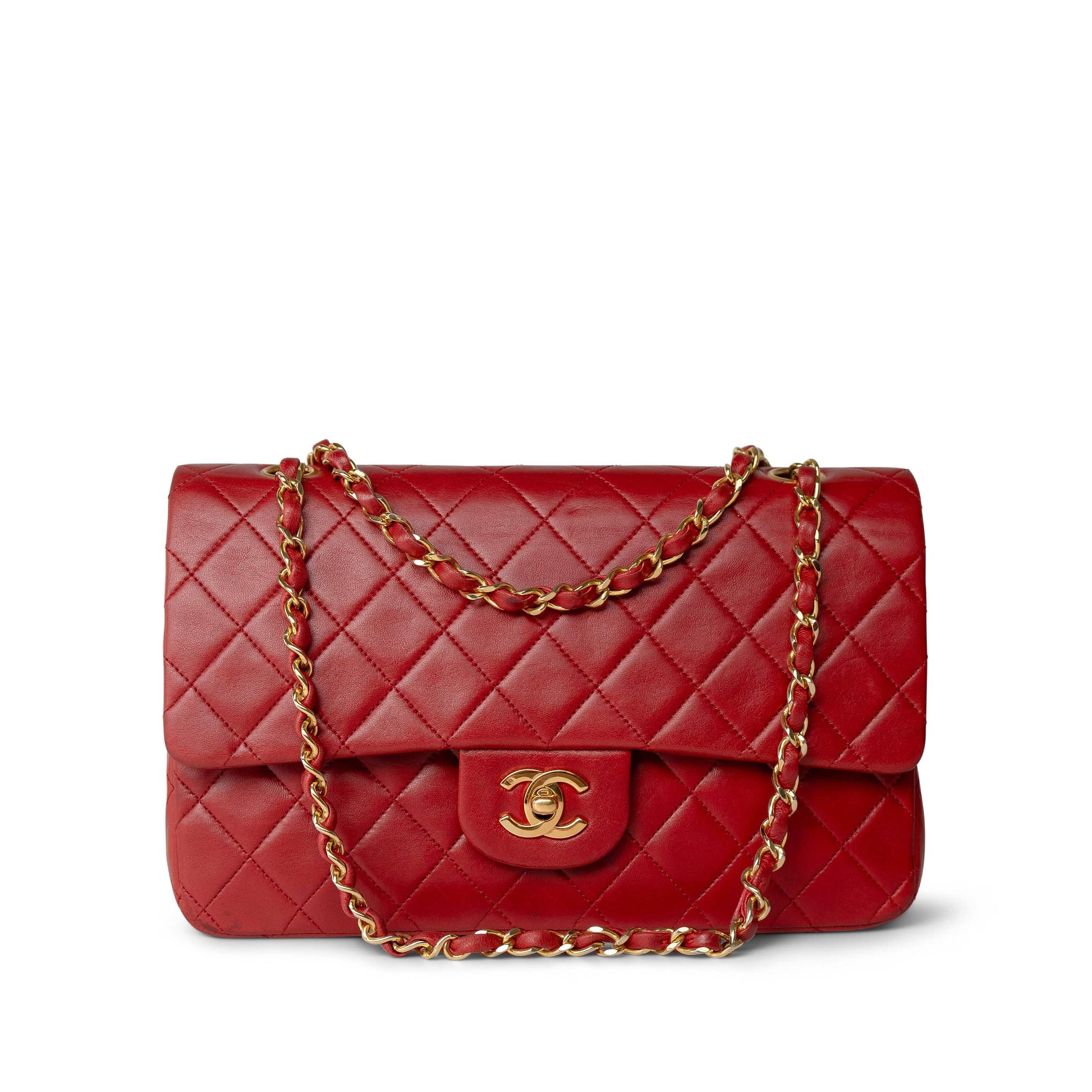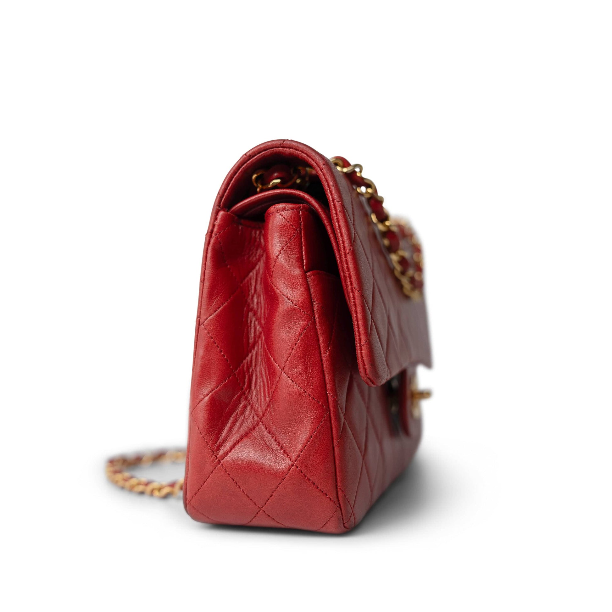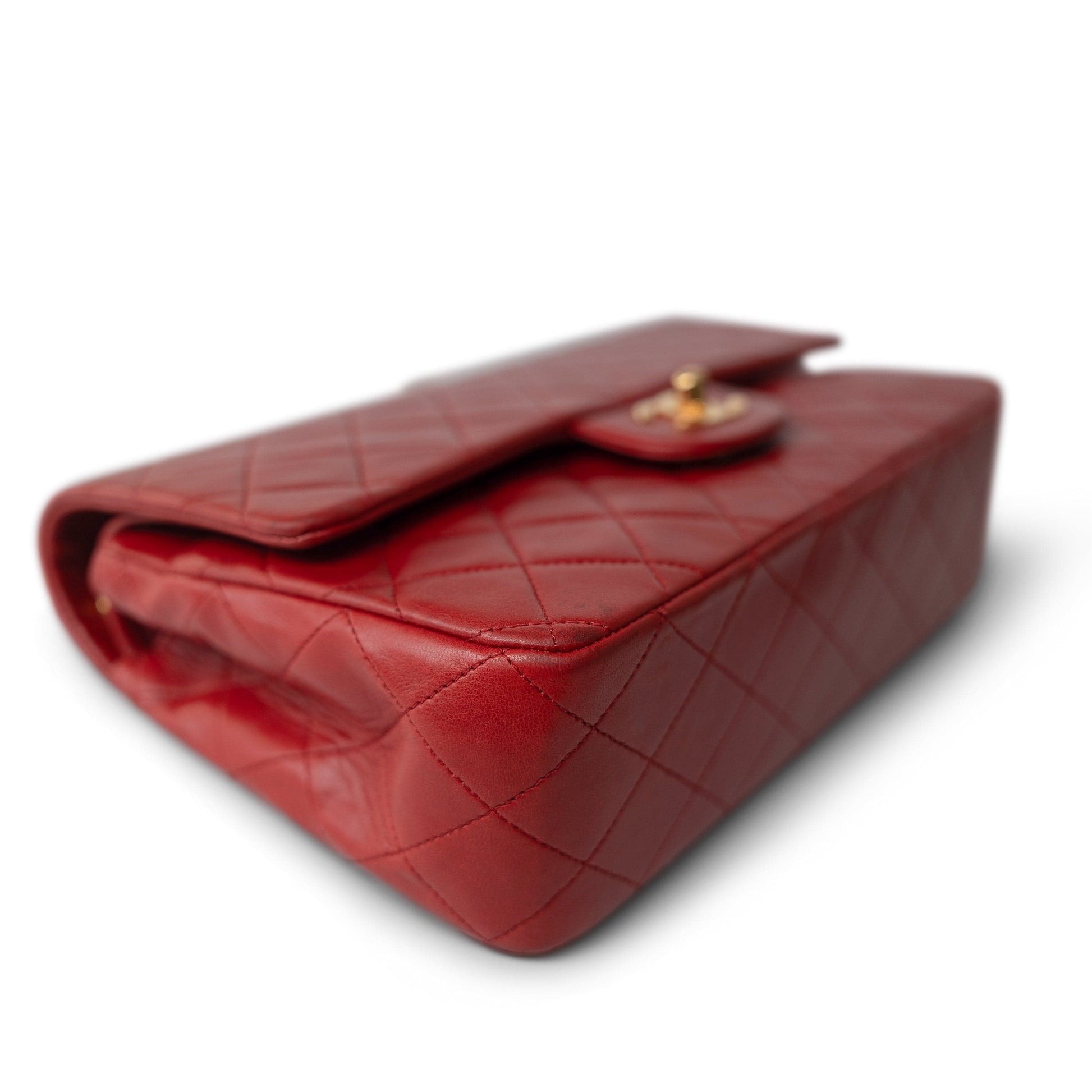 Vintage Red Lambskin Quilted Medium Classic Flap Gold Hardware