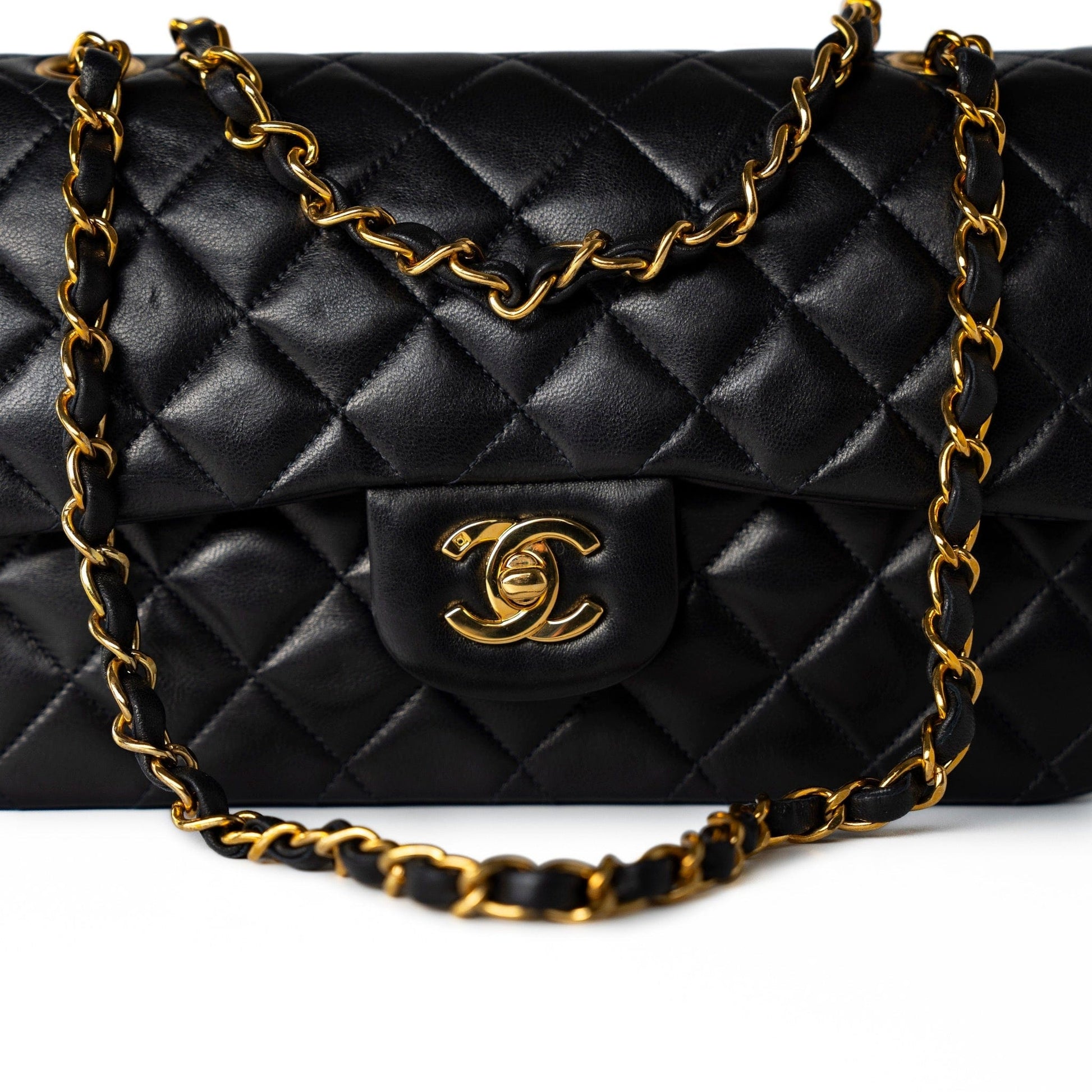 Vintage Small Black Lambskin Quilted Classic Flap Small GHW