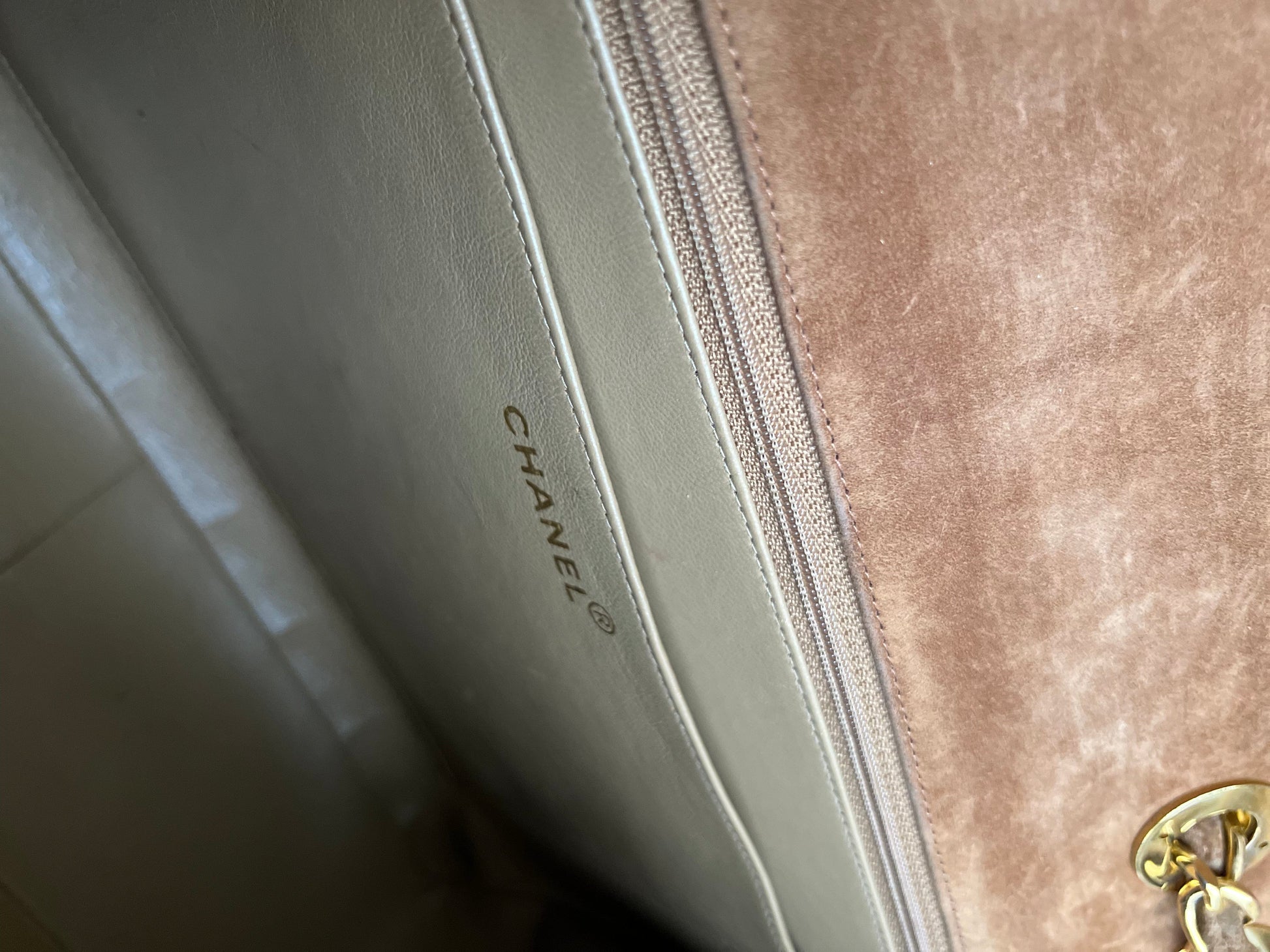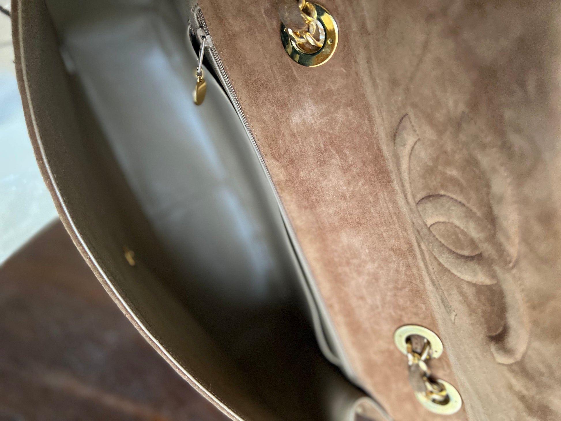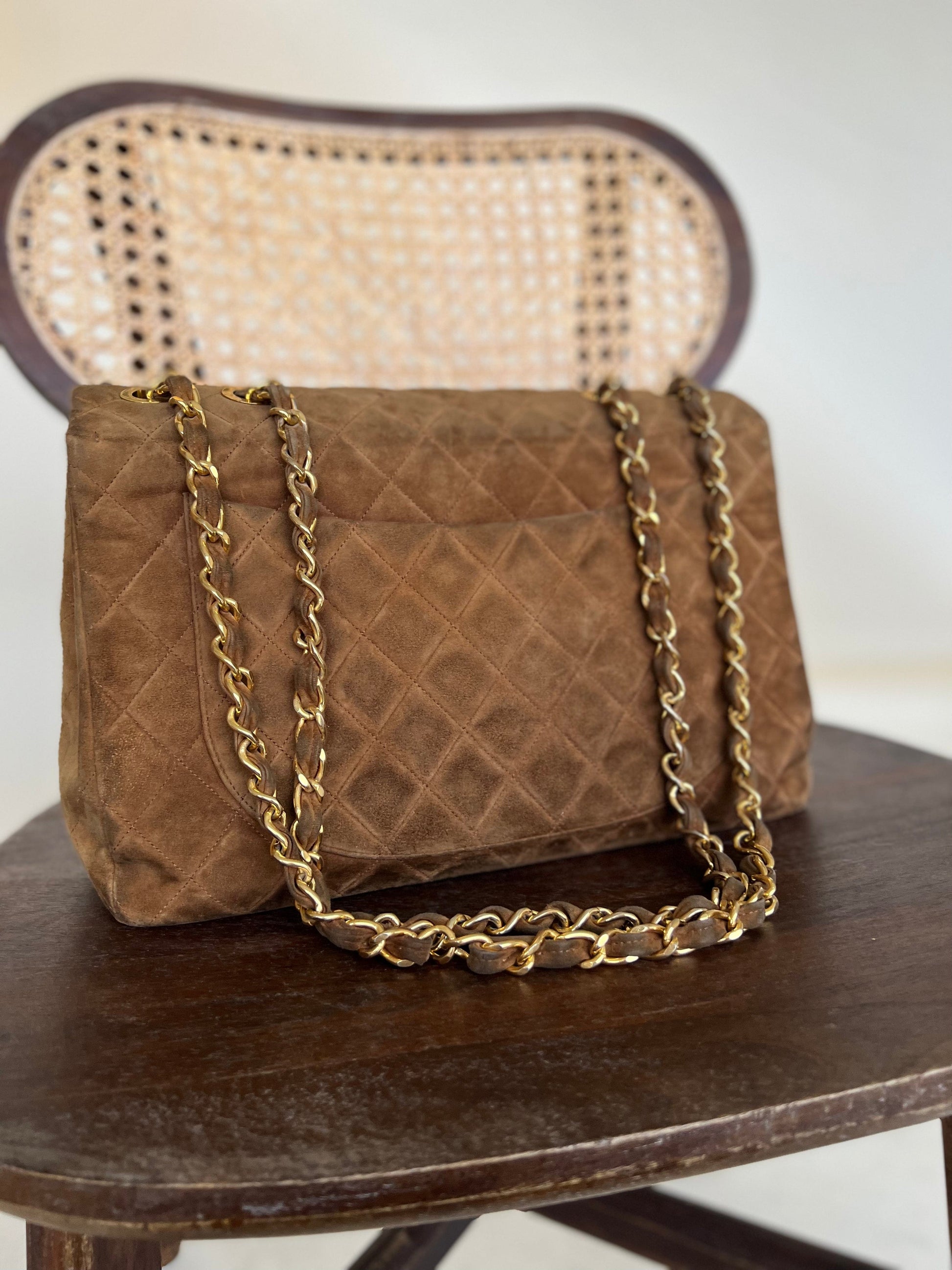 Vintage Tan/Brown Suede Quilted Jumbo XL Single Flap 24k GHW