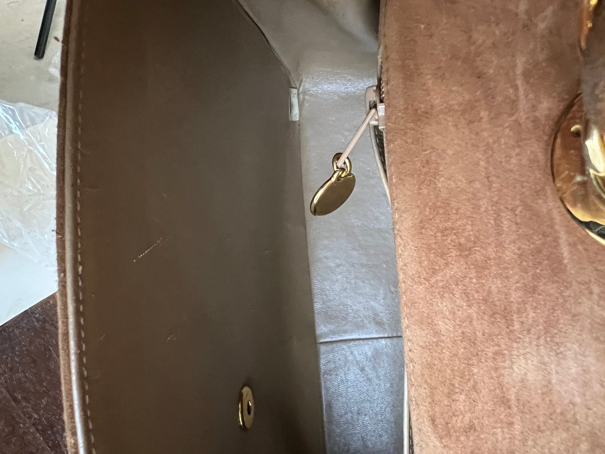 Condition Details: Some mild scratching on Hardware. Signs of wear along the corners/edges and chain. Interior hardware missing one screw.