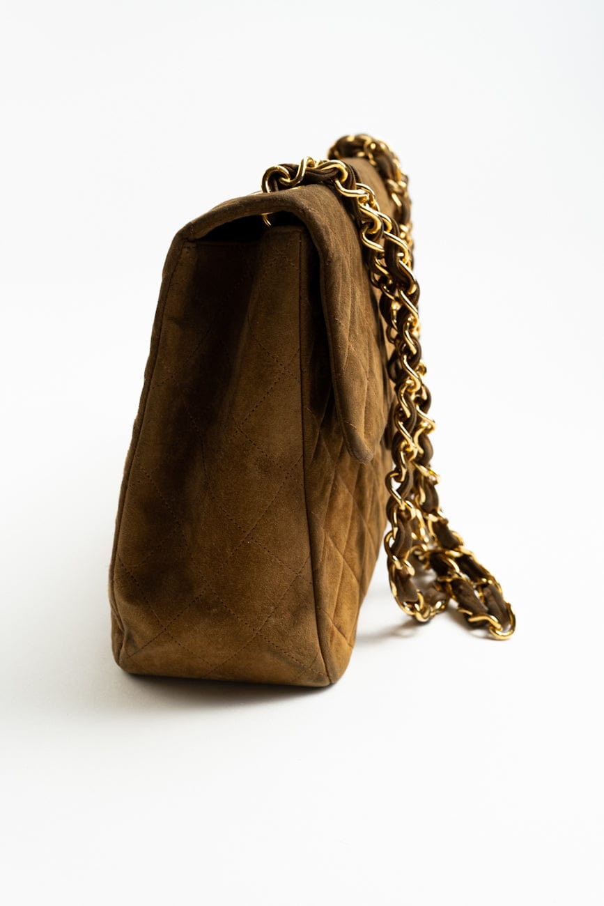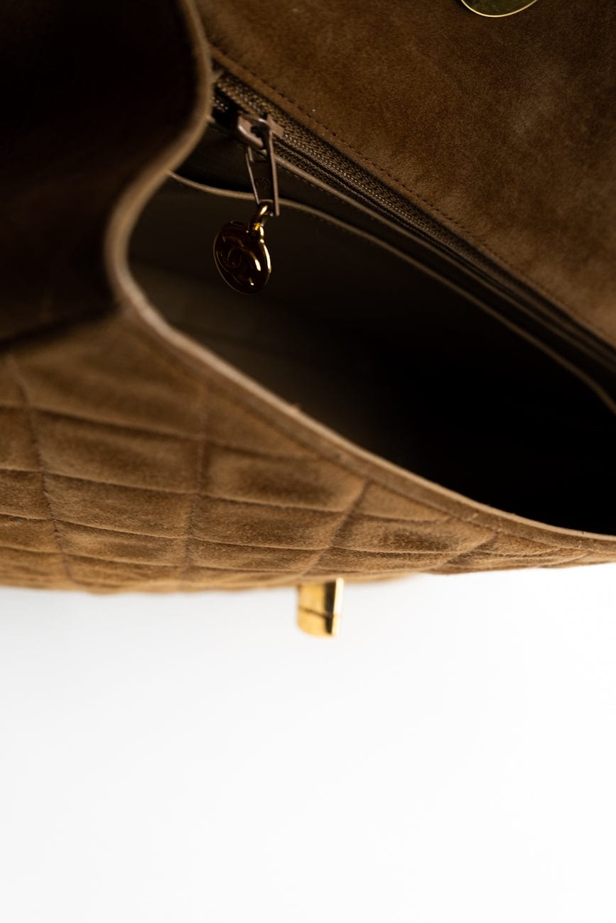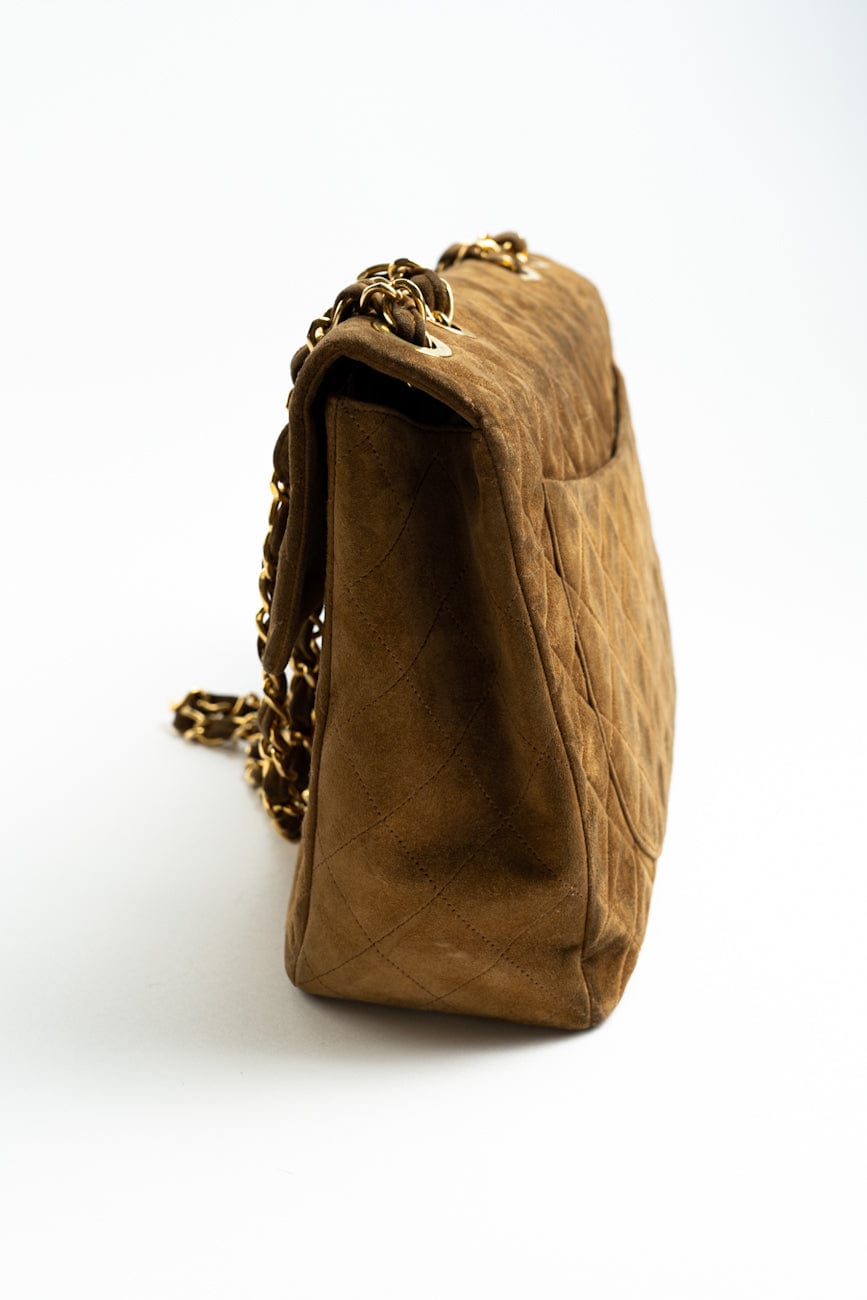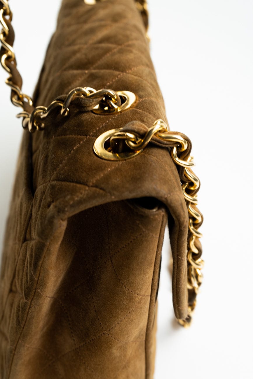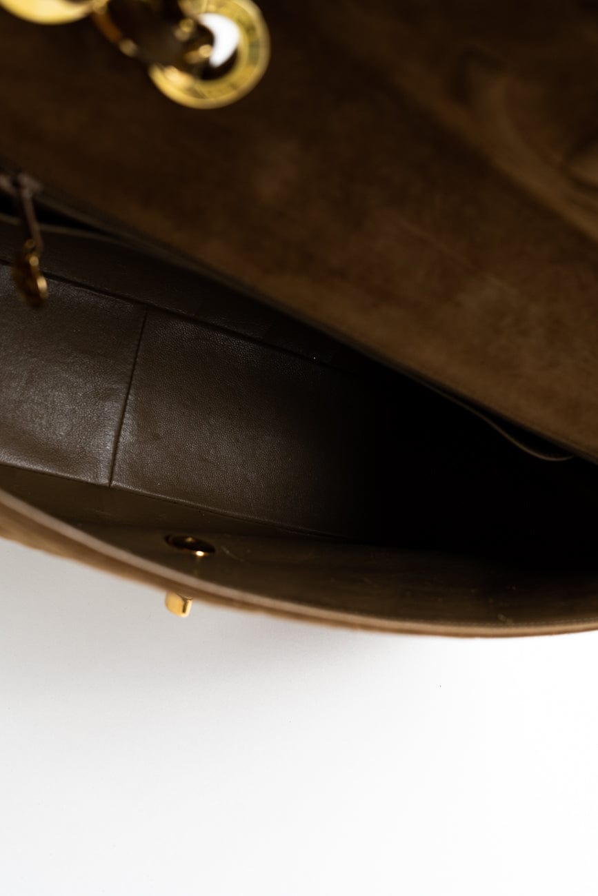 Vintage Tan/Brown Suede Quilted Jumbo XL Single Flap 24k GHW
