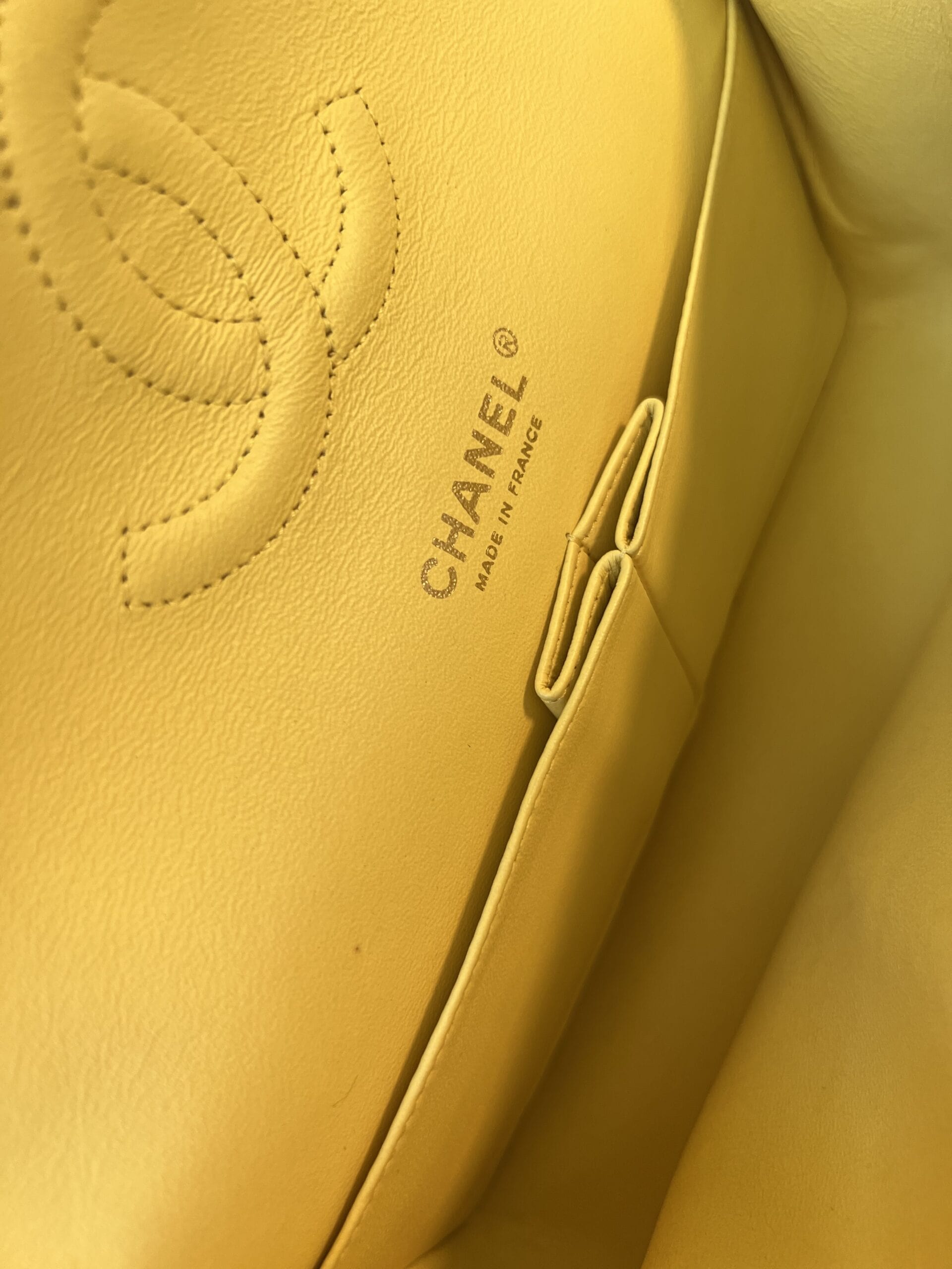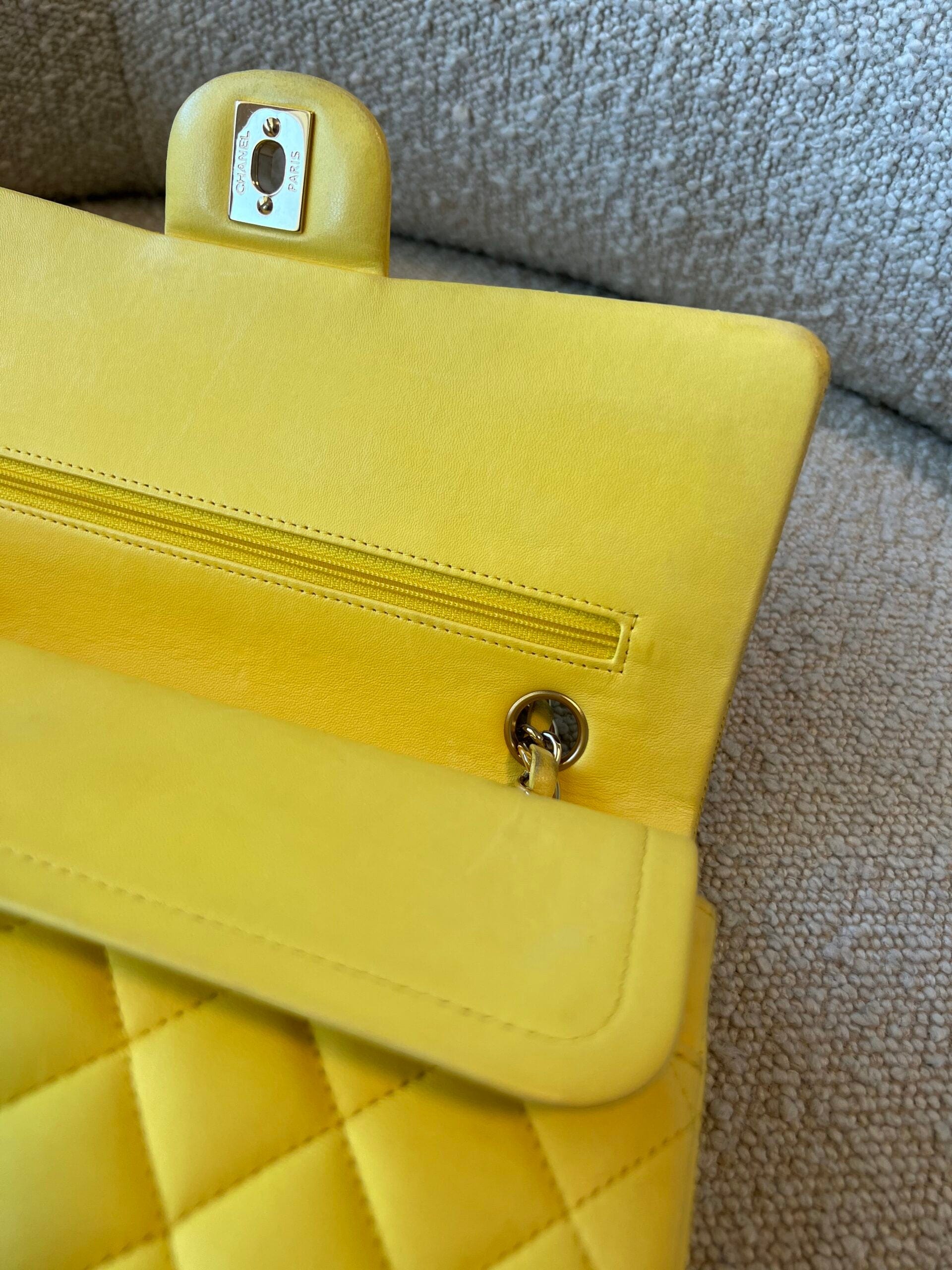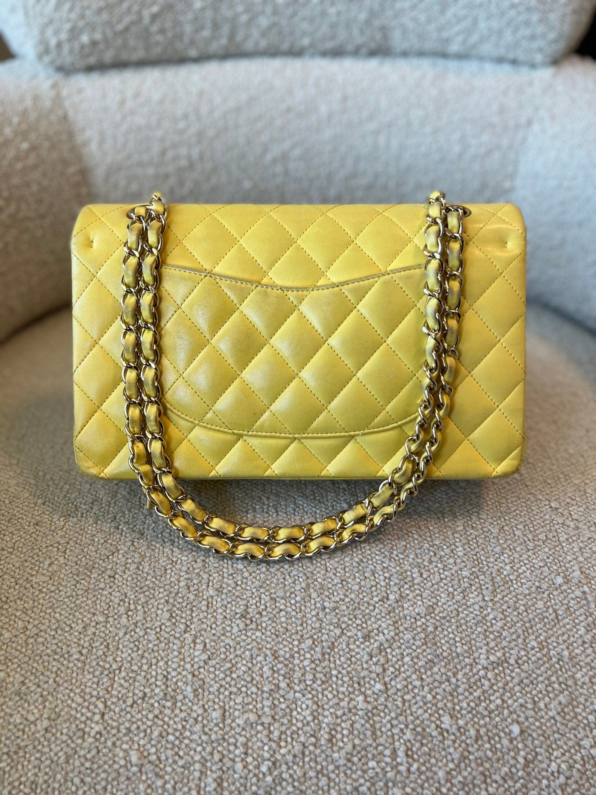 Vintage Yellow Lambskin Quilted Double Classic Flap Medium Light Gold Hardware