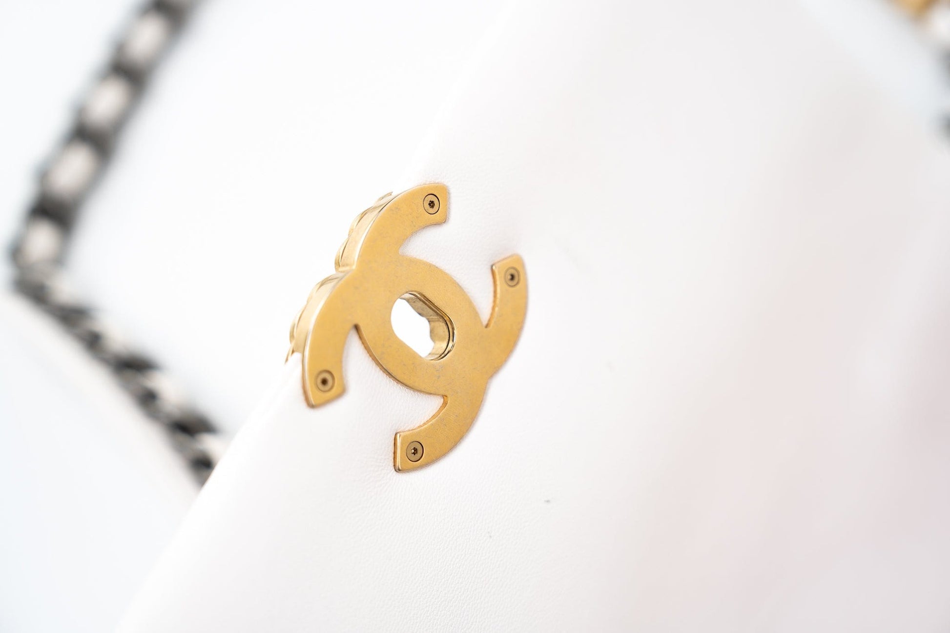 21p White 19 Lambskin Quilted 19 Flap Small