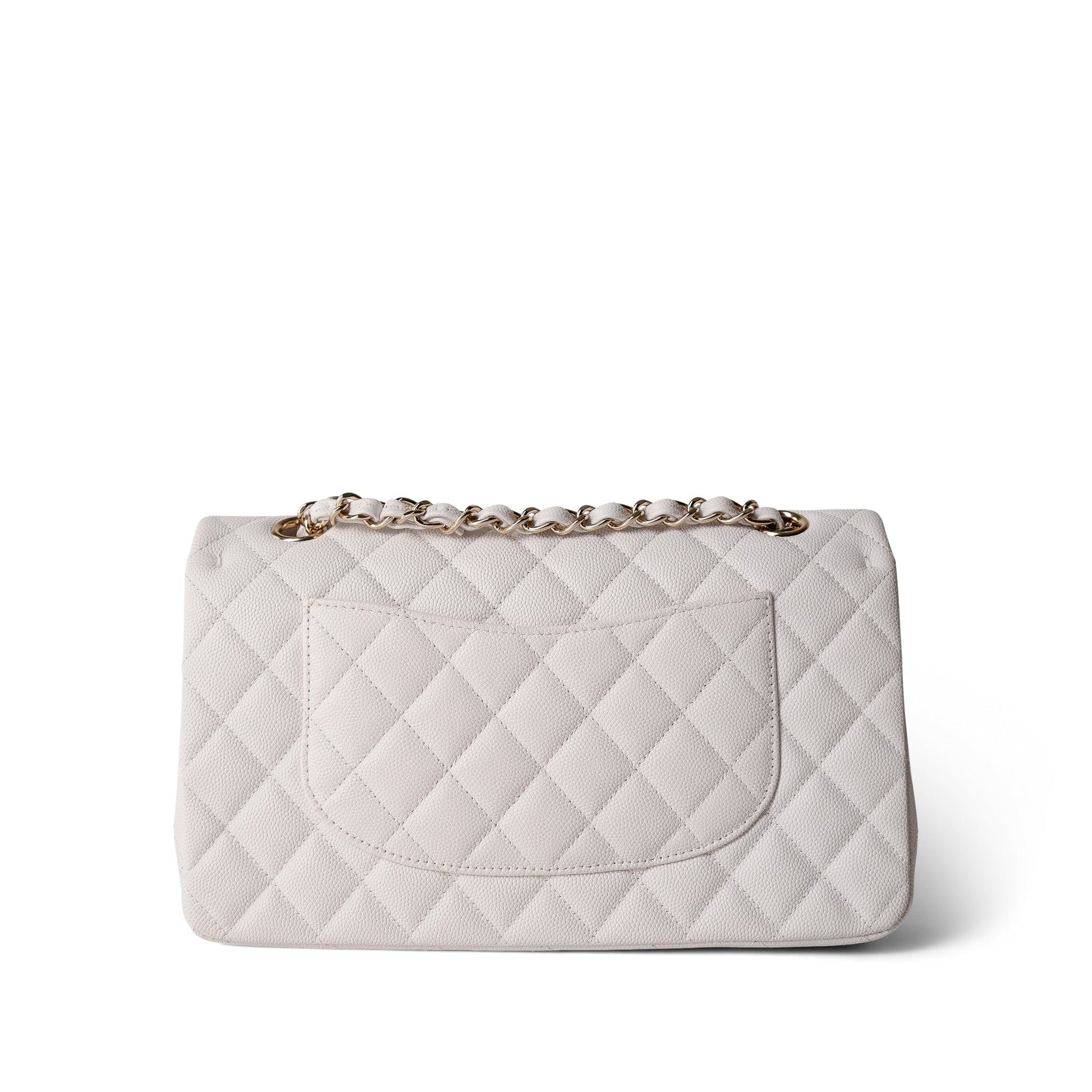 White Caviar Quilted Classic Flap Medium Light Gold Hardware