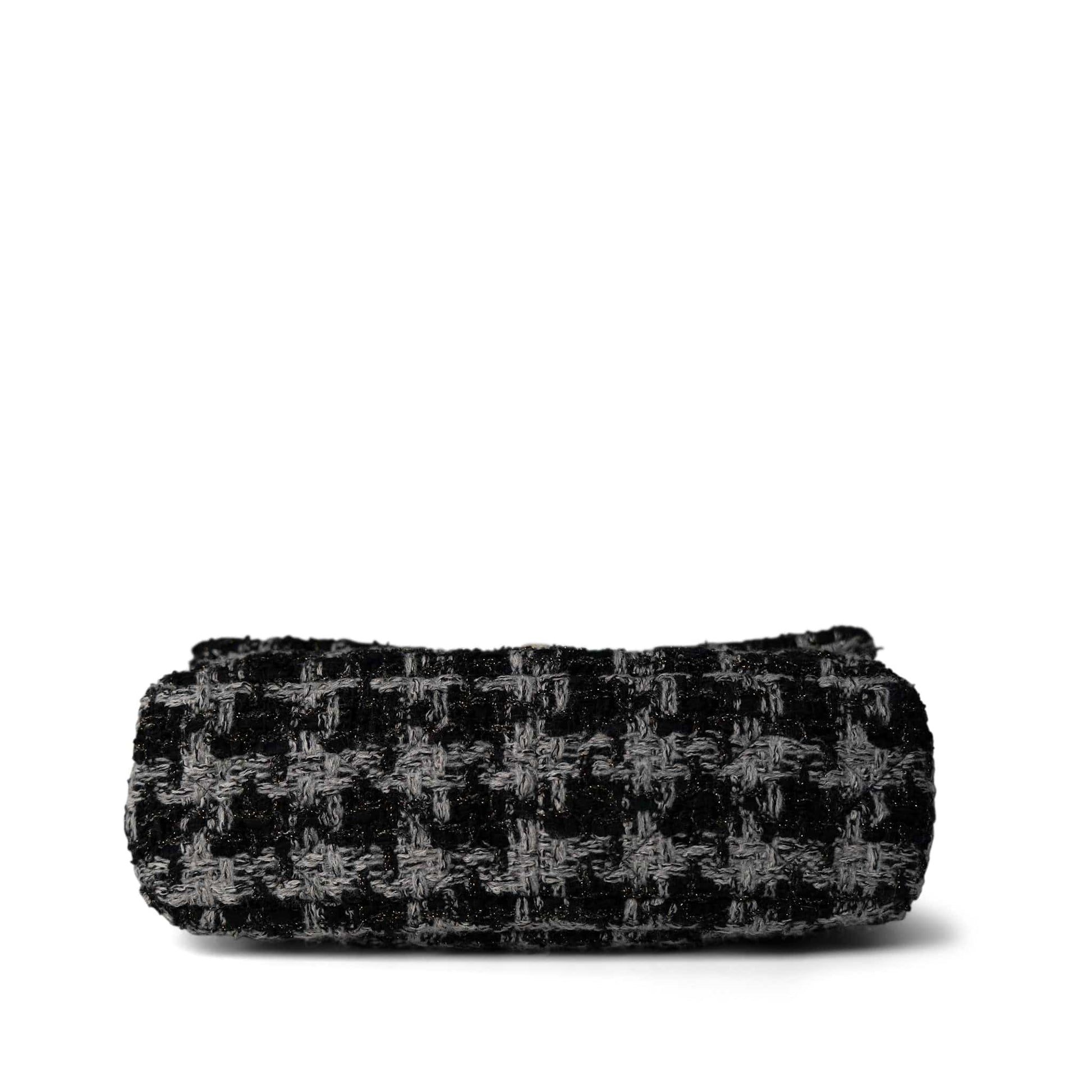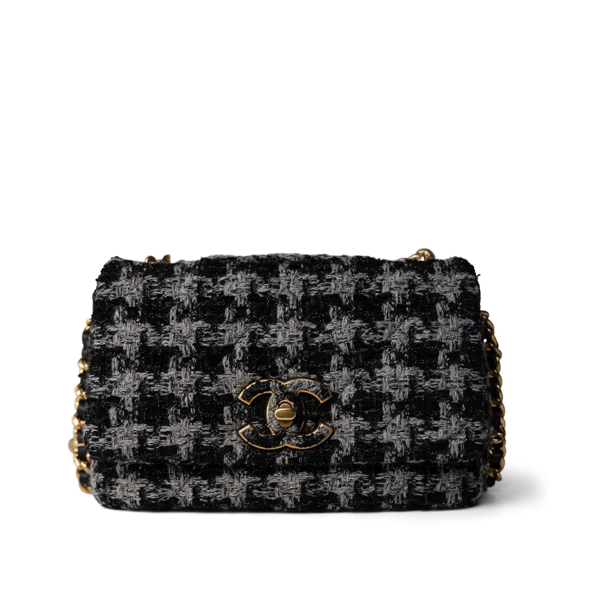 Wool Tweed Quilted Elegant Chain Flap Black Grey