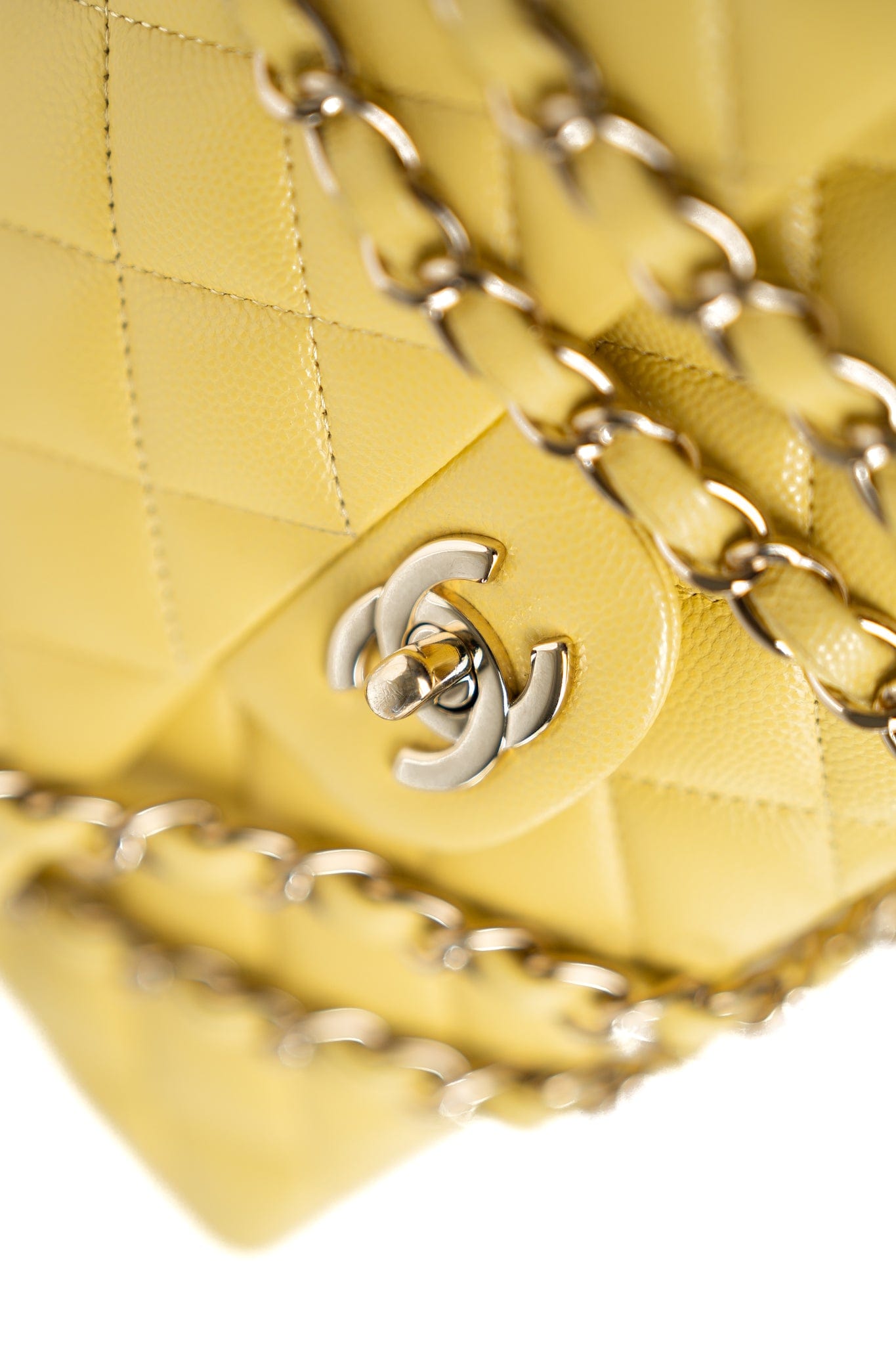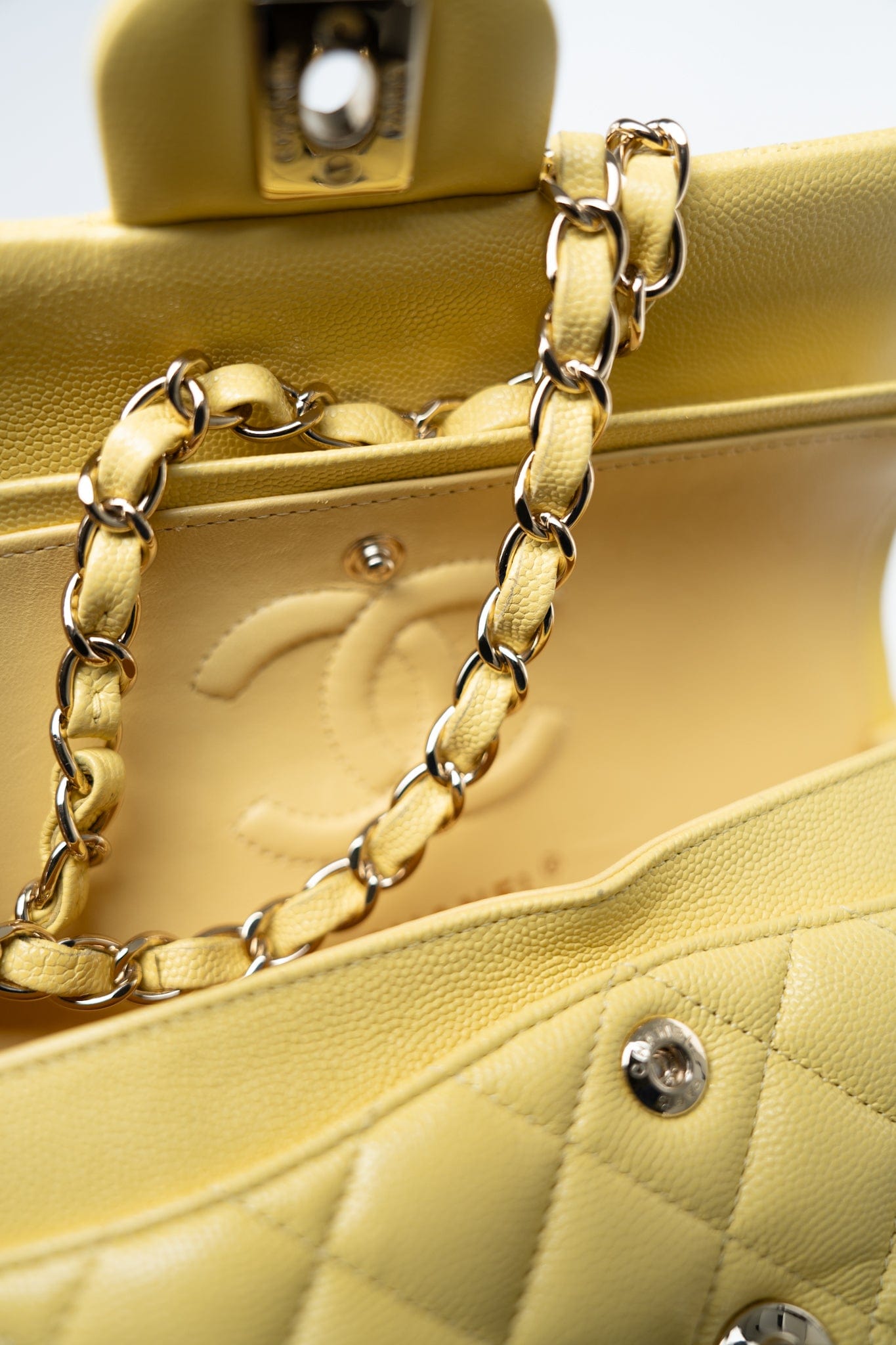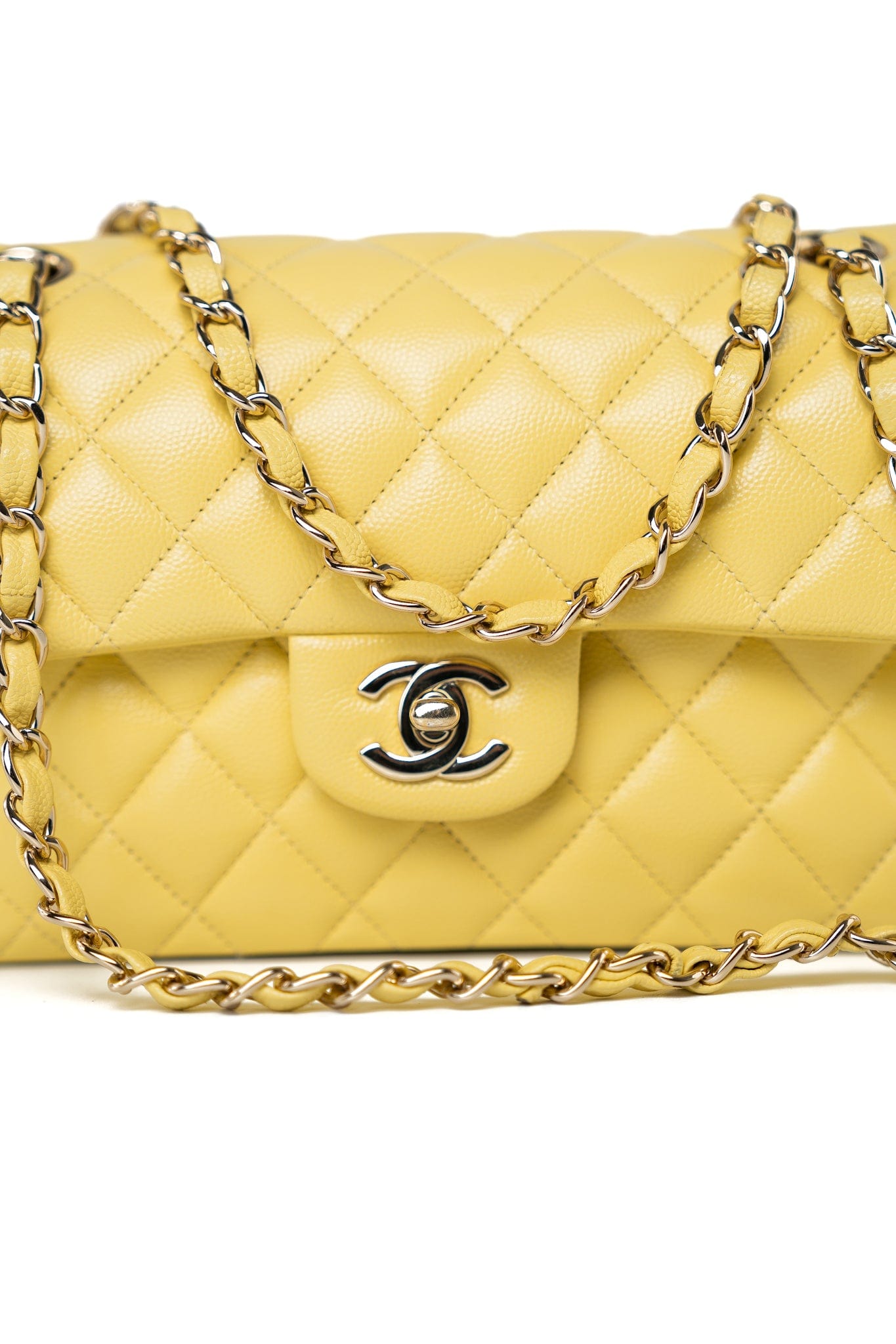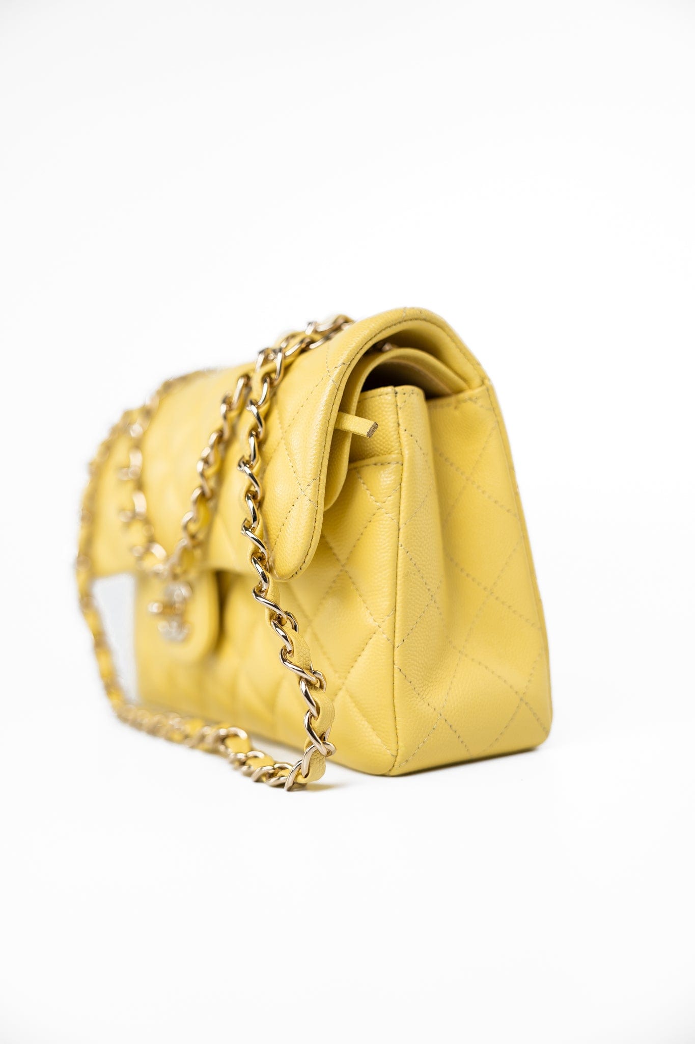 21P Yellow Caviar Quilted Classic Flap Small Light Gold Hardware